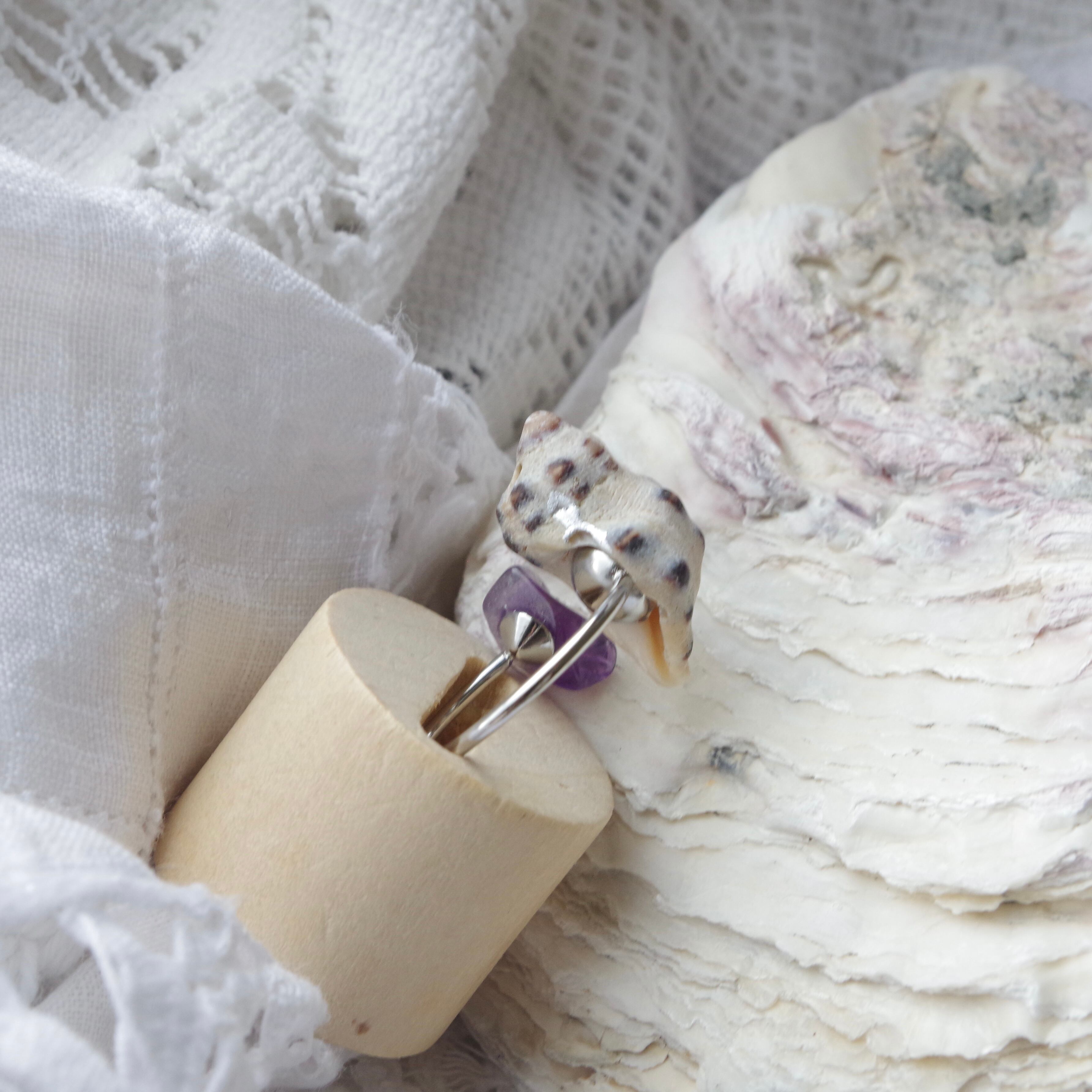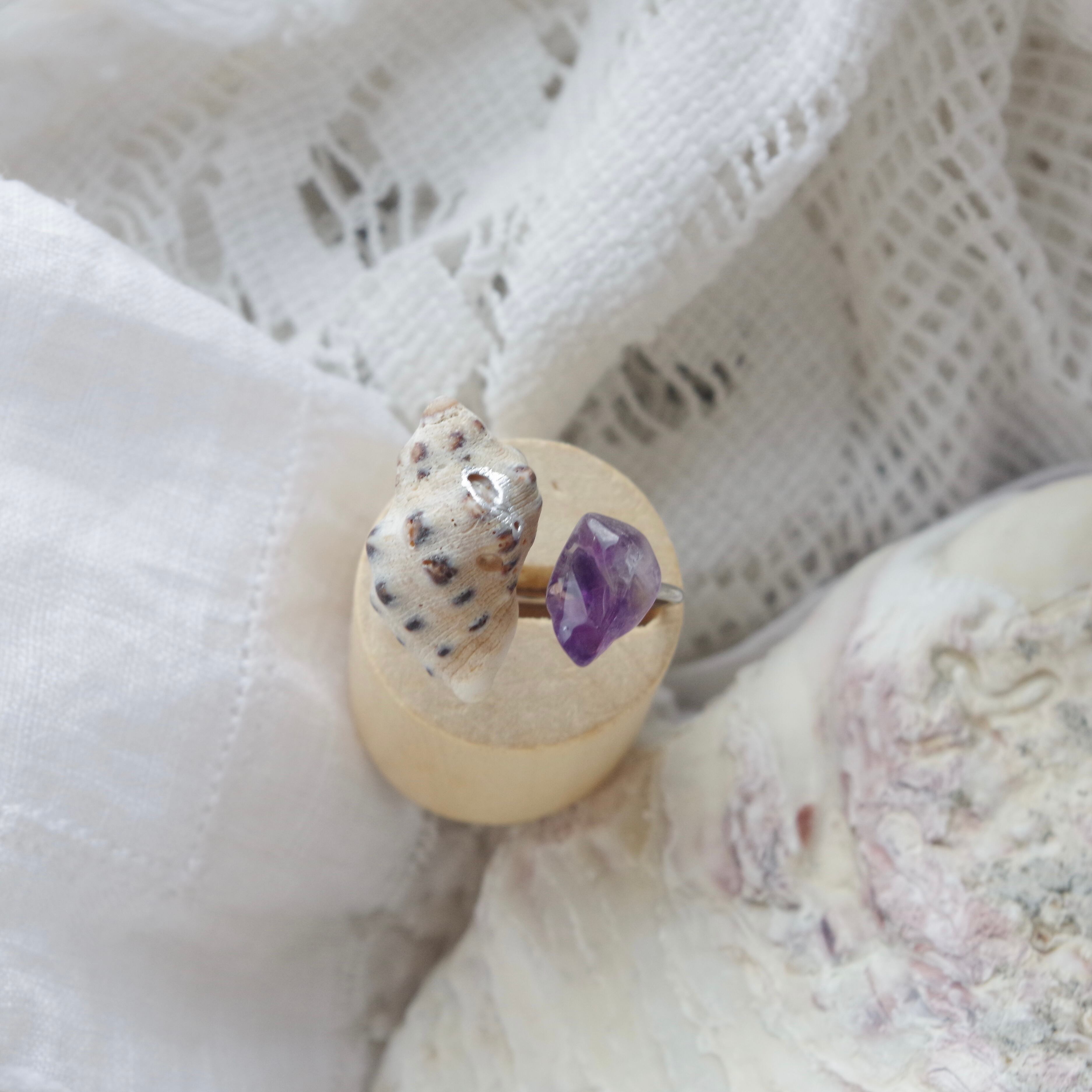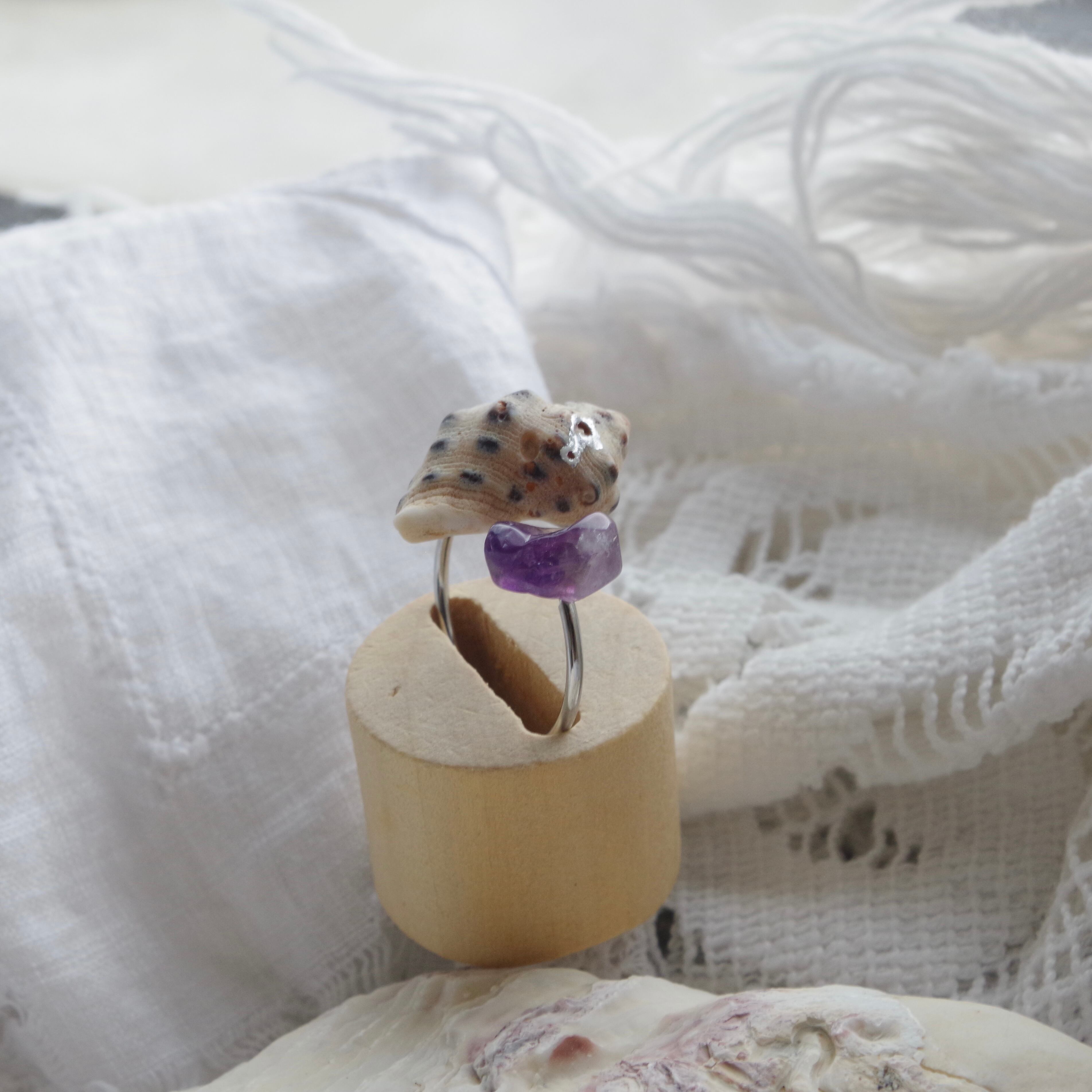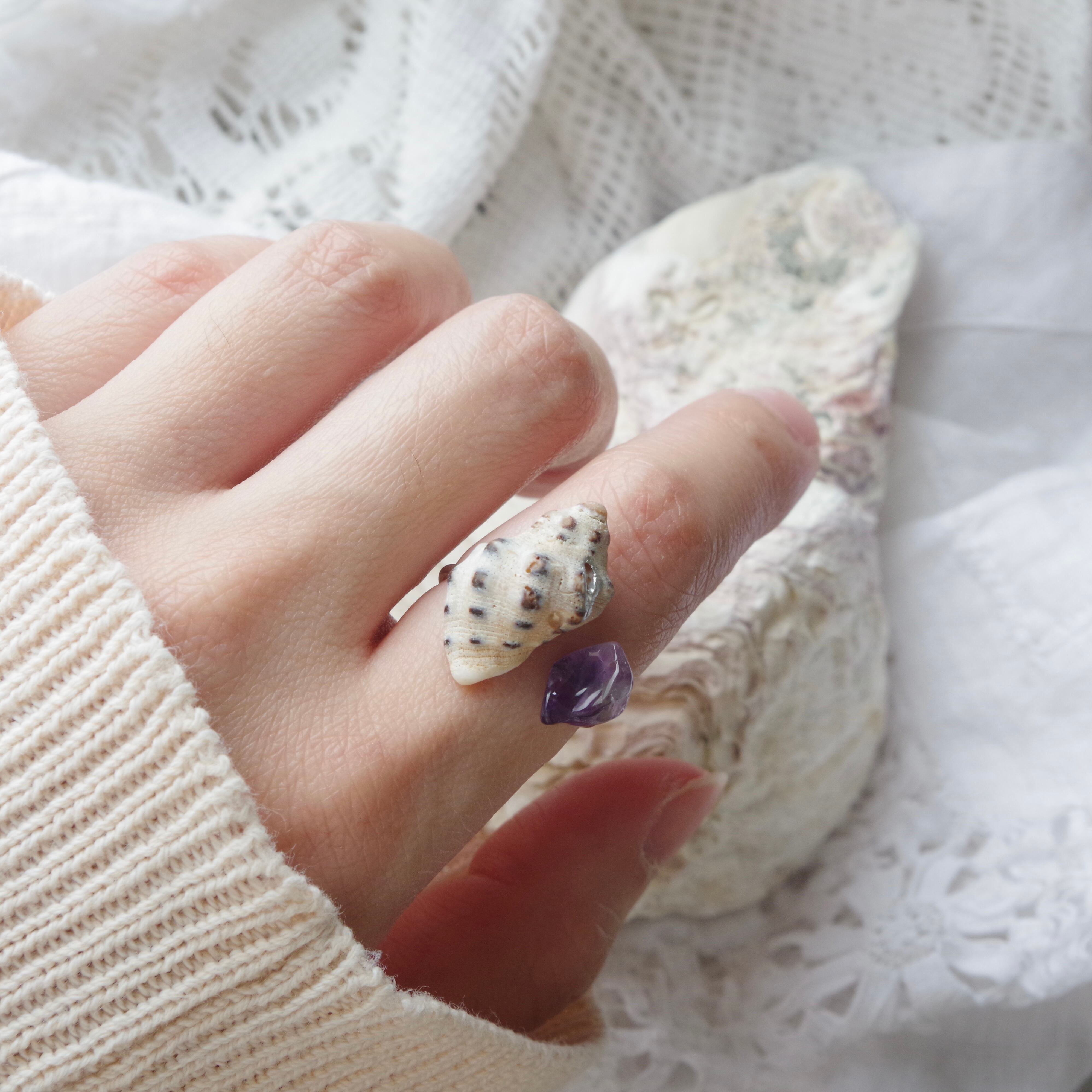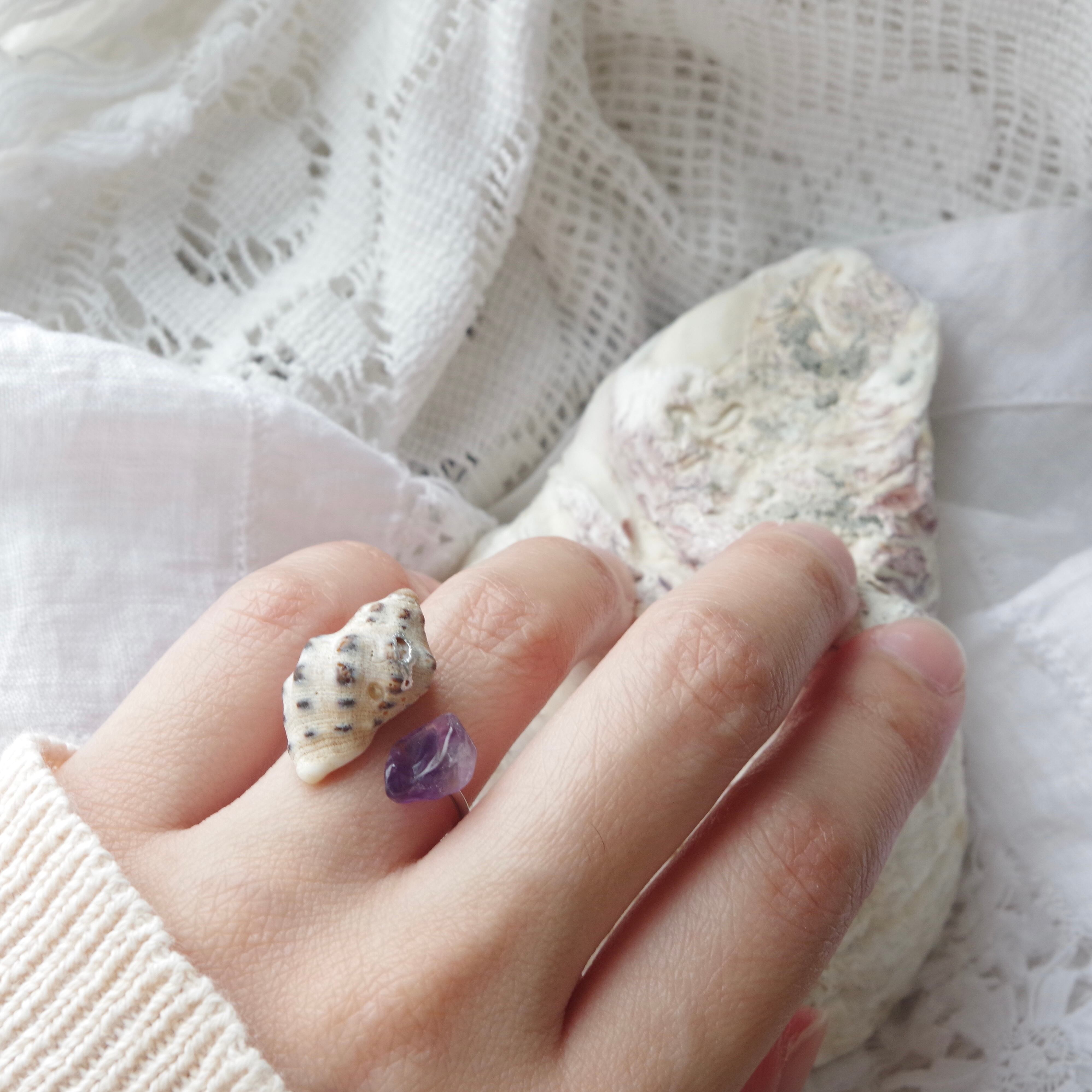 Seaside Ring│貝殻と天然石のフォークリング〈アメシスト〉