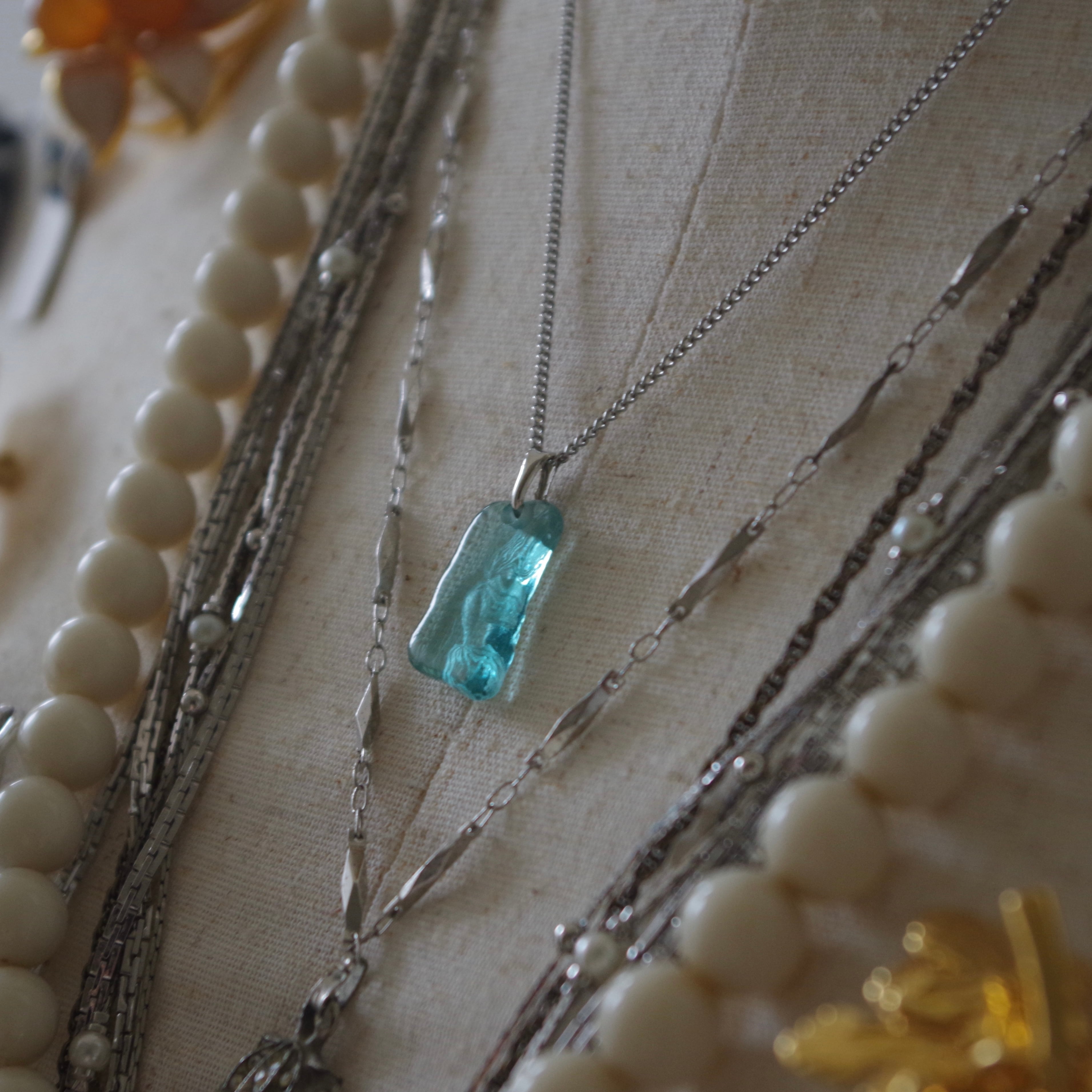 素材:ガラス、真鍮(バチカン)、サージカルステンレス(ネックレスチェーン)