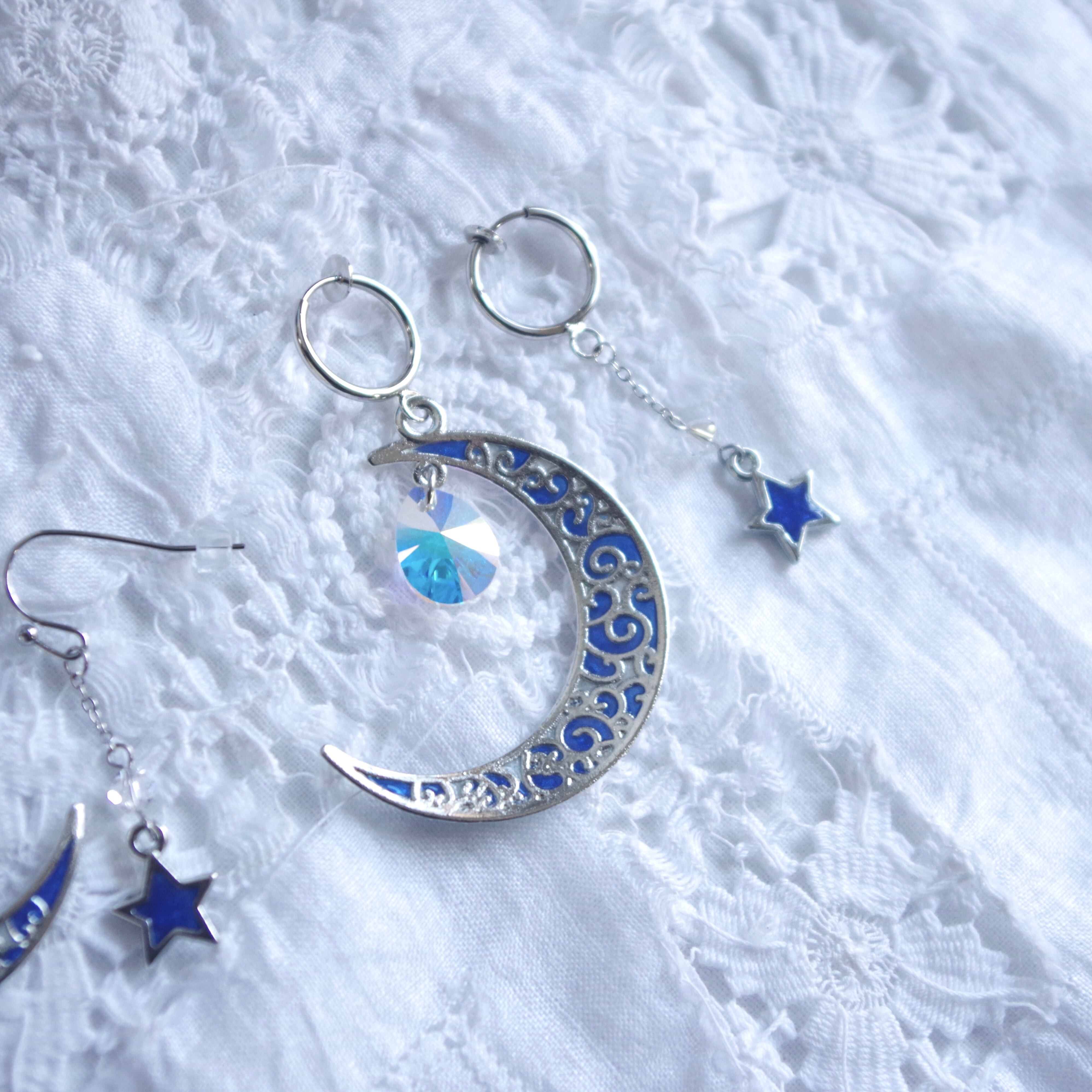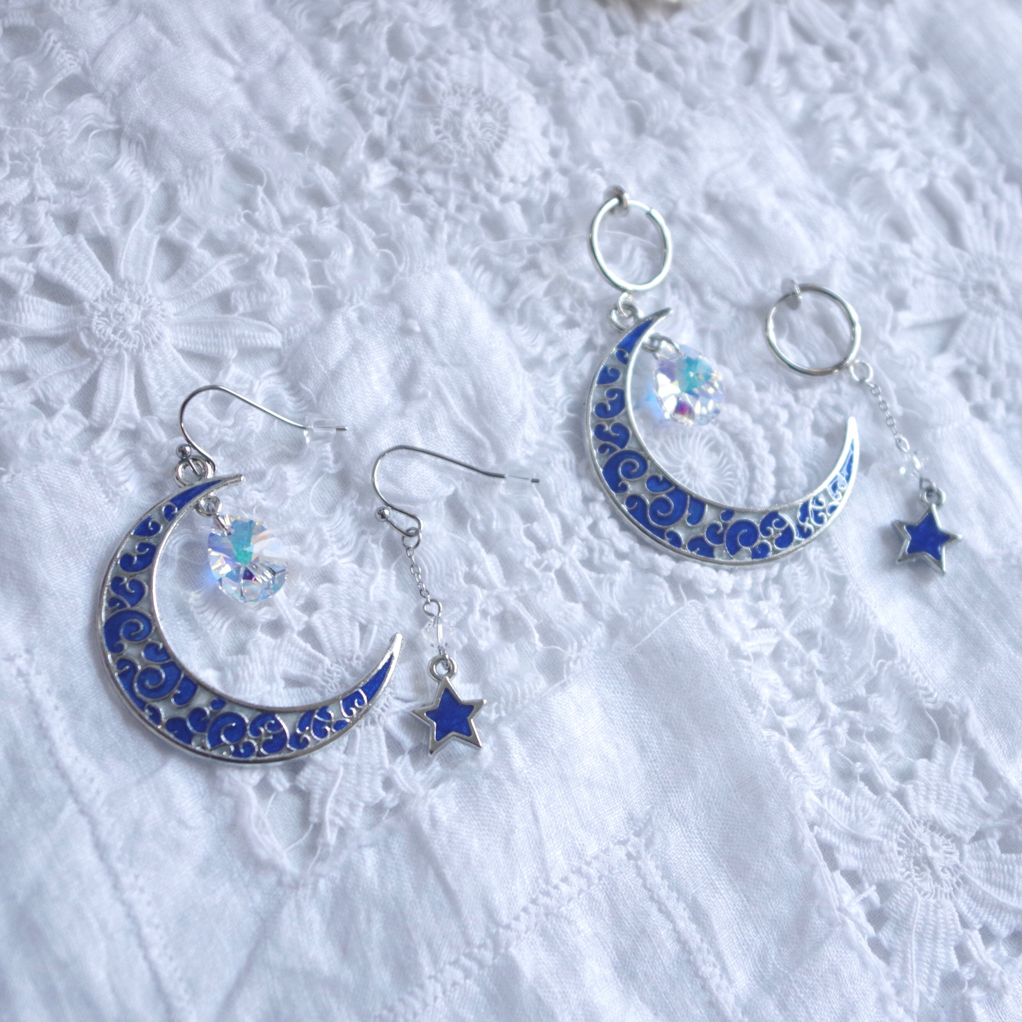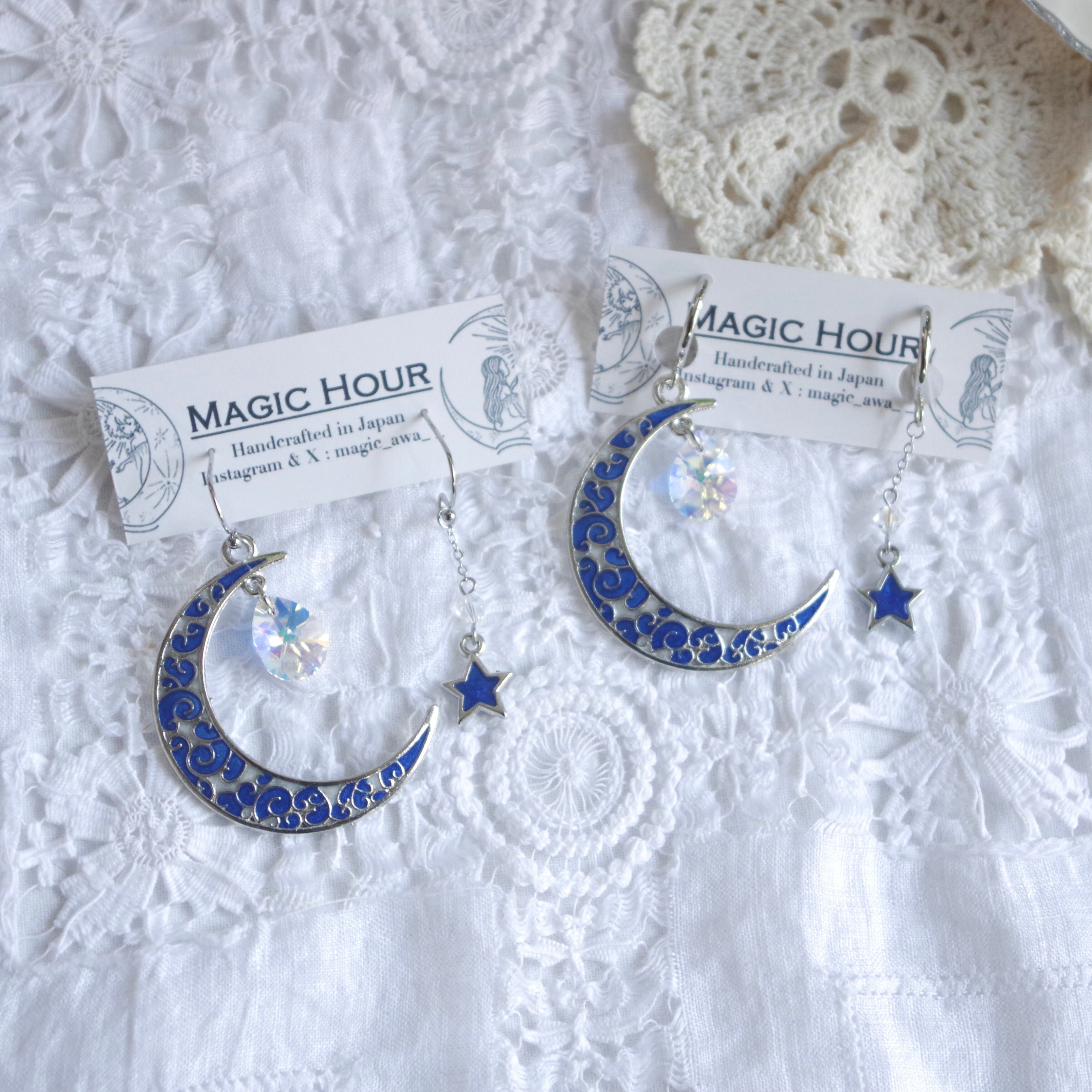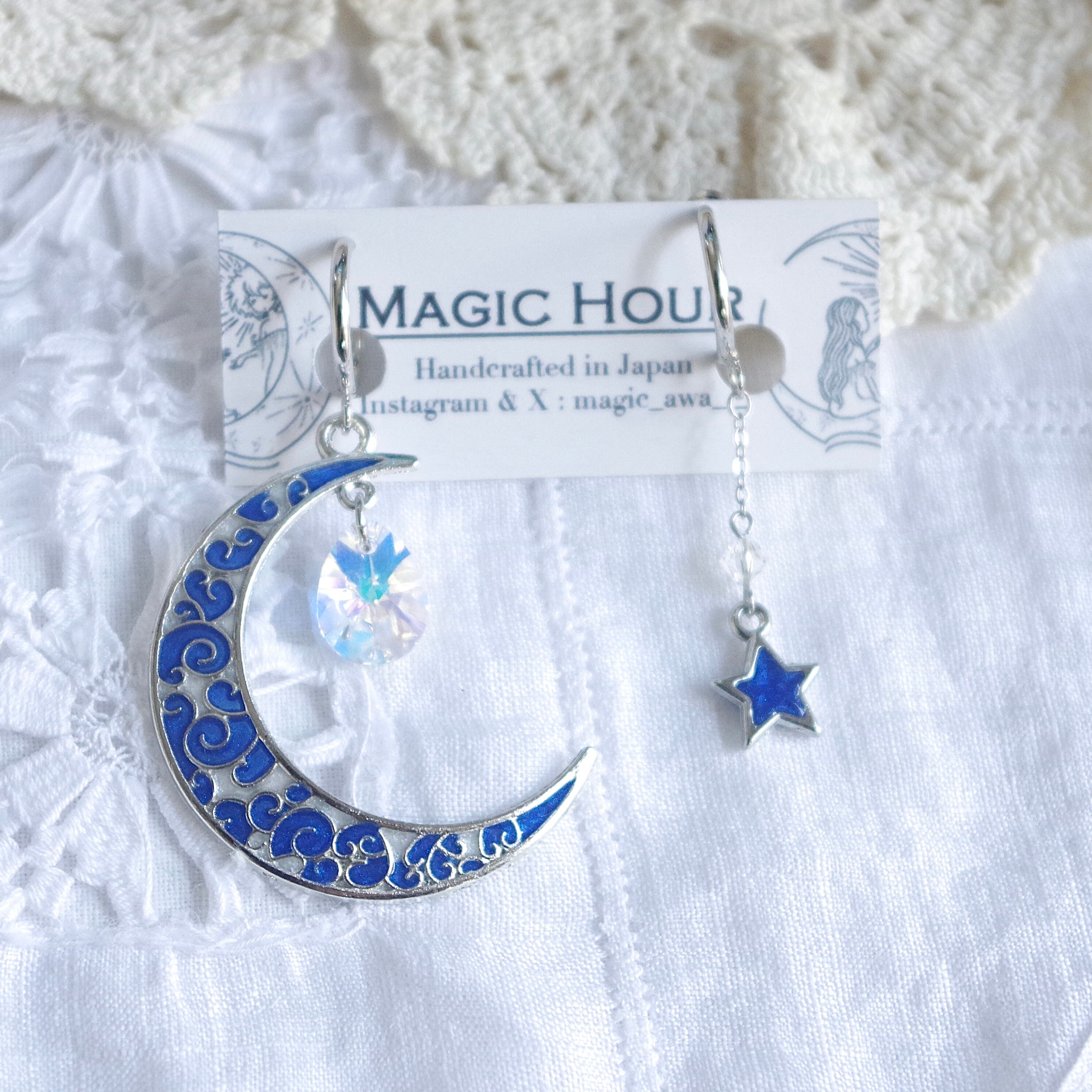Lunar Ark │ 三日月と星のアシンメトリーイヤリング/ピアス〈East China Sea〉
