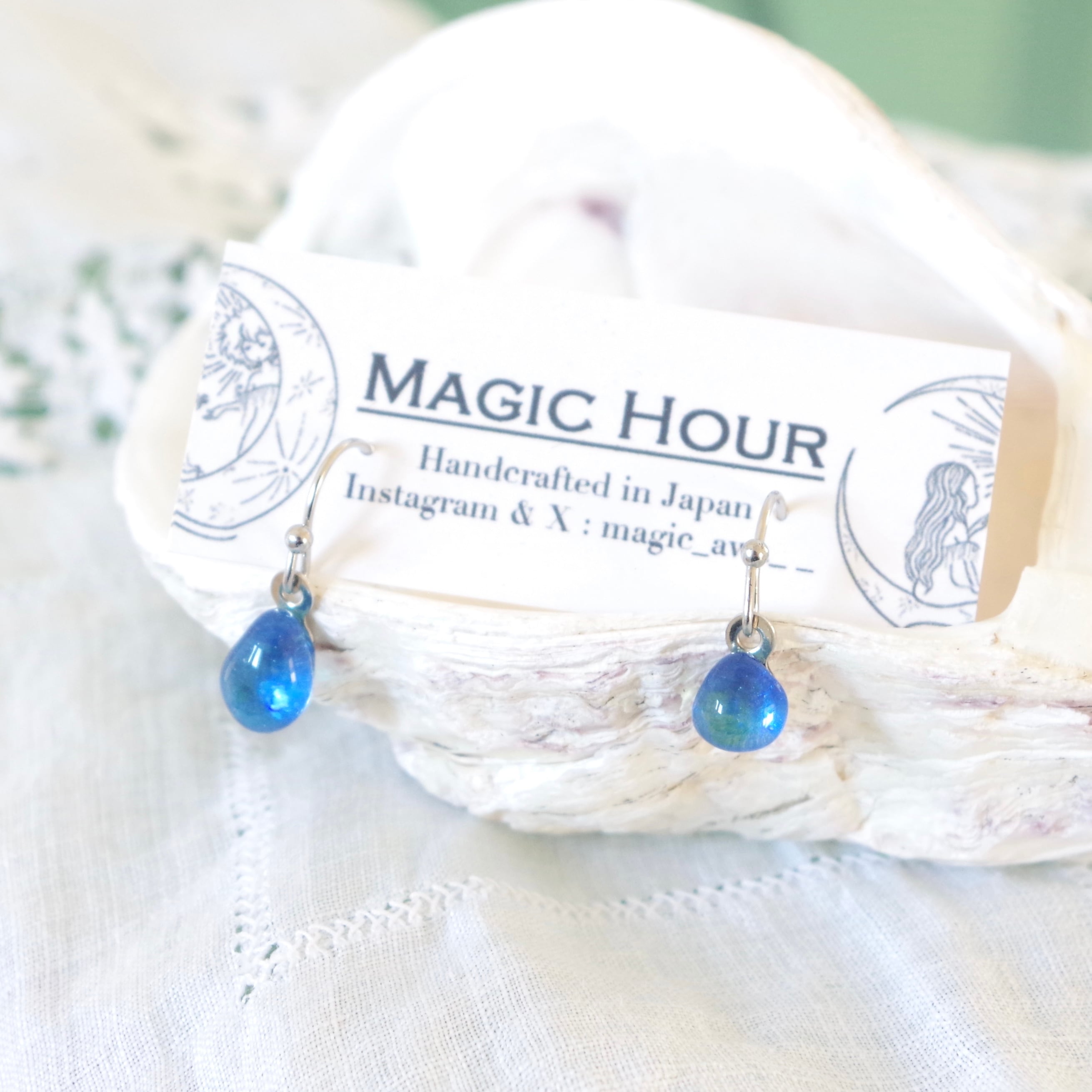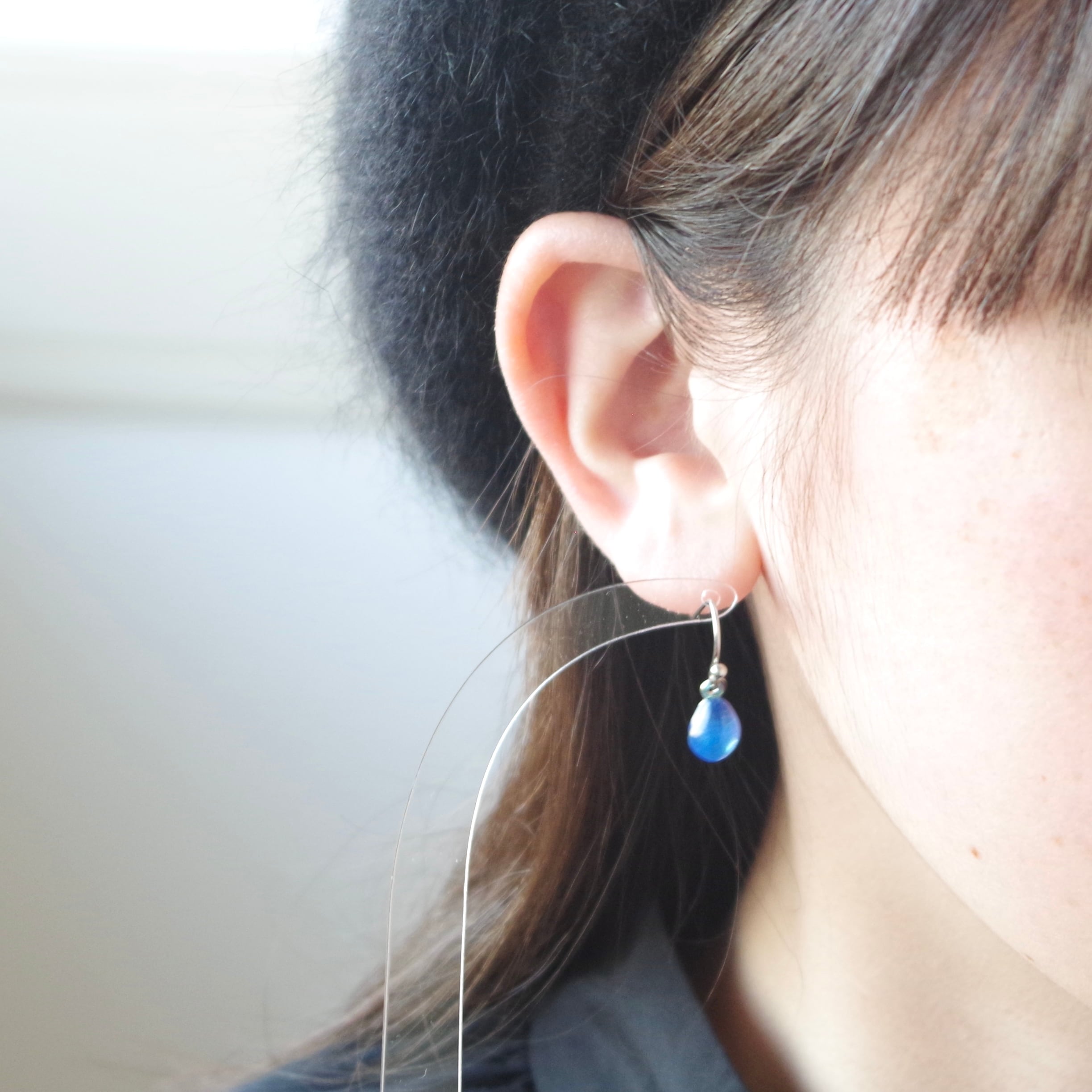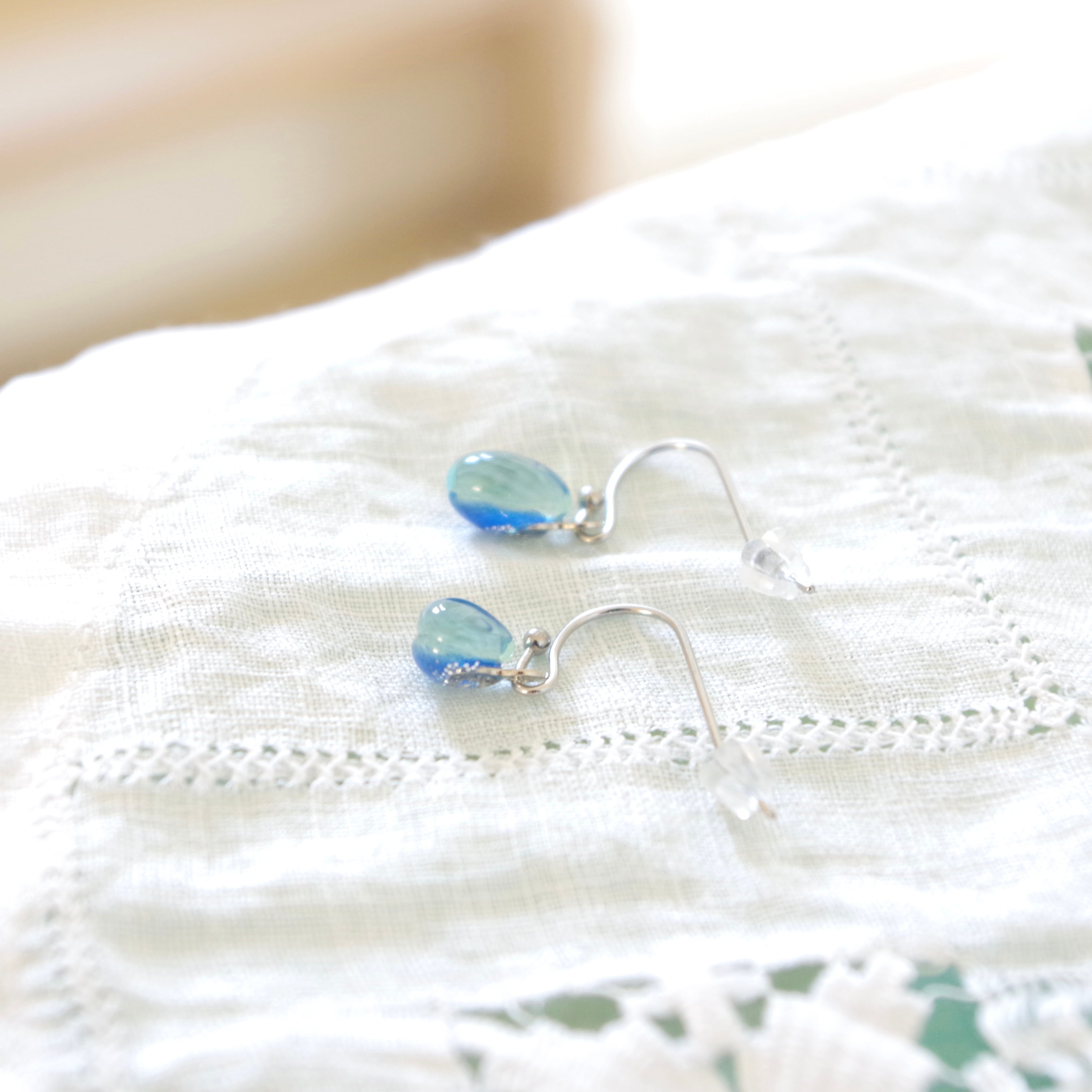 Mermaid Teardrops │ 揺れる小さなシーグラスのイヤリング/ピアス〈シルバー〉
