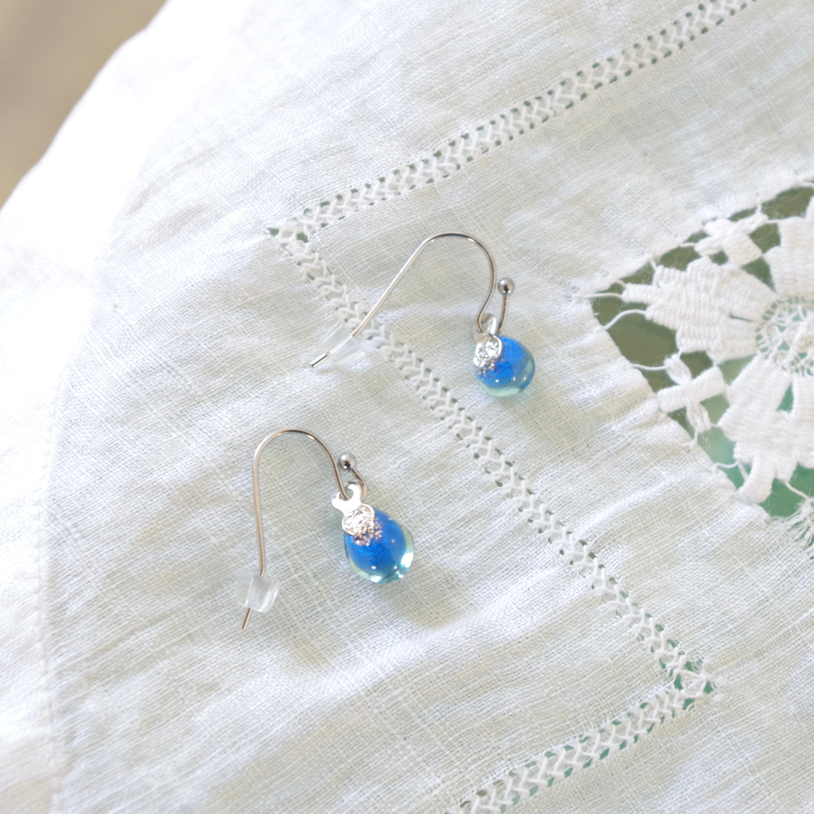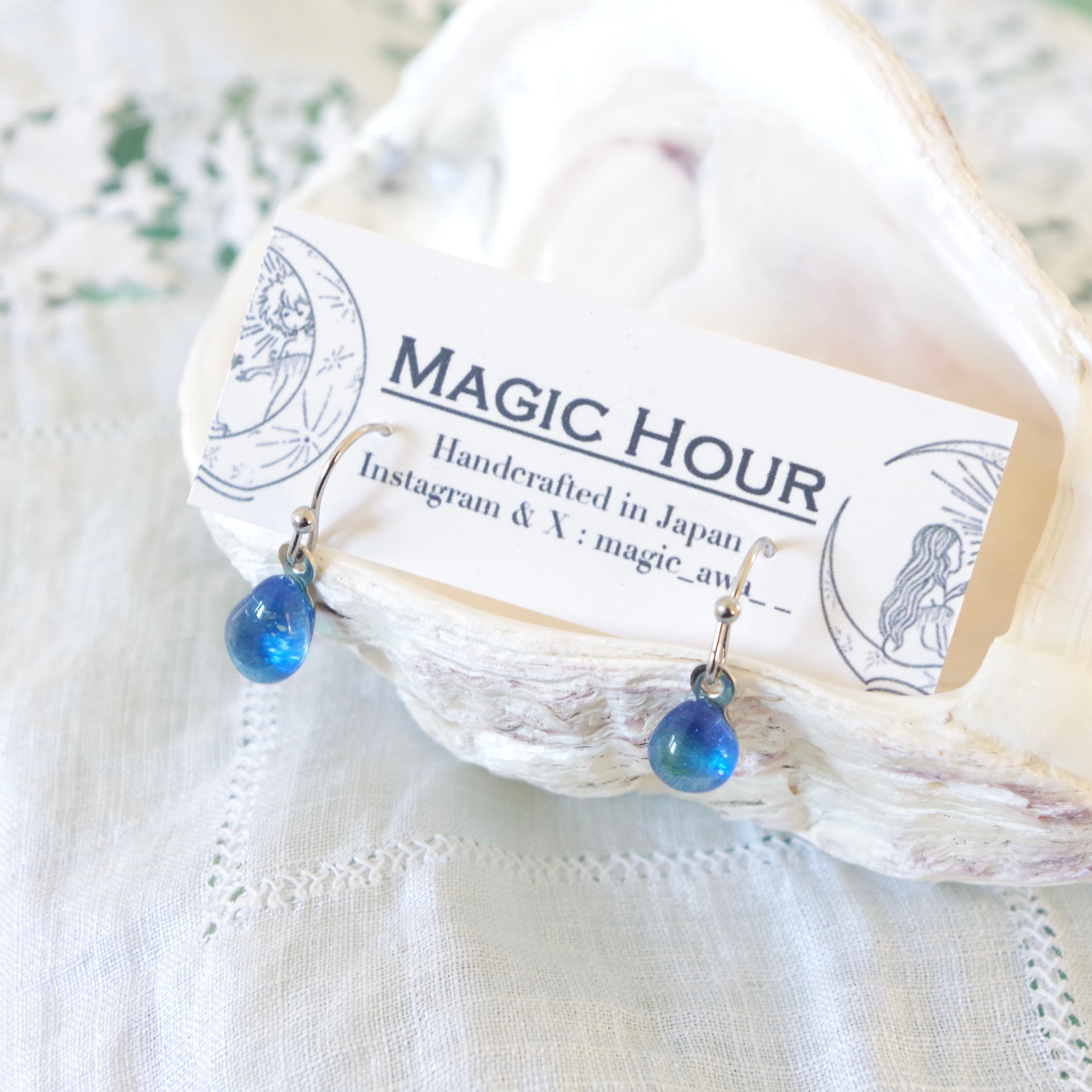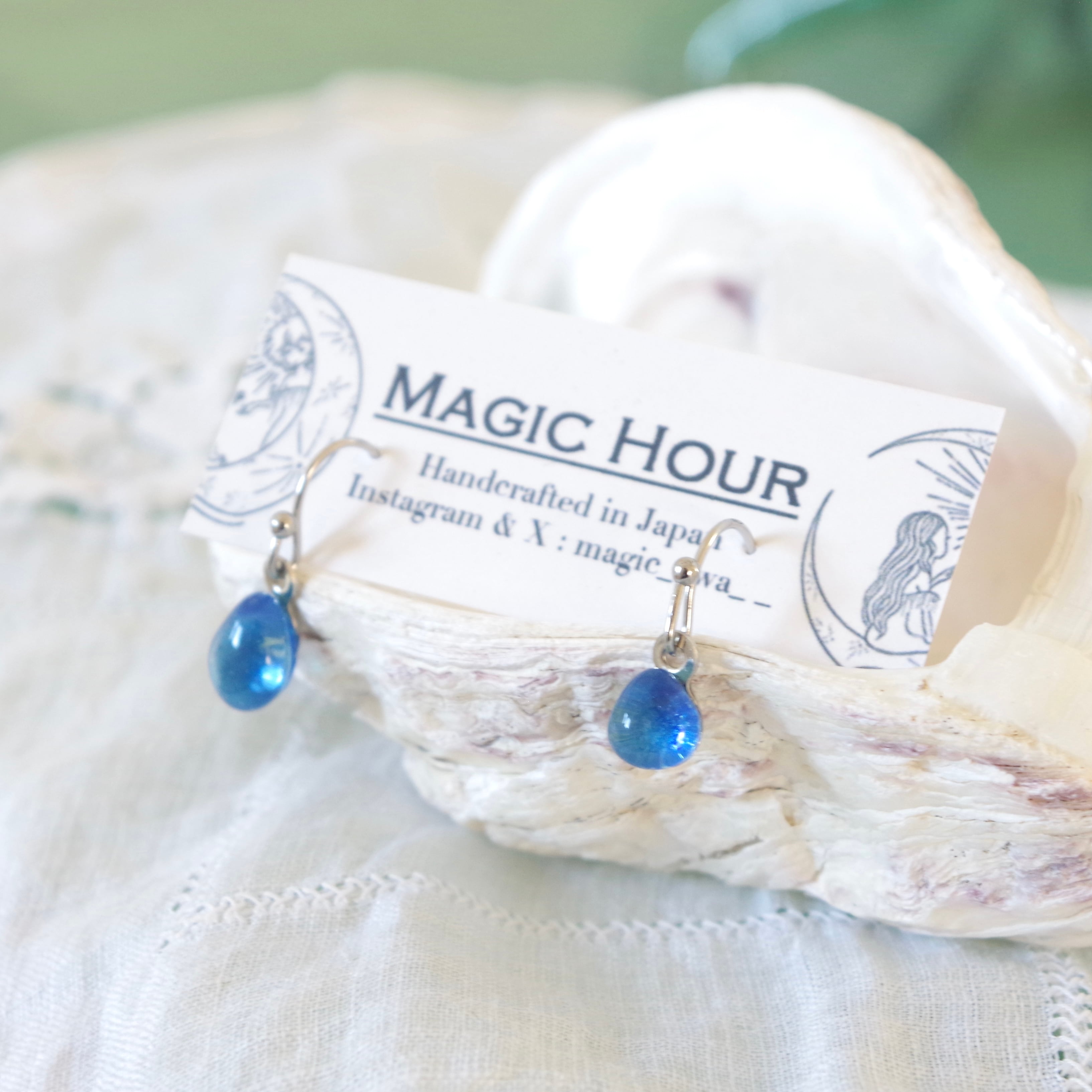 Mermaid Teardrops │ 揺れる小さなシーグラスのイヤリング/ピアス〈シルバー〉