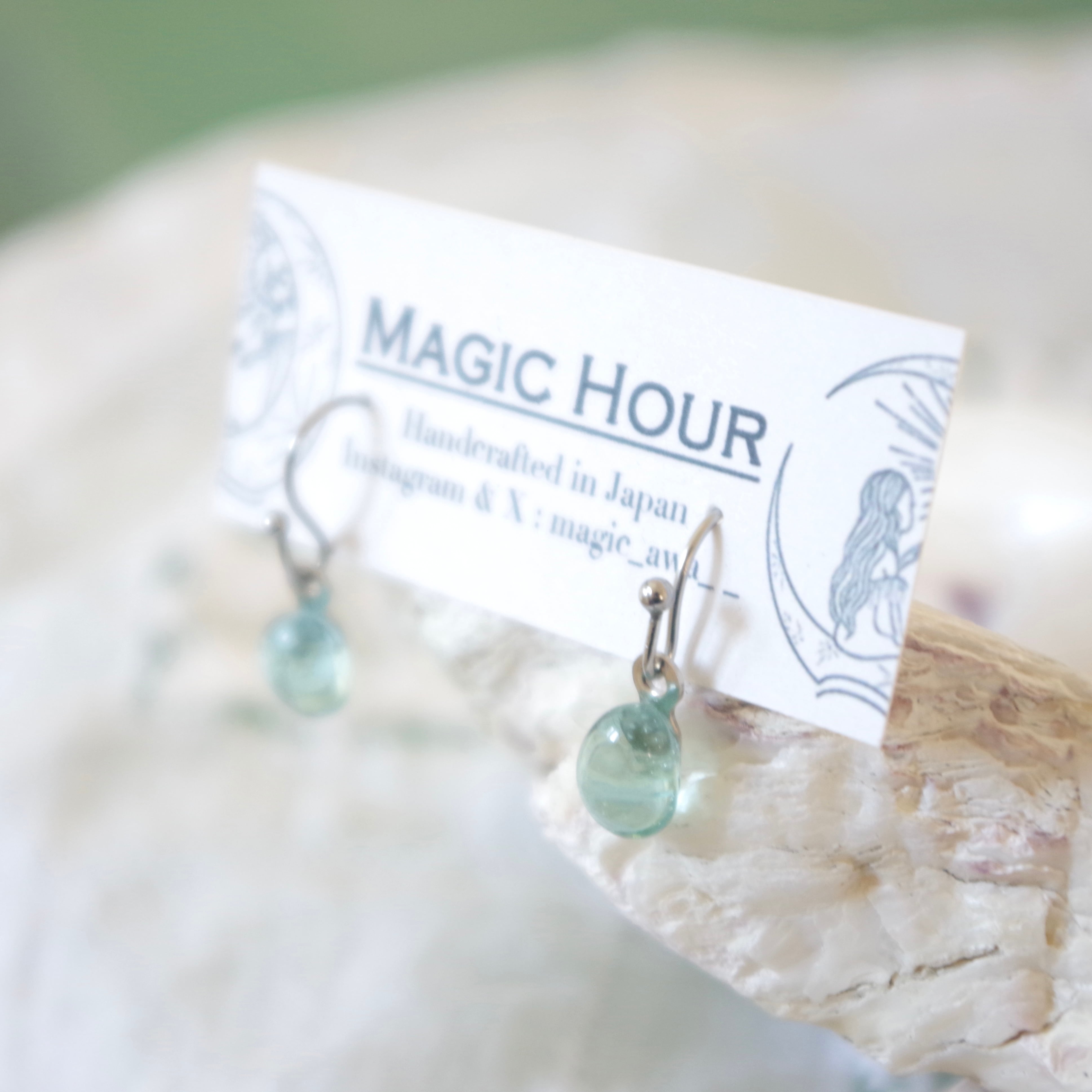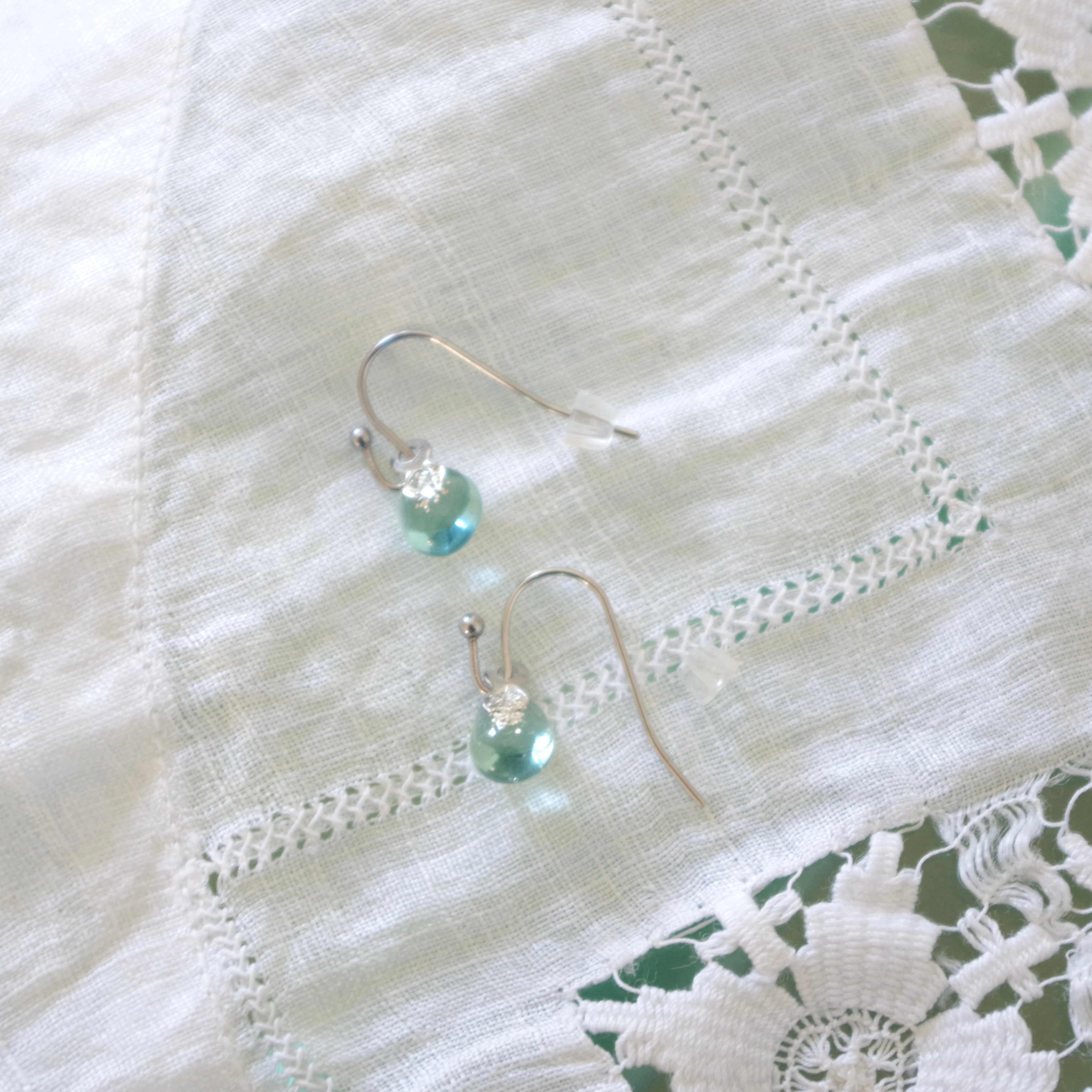 Raindrops │ 揺れる小さなシーグラスのイヤリング/ピアス〈シルバー〉