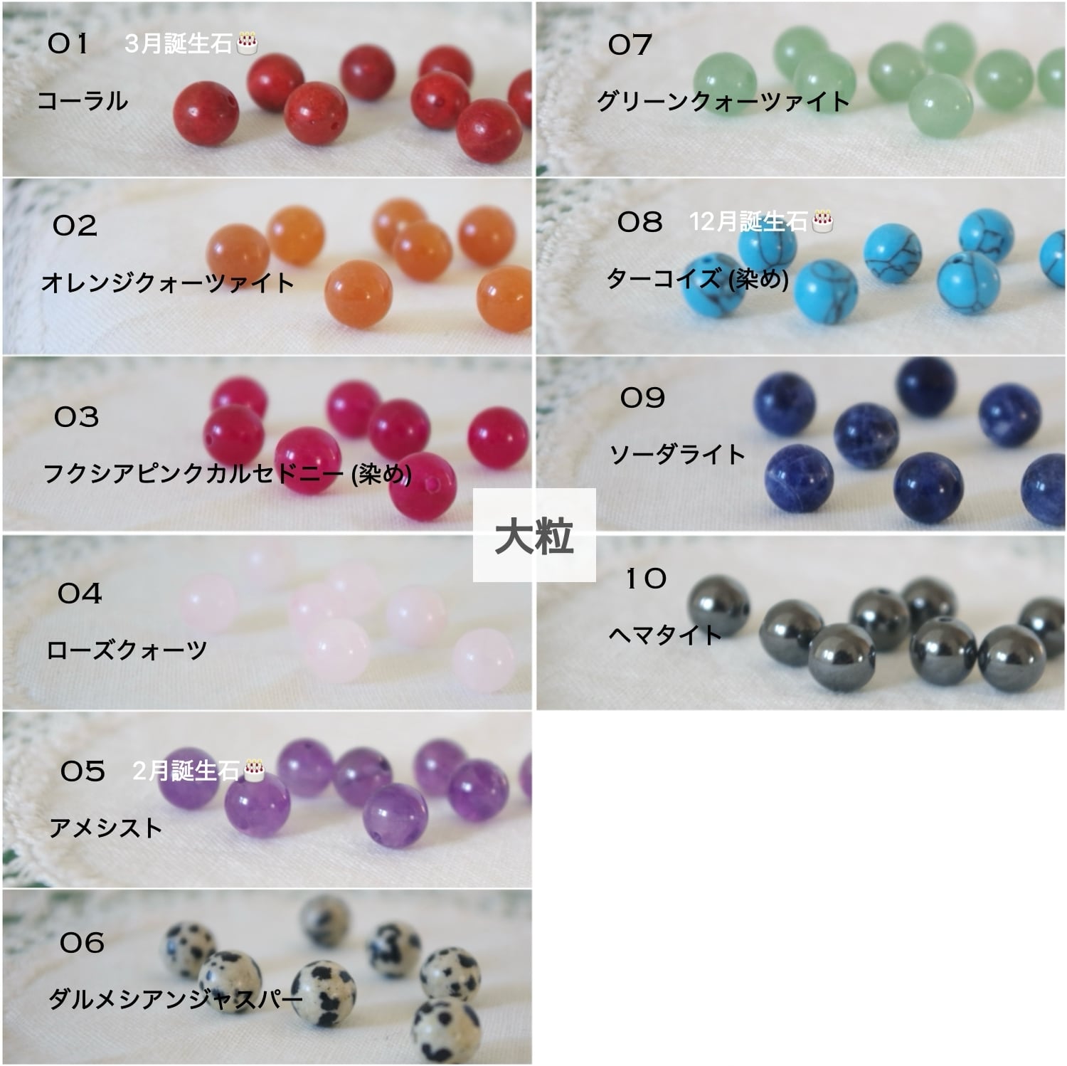 上記以外の天然石でSatelliteを作成してほしい場合は「Online Shopのお問い合わせフォーム」か「InstagramのDM」にてお気軽にご連絡ください。通常PlanetやSatelliteに使用している天然石を使った物なら、オーダー料金無しの1980円でご用意いたします。
