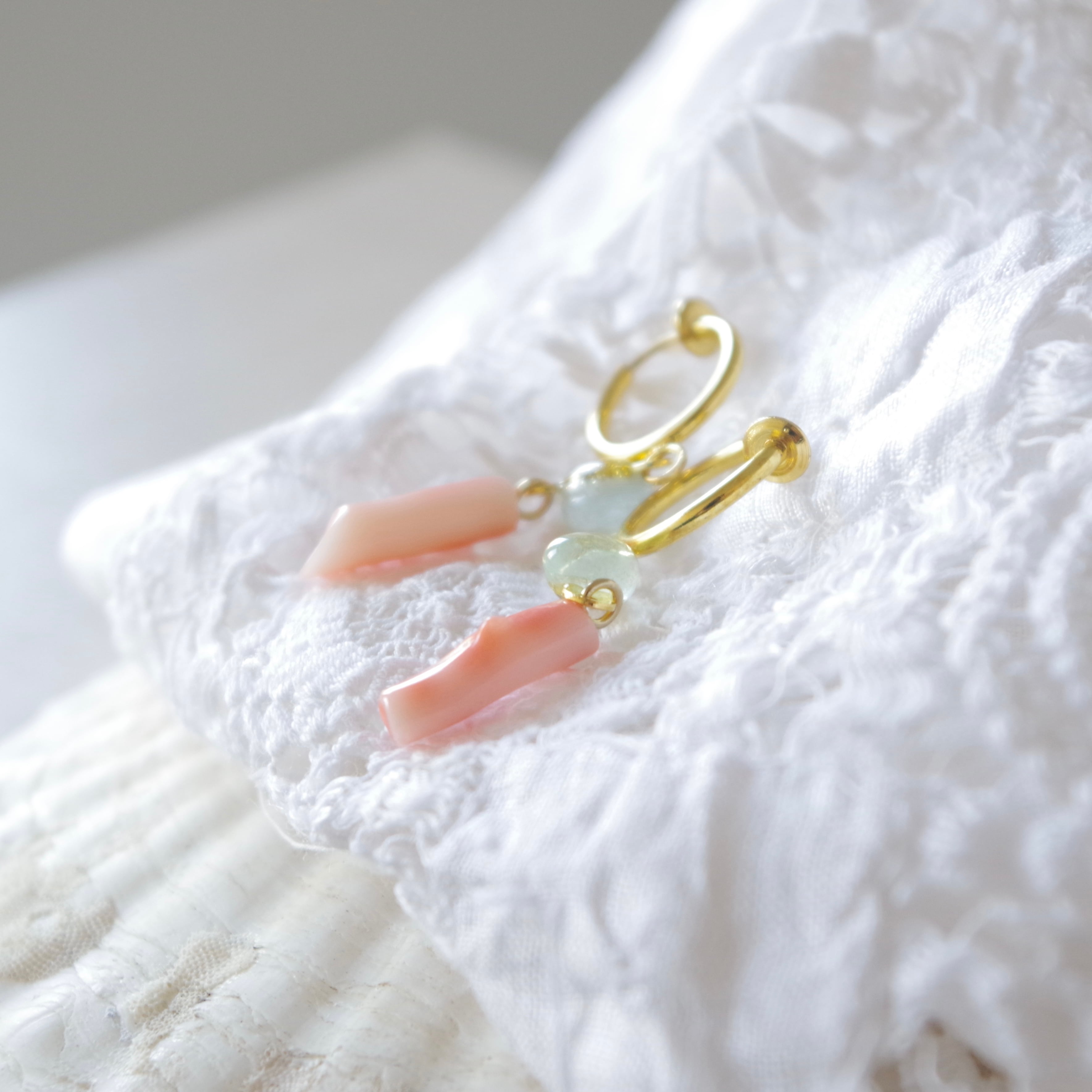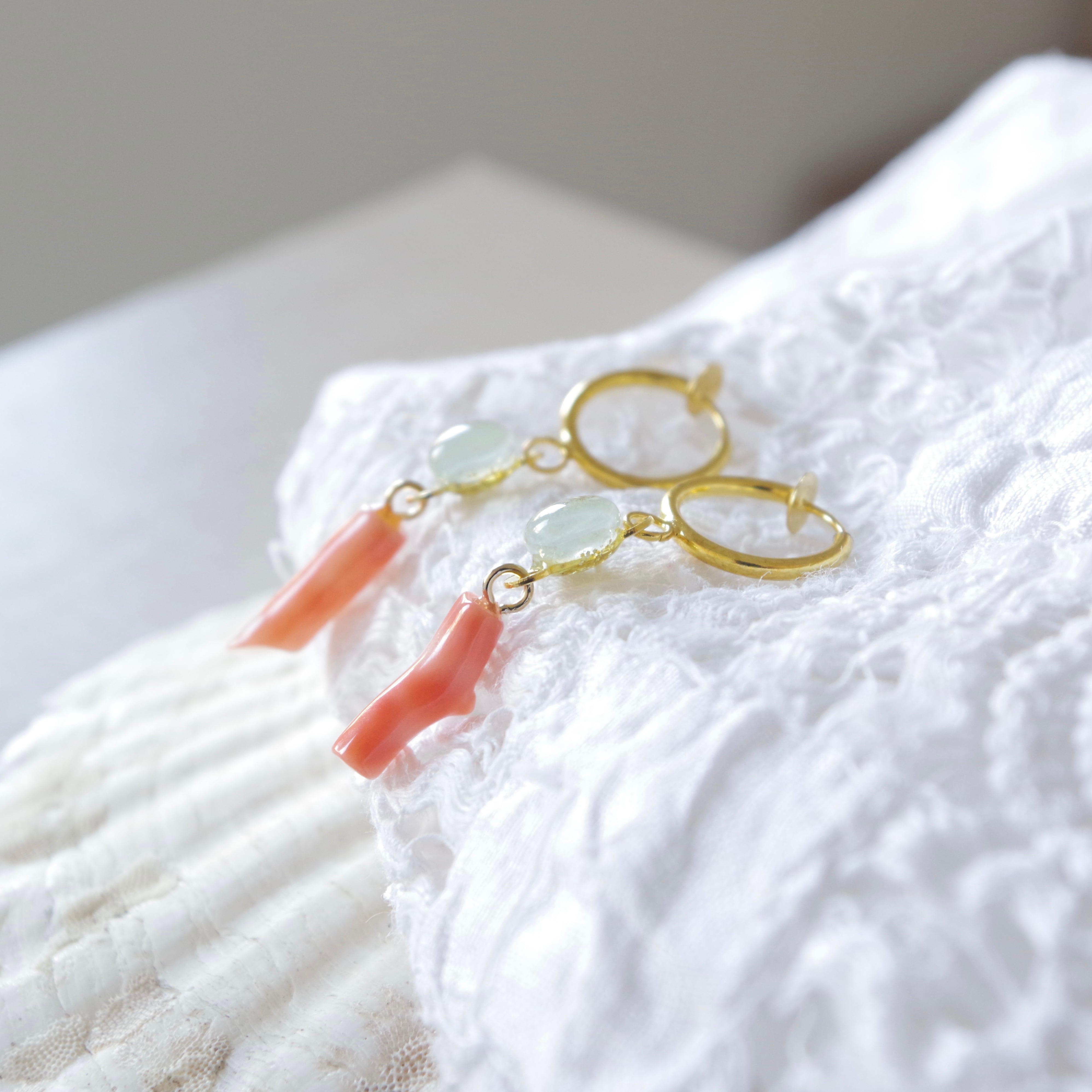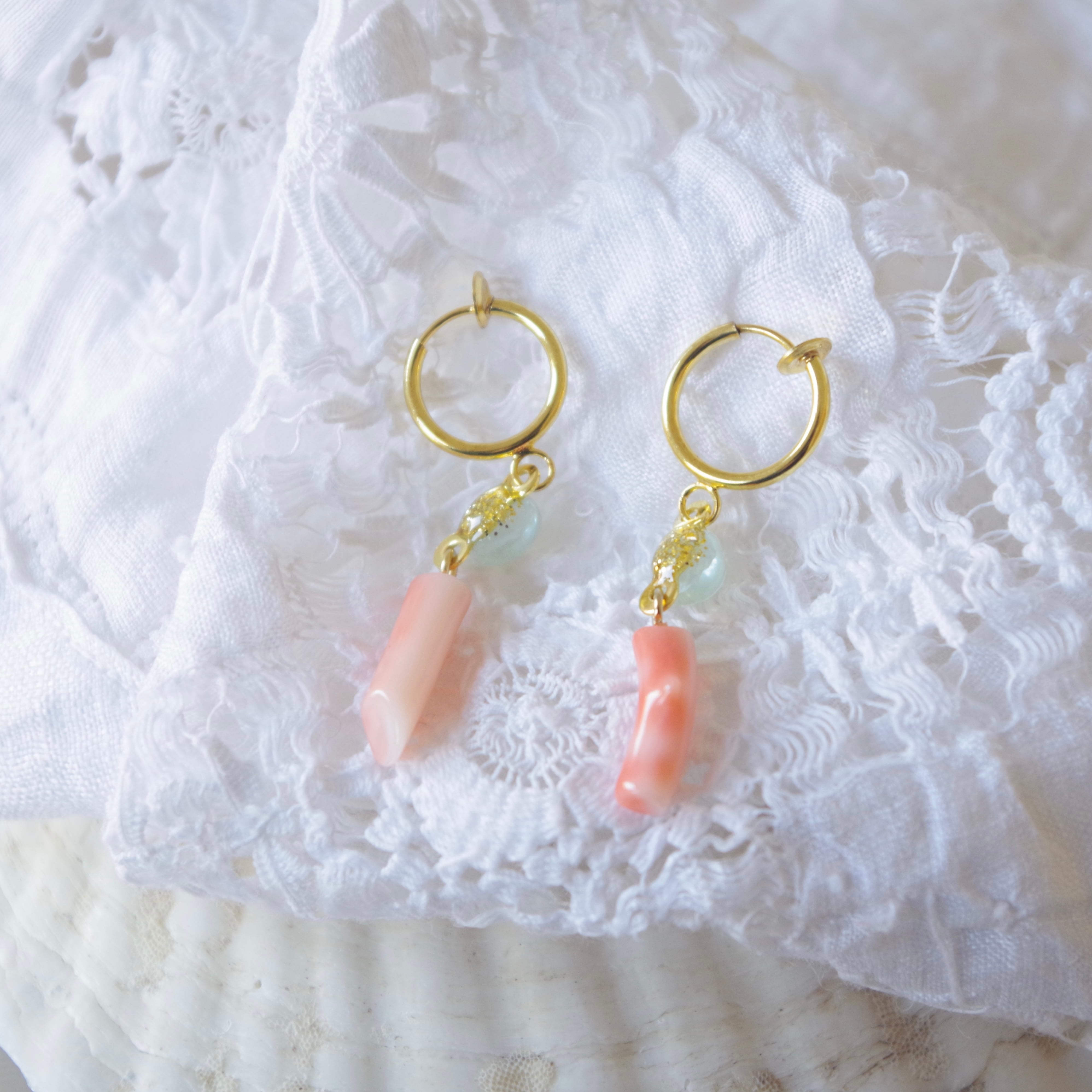 Coral Reef │ ピンク珊瑚とシーグラスのイヤリング/ピアス