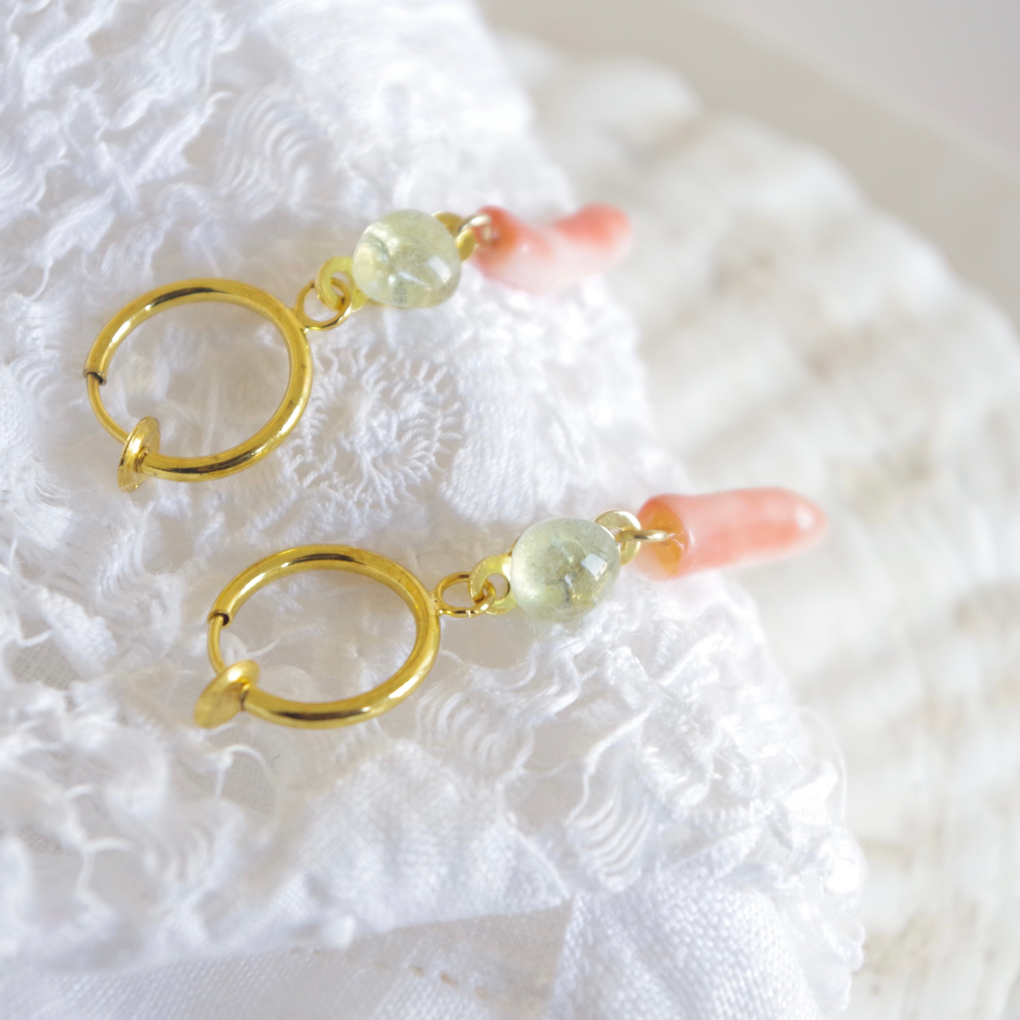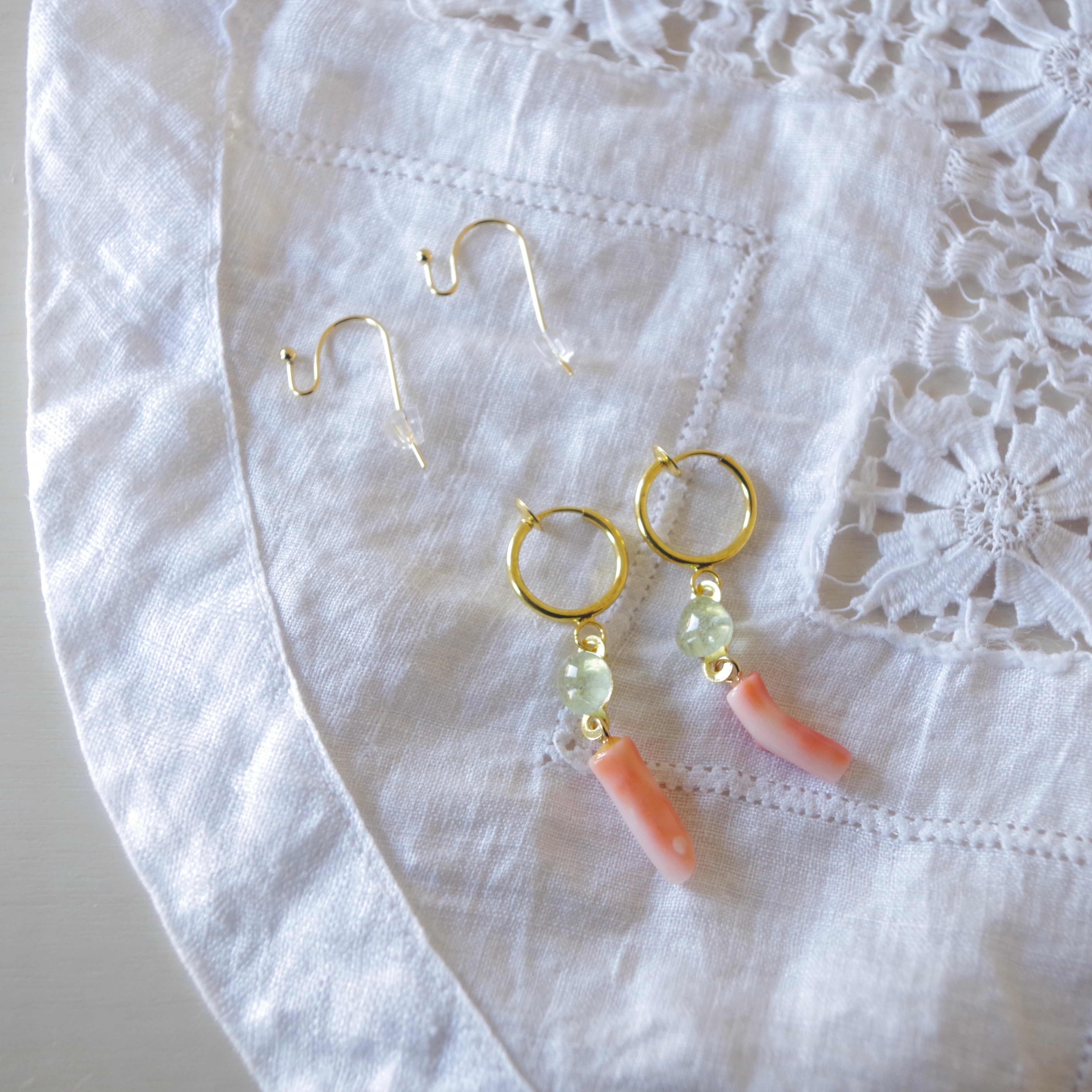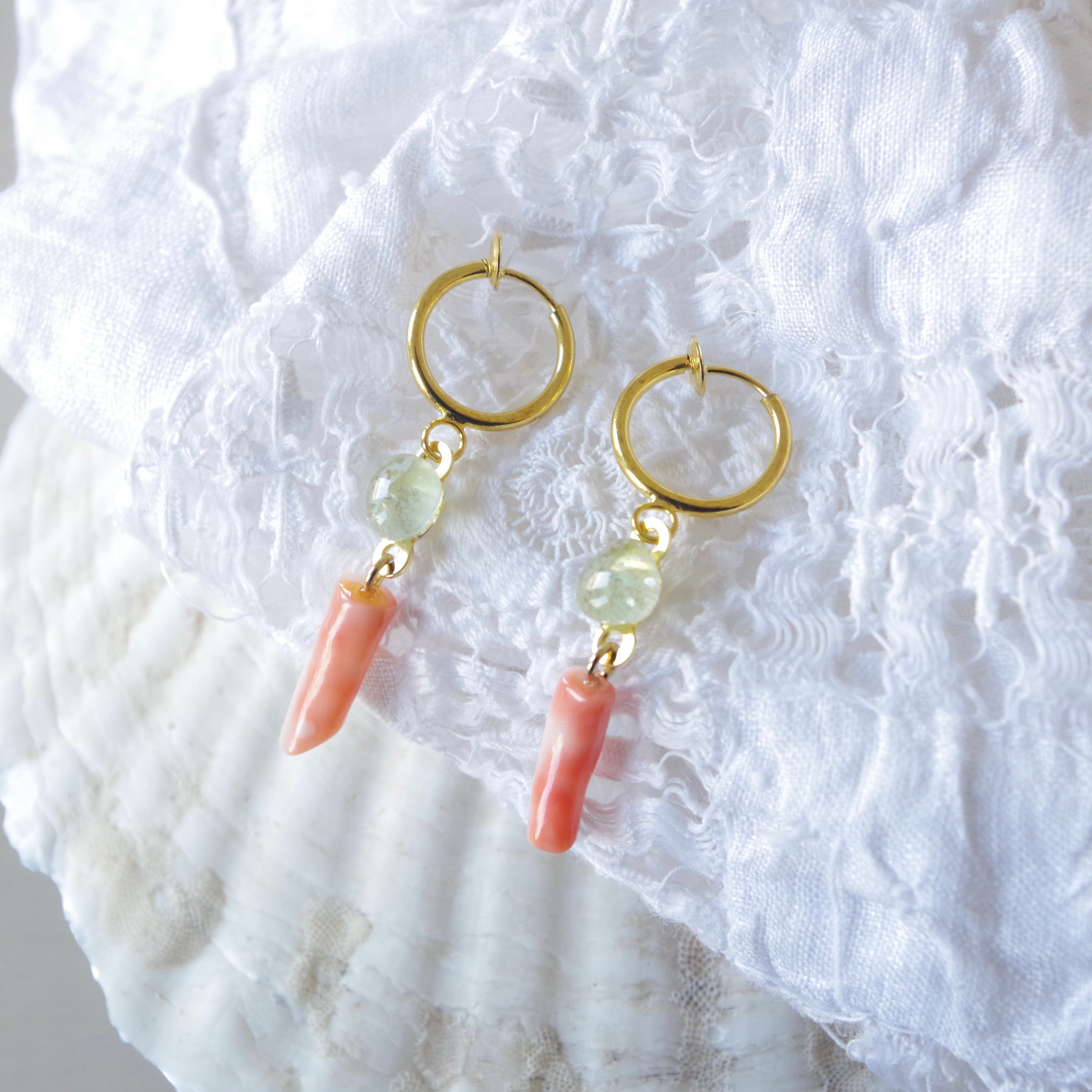 Coral Reef │ ピンク珊瑚とシーグラスのイヤリング/ピアス