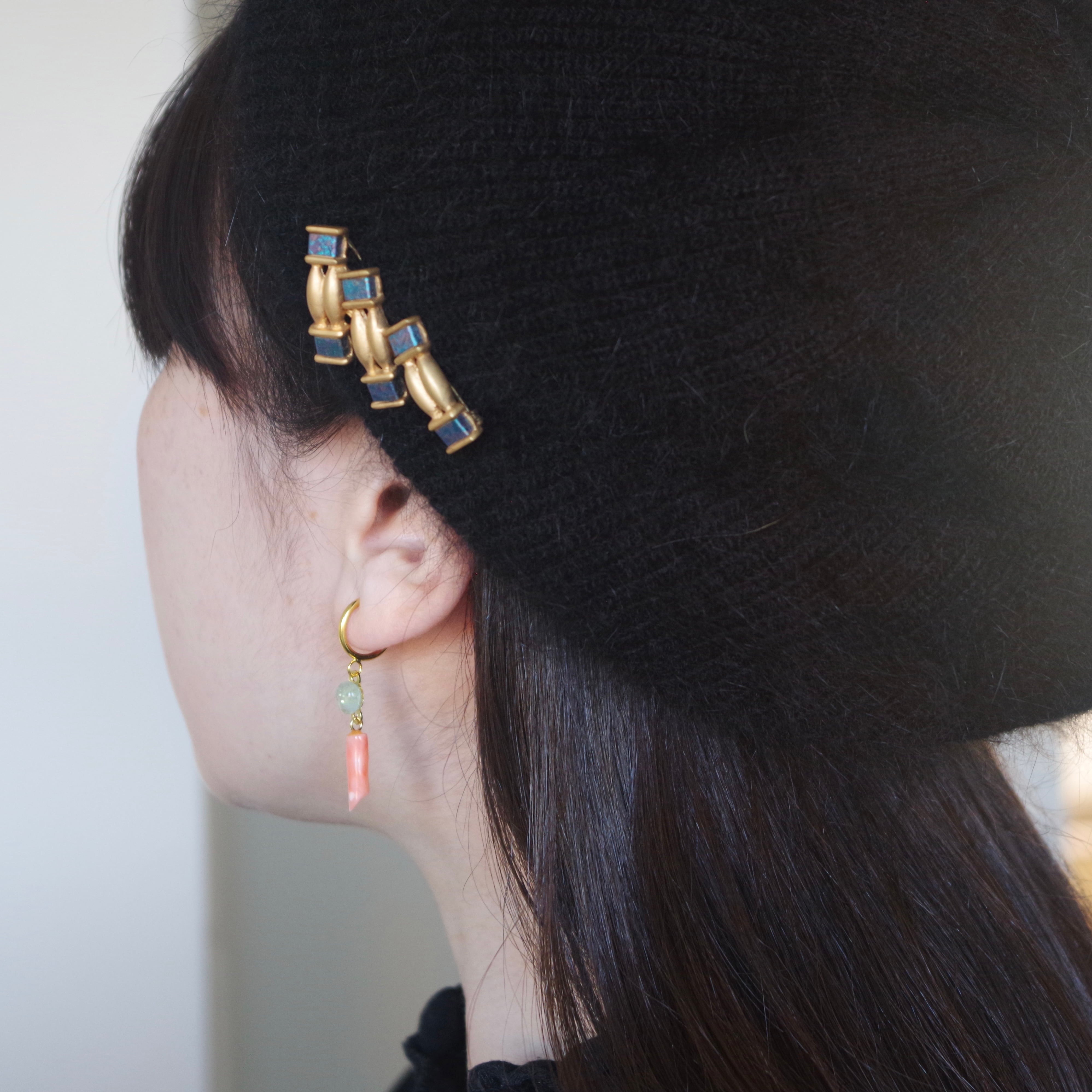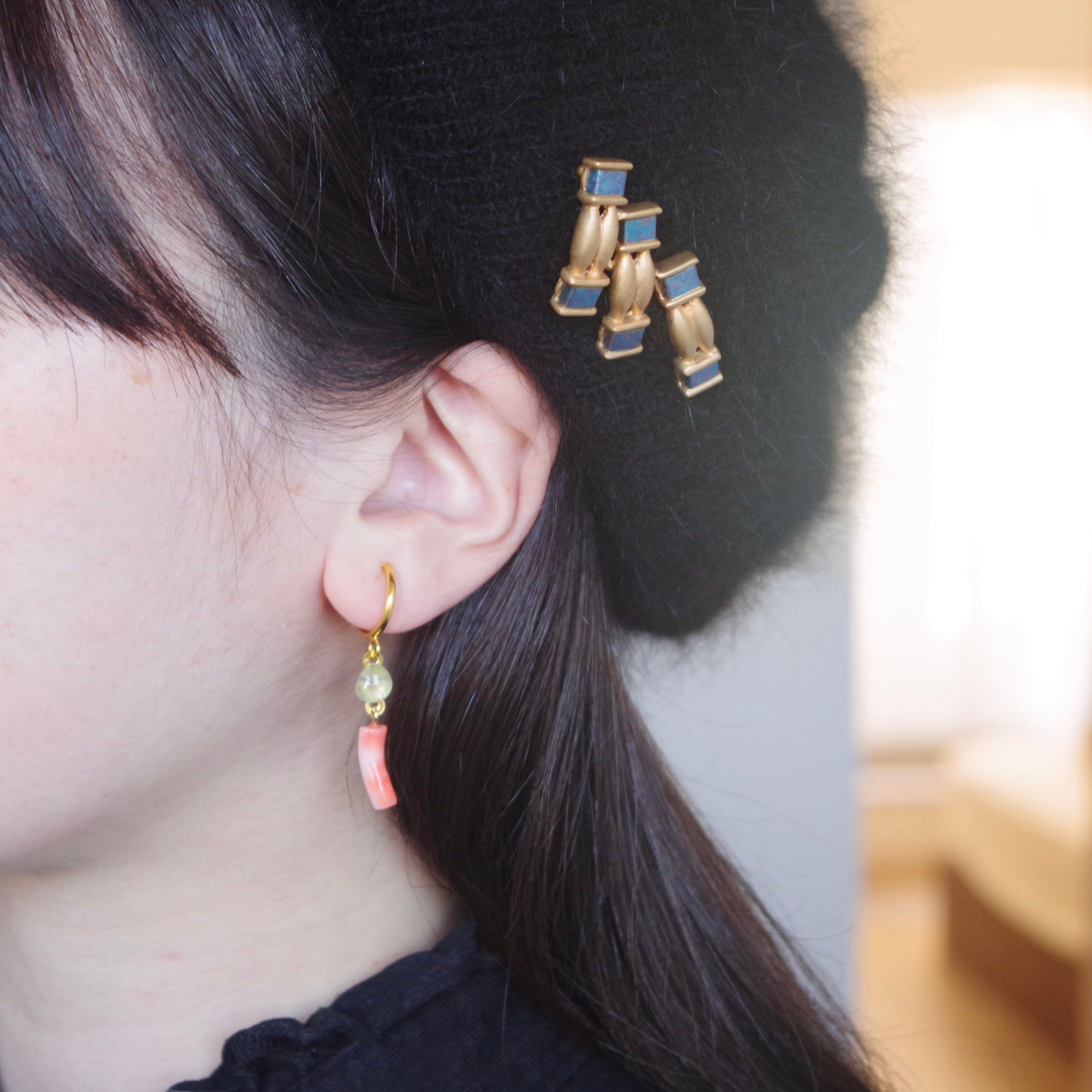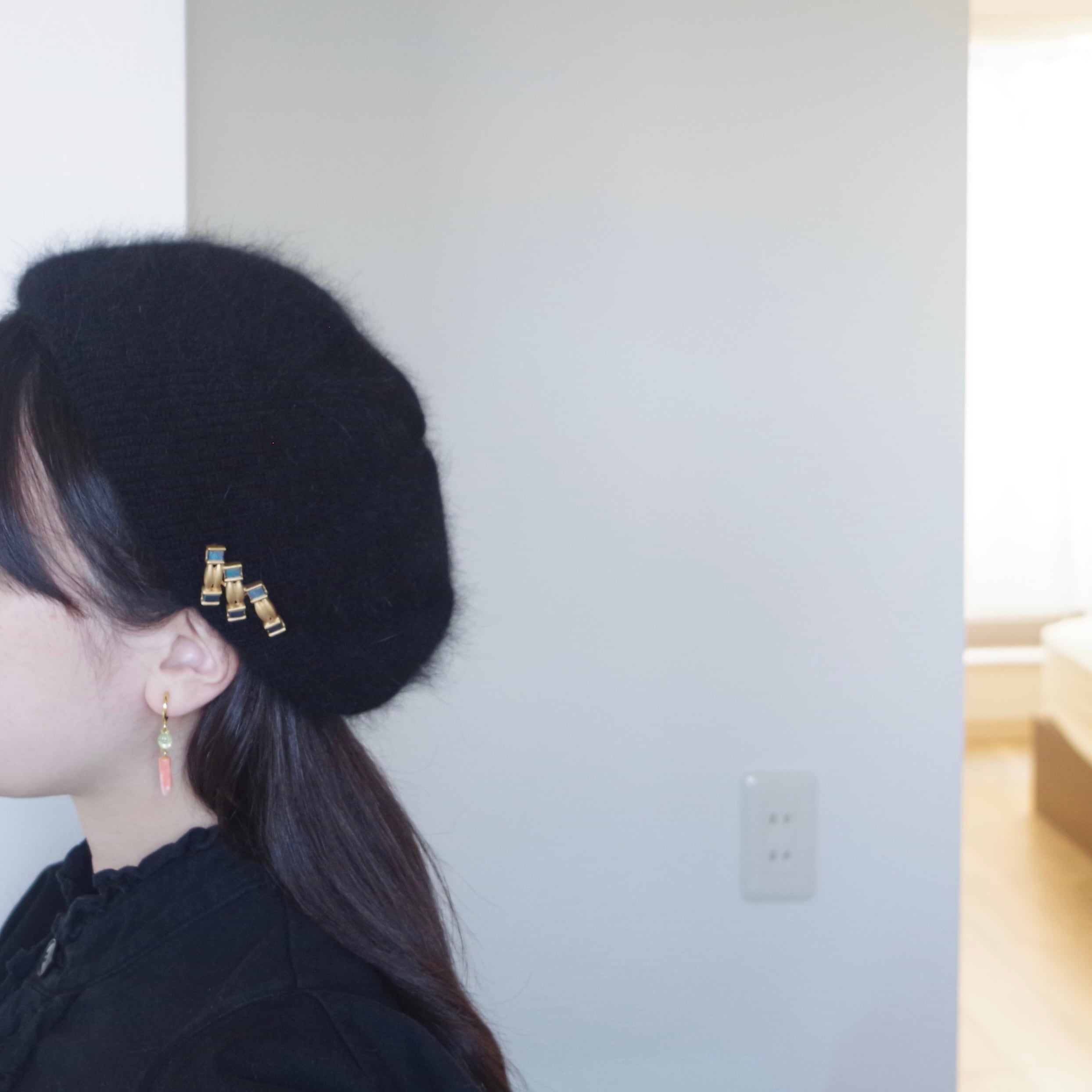 さりげない色遊びを楽しむ大人のためのイヤリング。日常に溶け込みながら、気分を明るくしてくれる一品です。