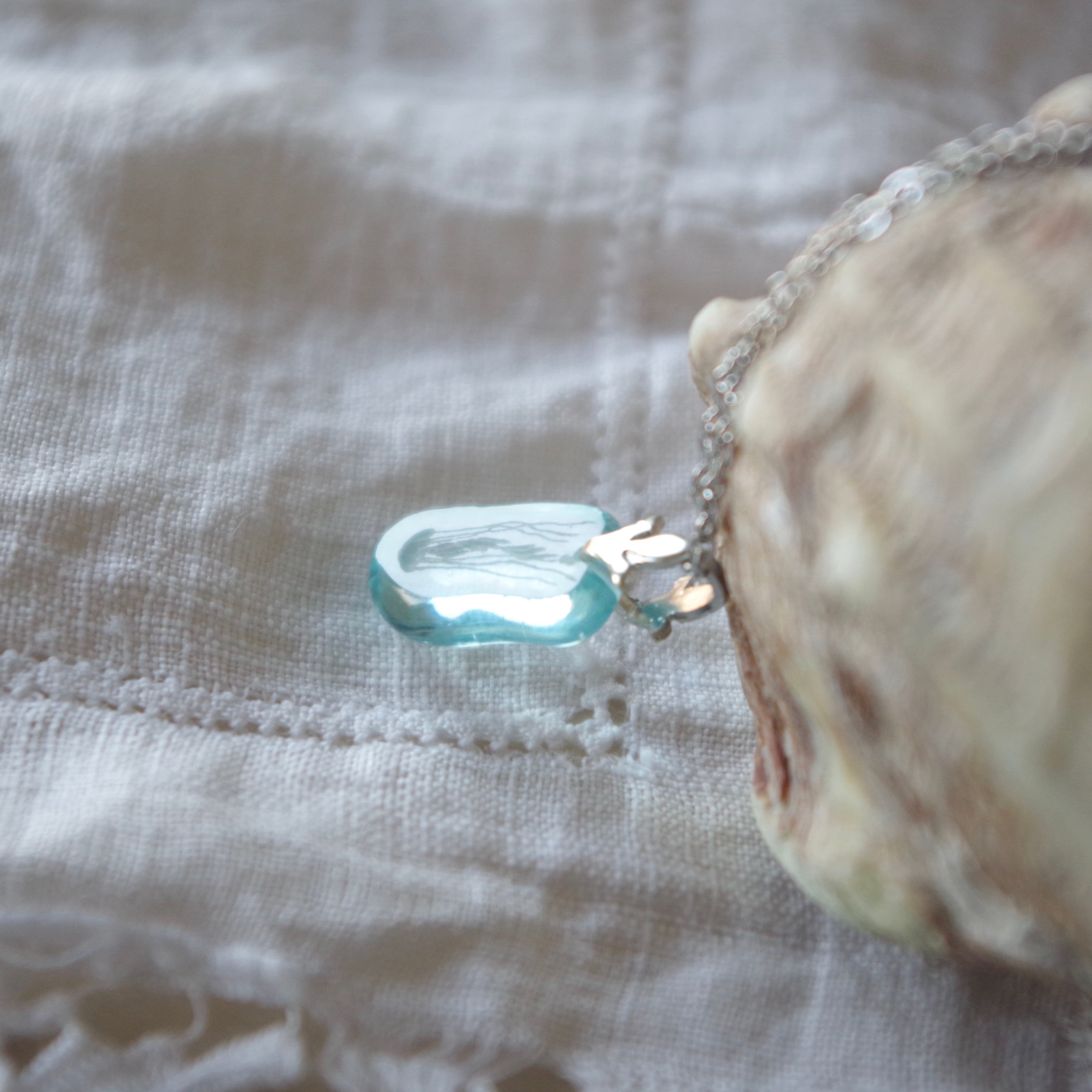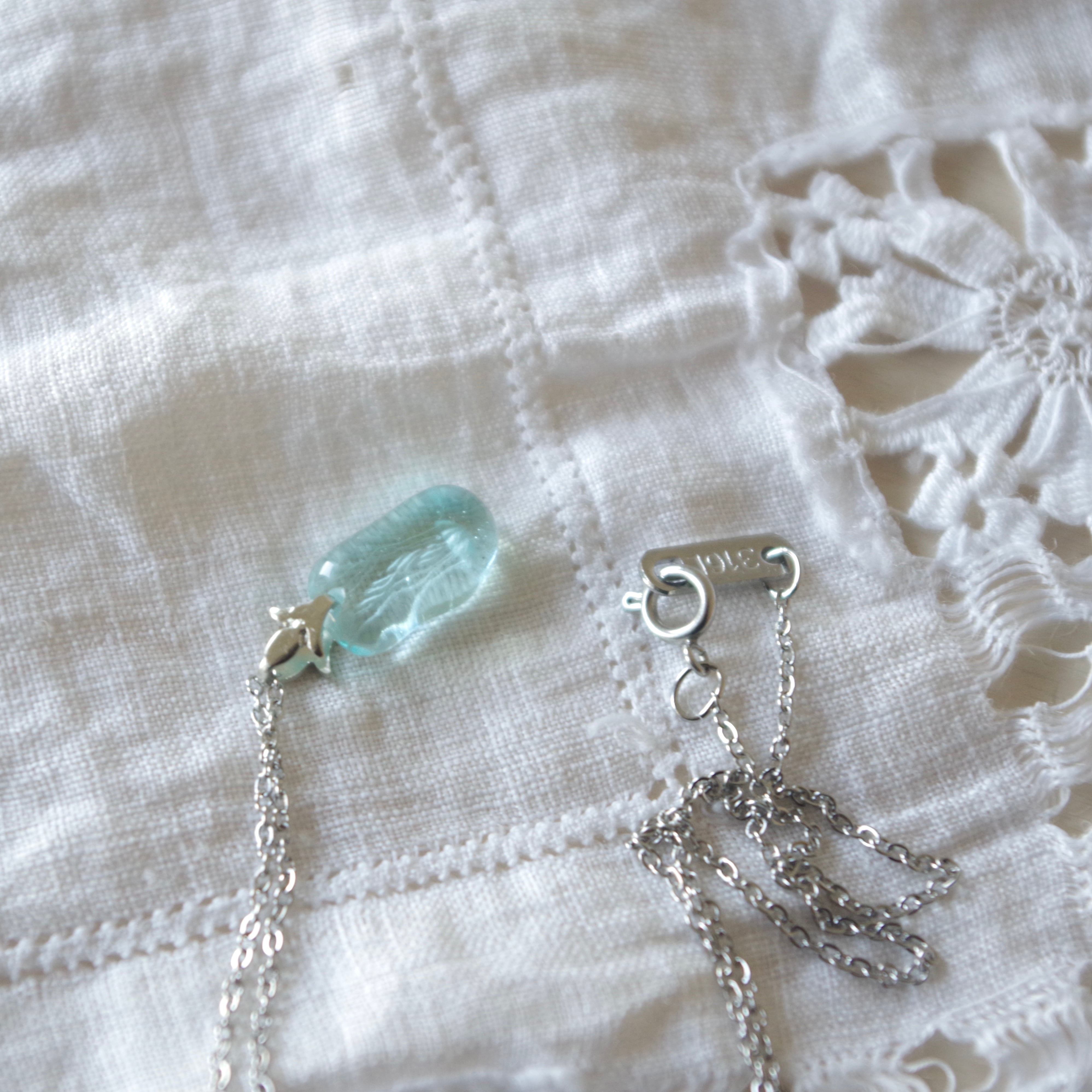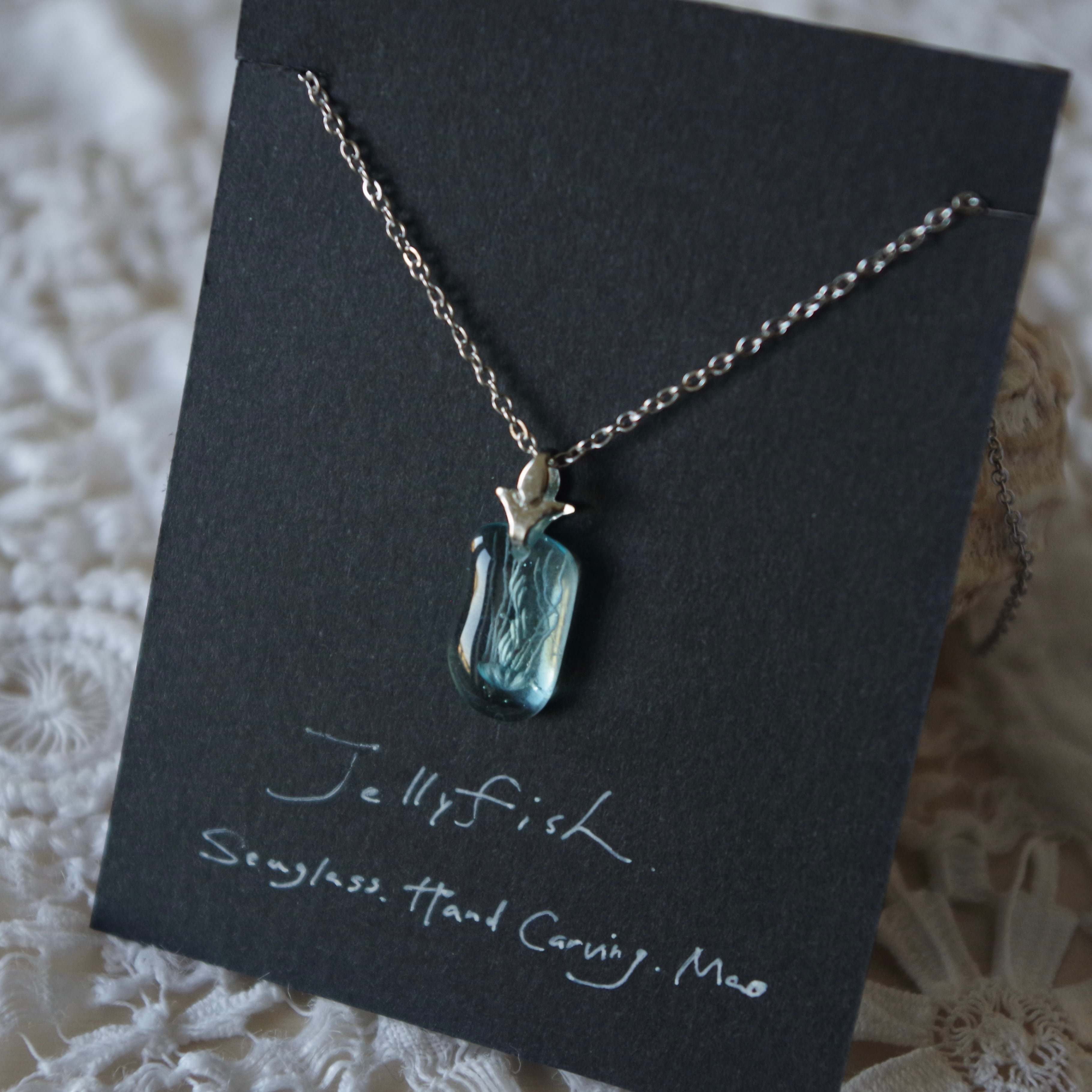 ネックレス クラゲ 海月 ブルー シーグラス ガラス ペンダントトップ インタリオ