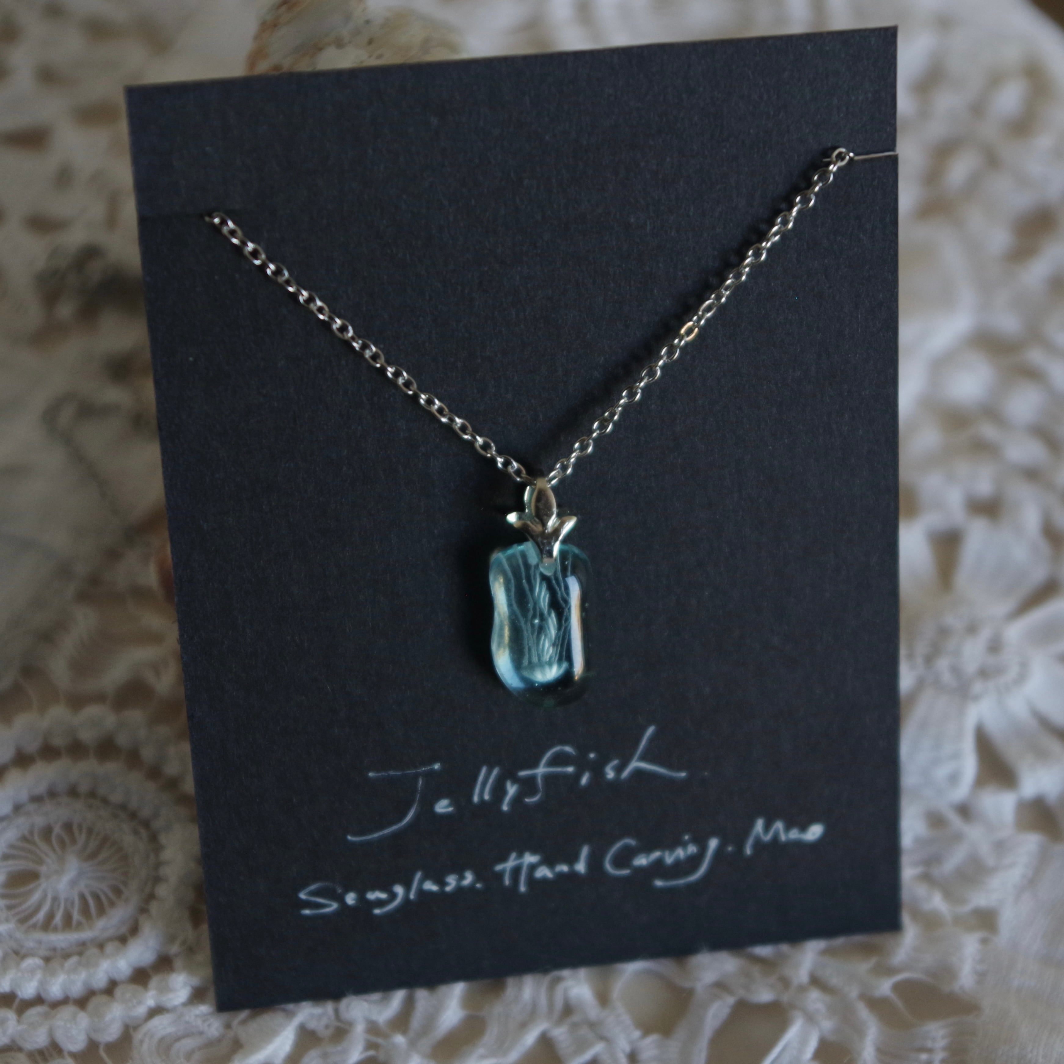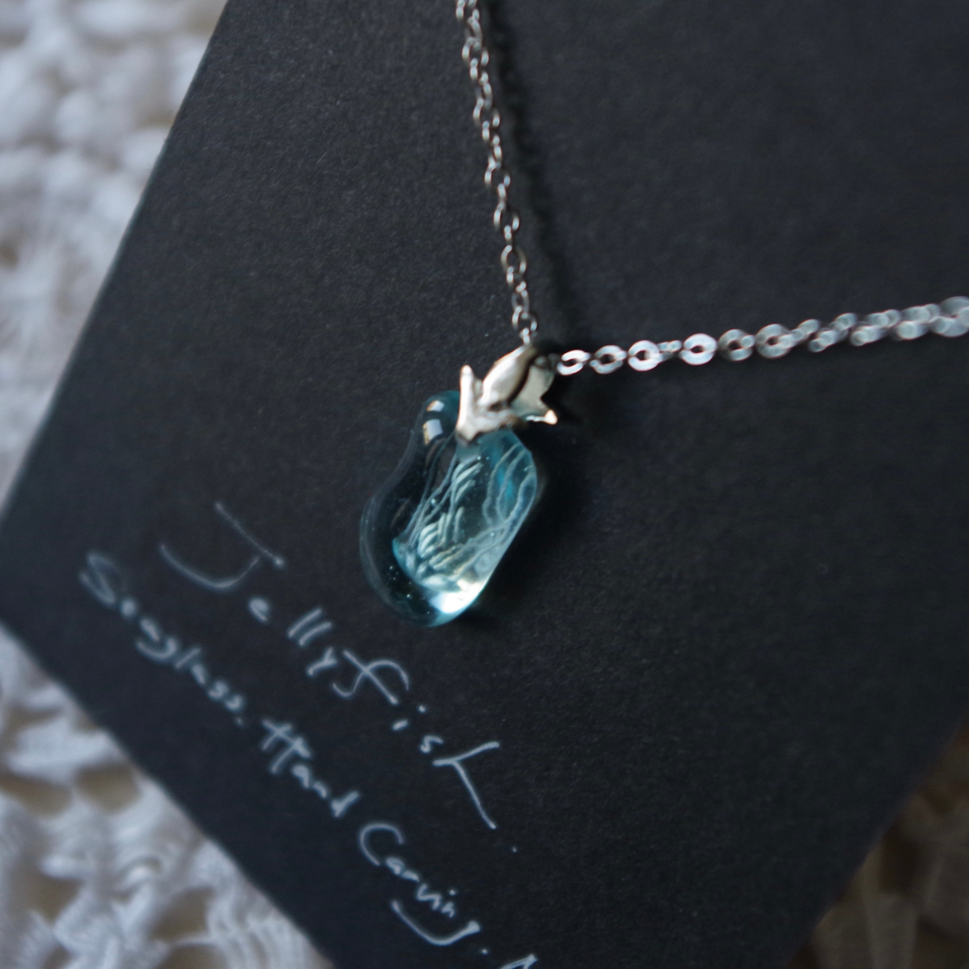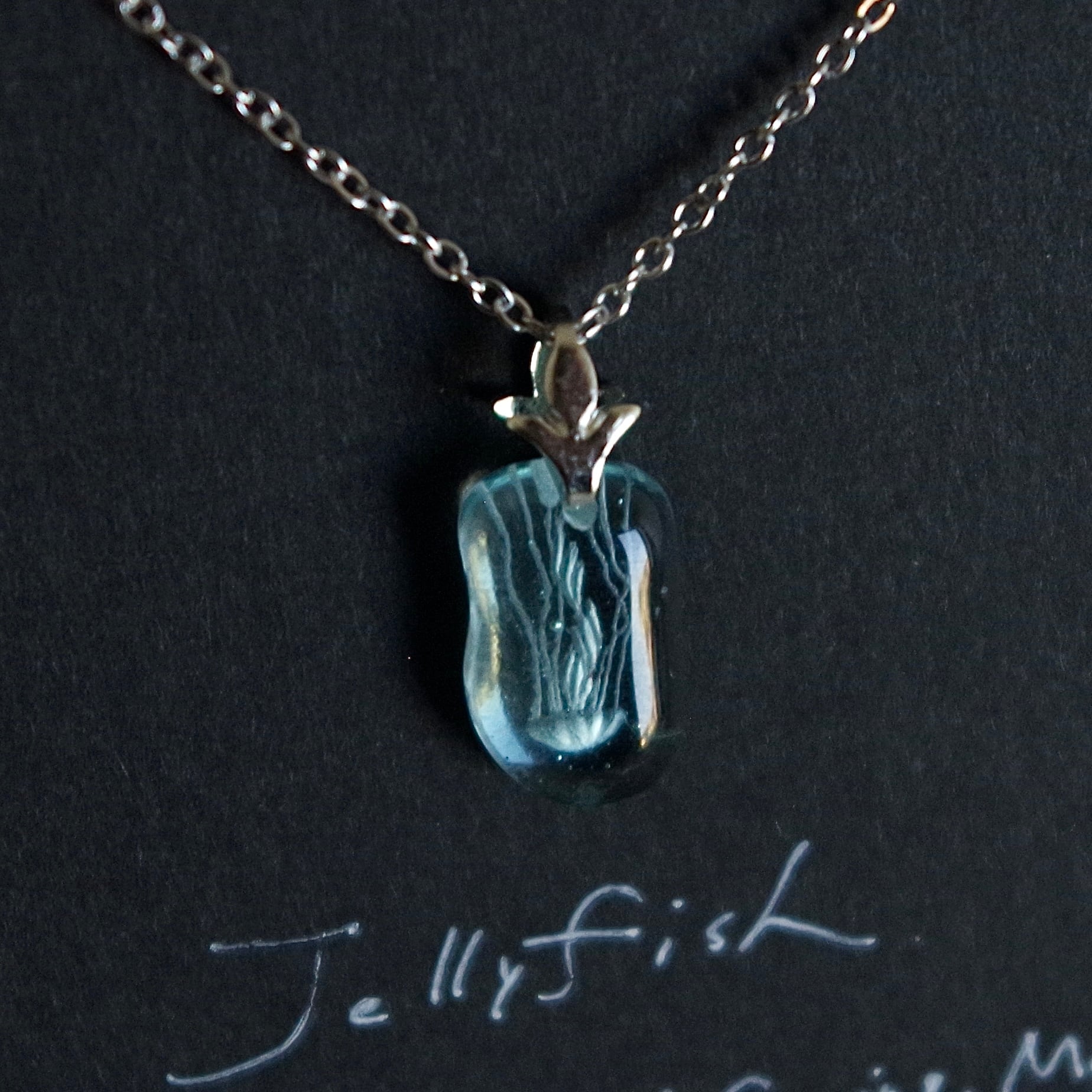 ネックレス クラゲ 海月 ブルー シーグラス ガラス ペンダントトップ インタリオ