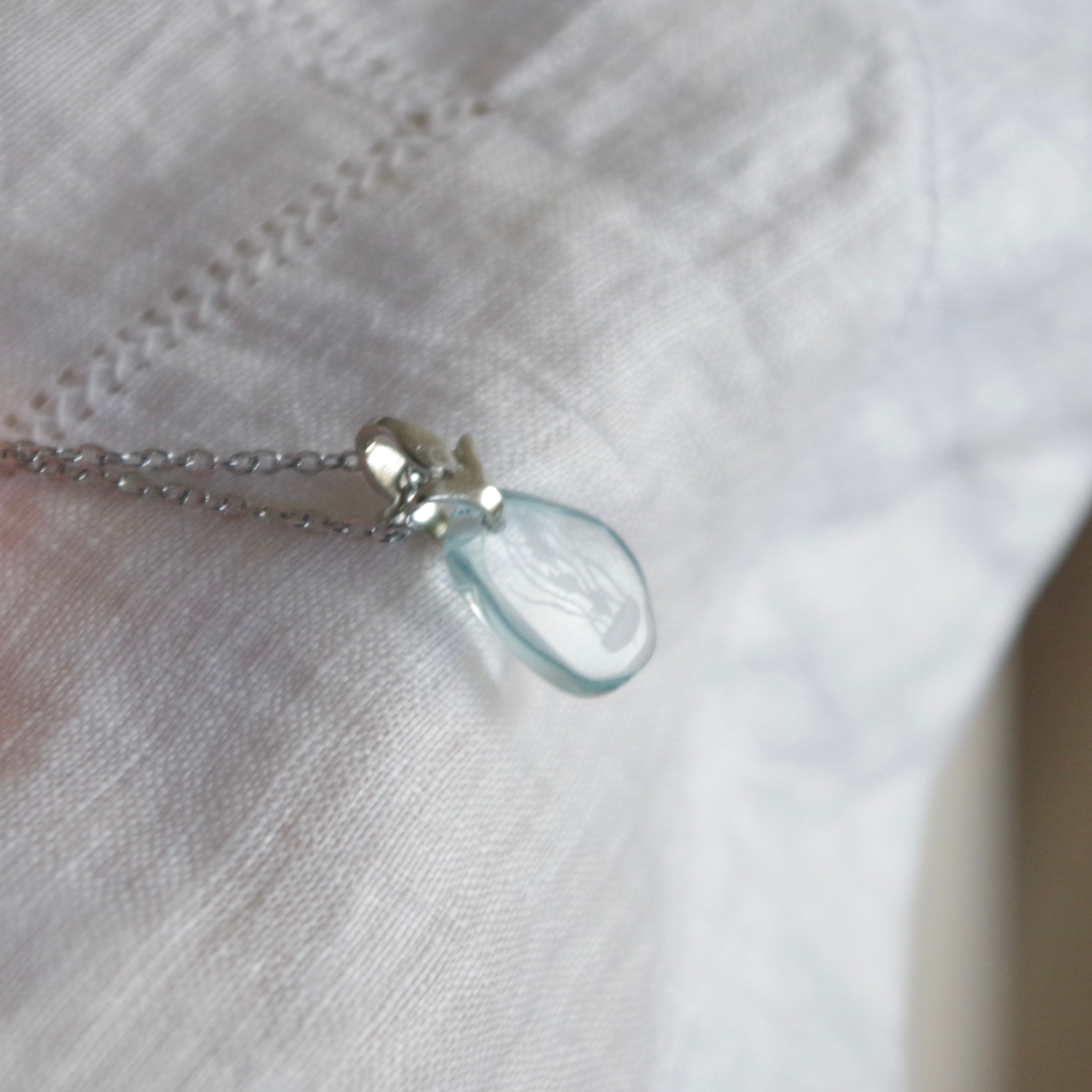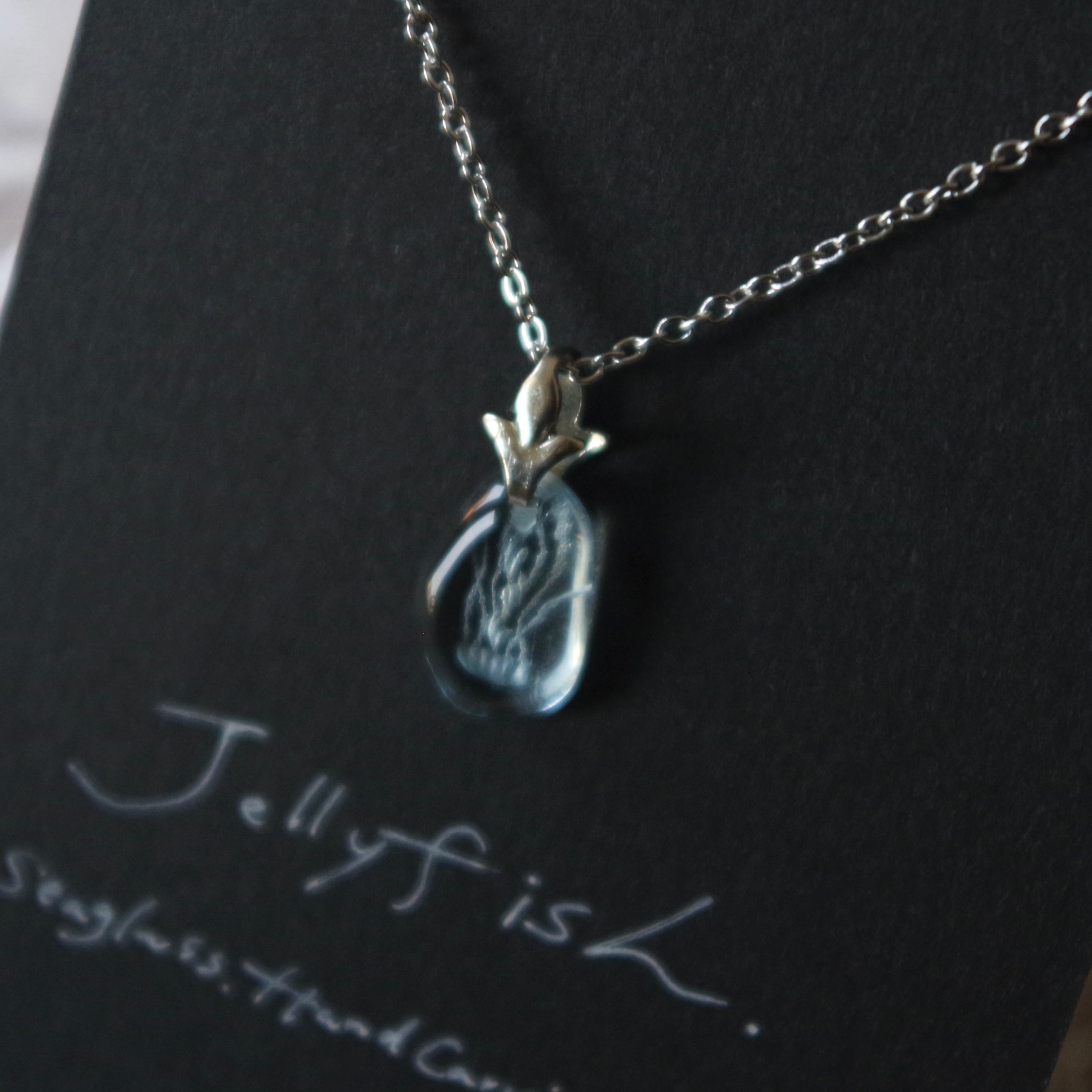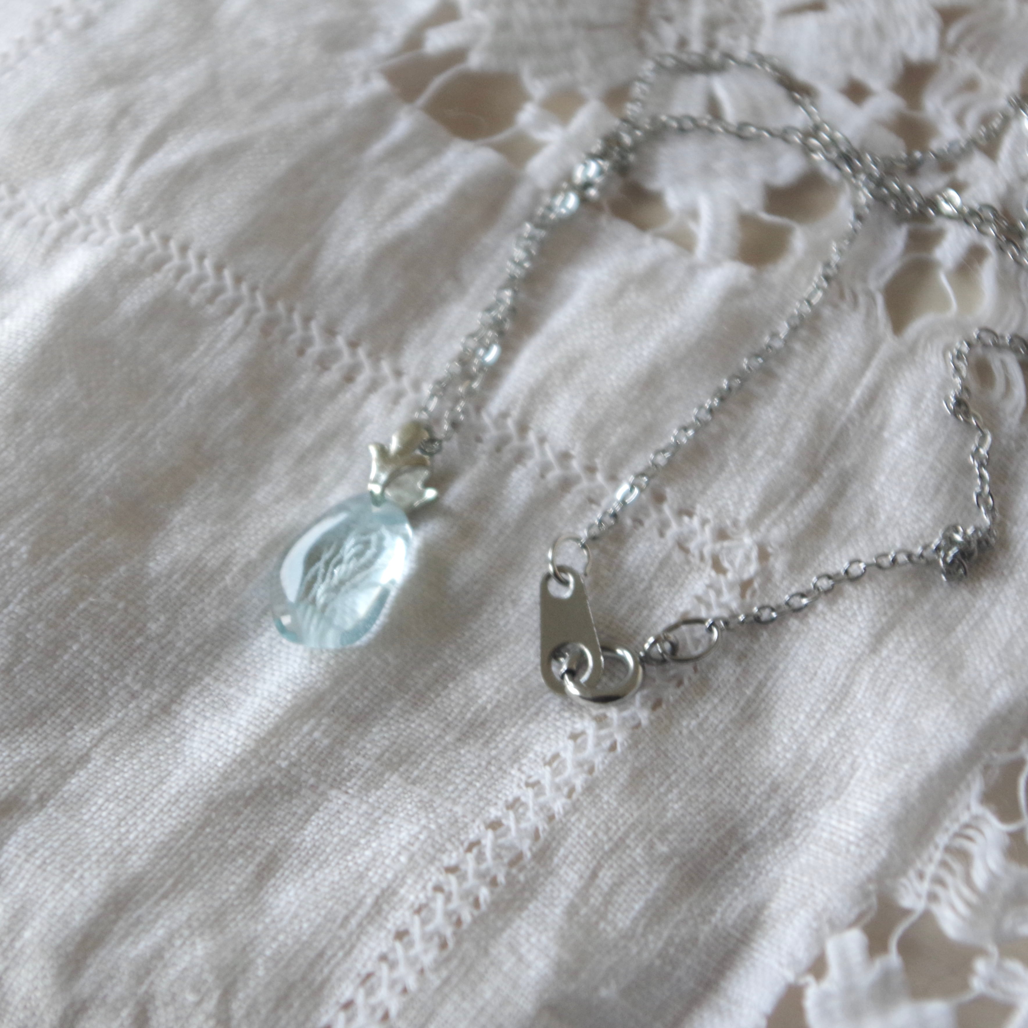 ネックレス クラゲ 海月 ブルー シーグラス ガラス ペンダントトップ インタリオ