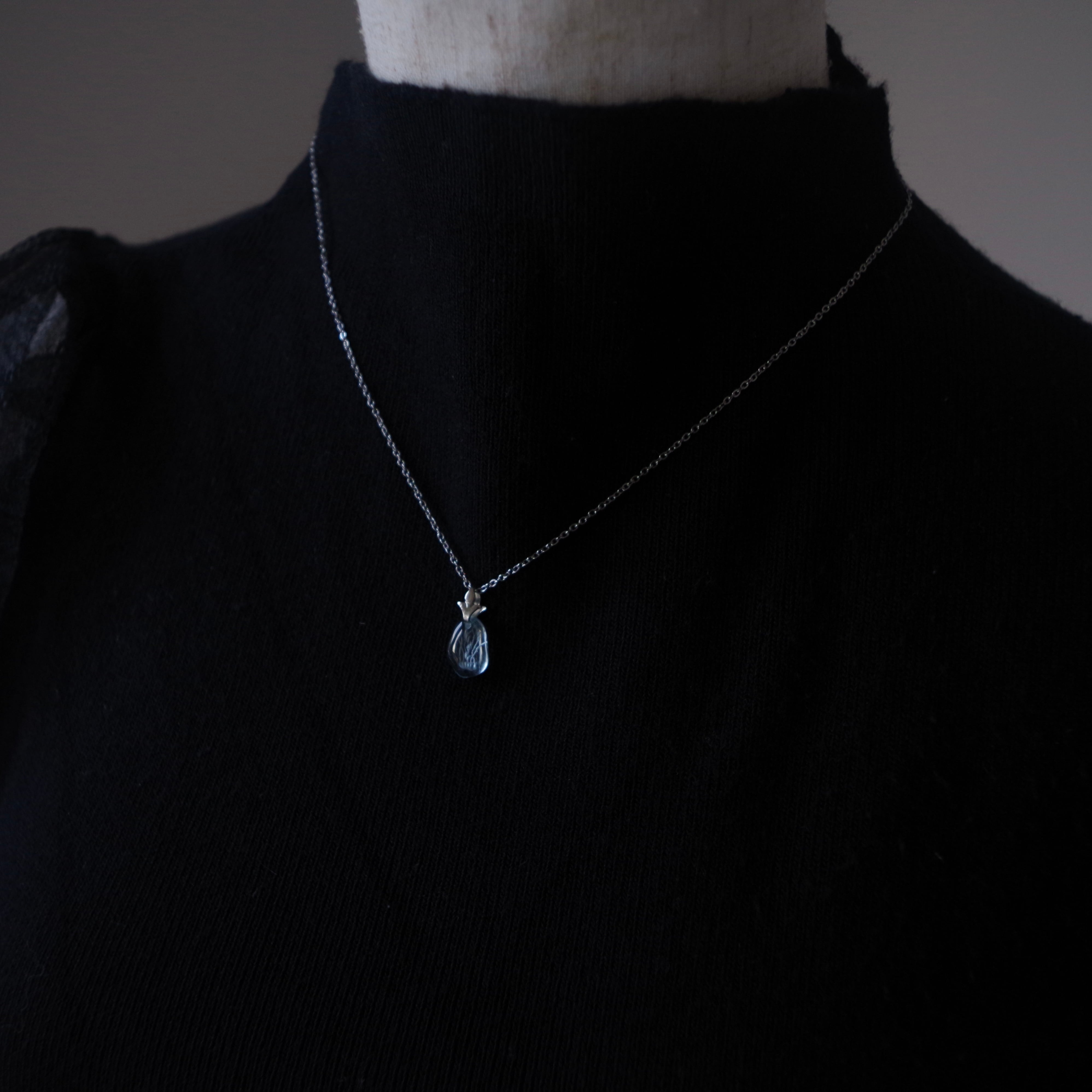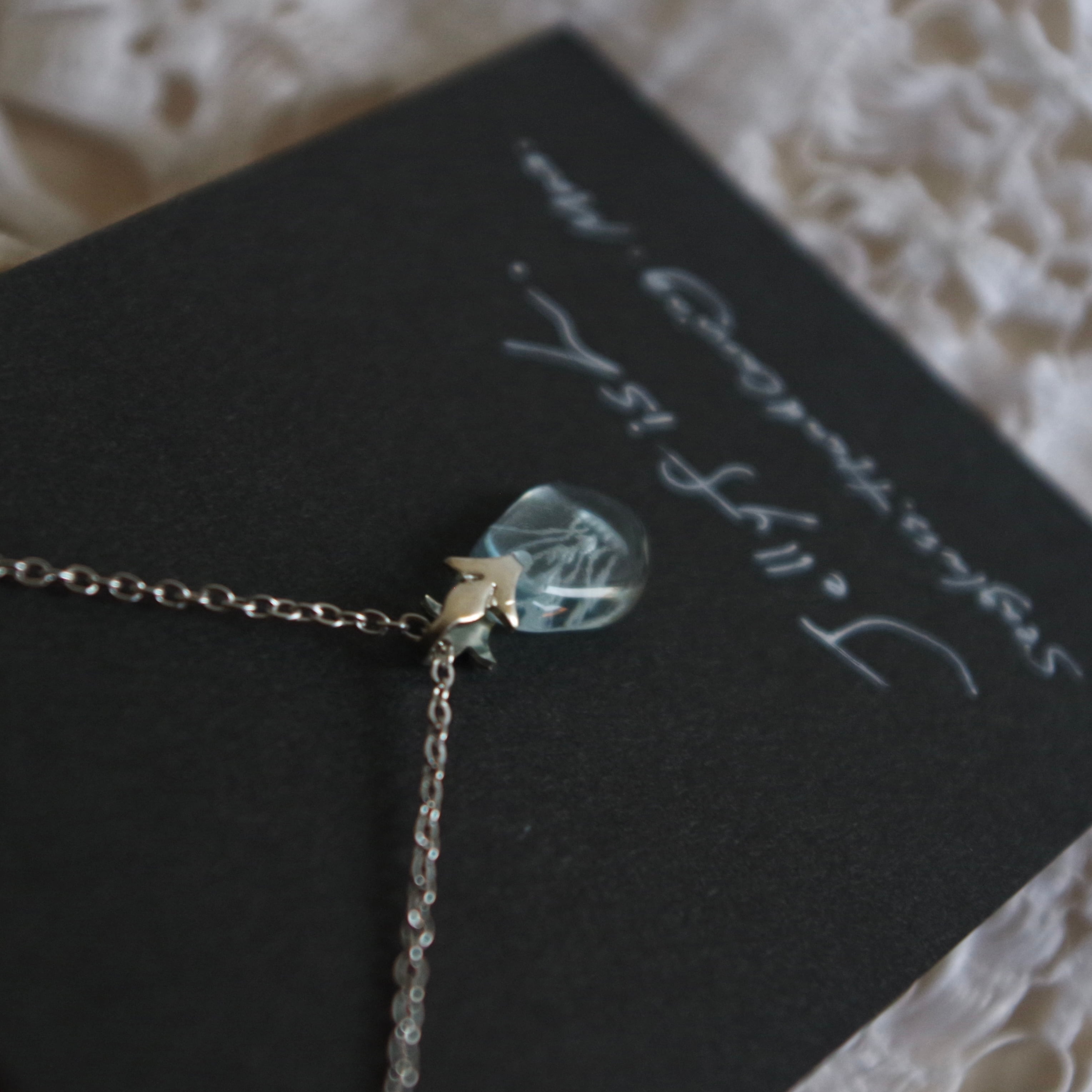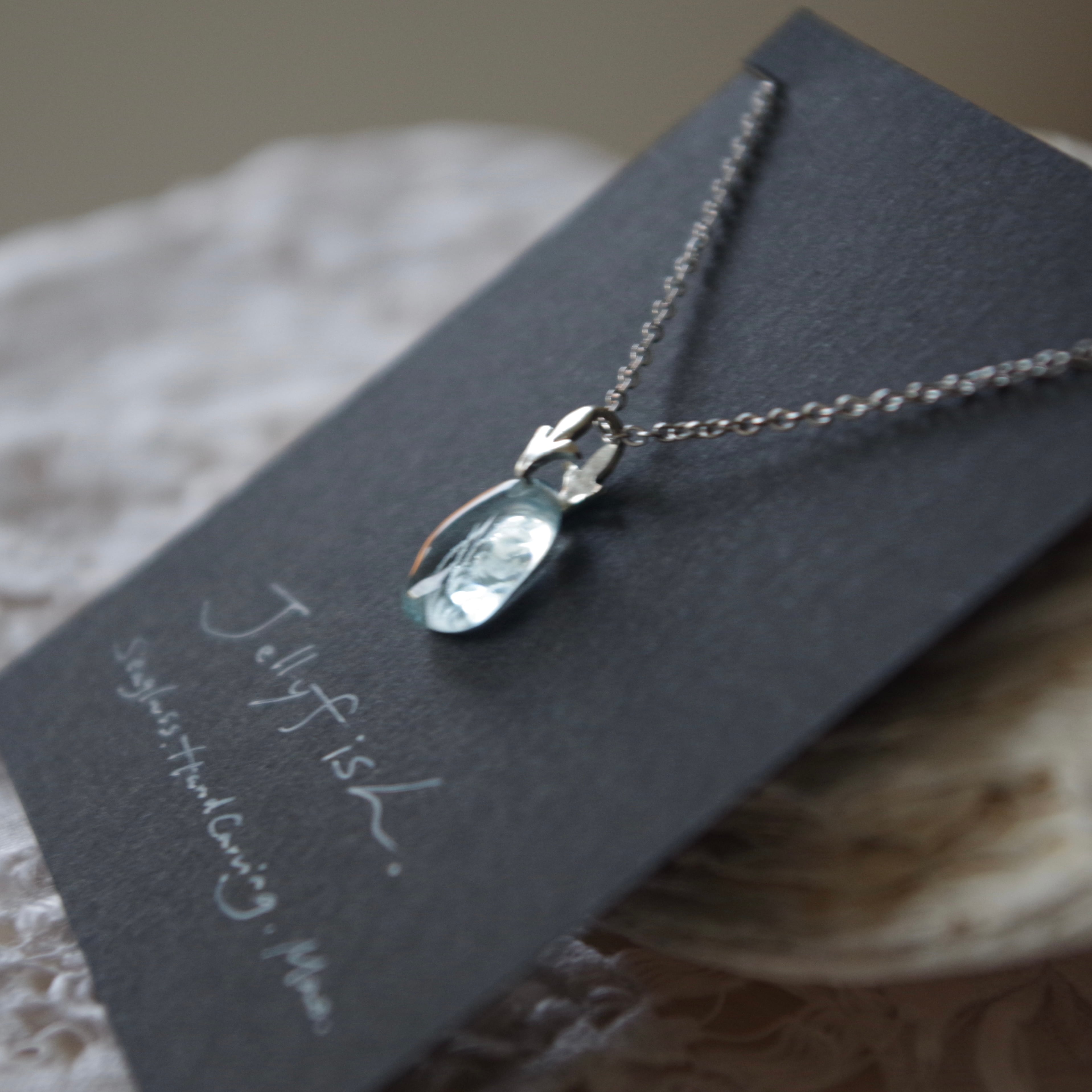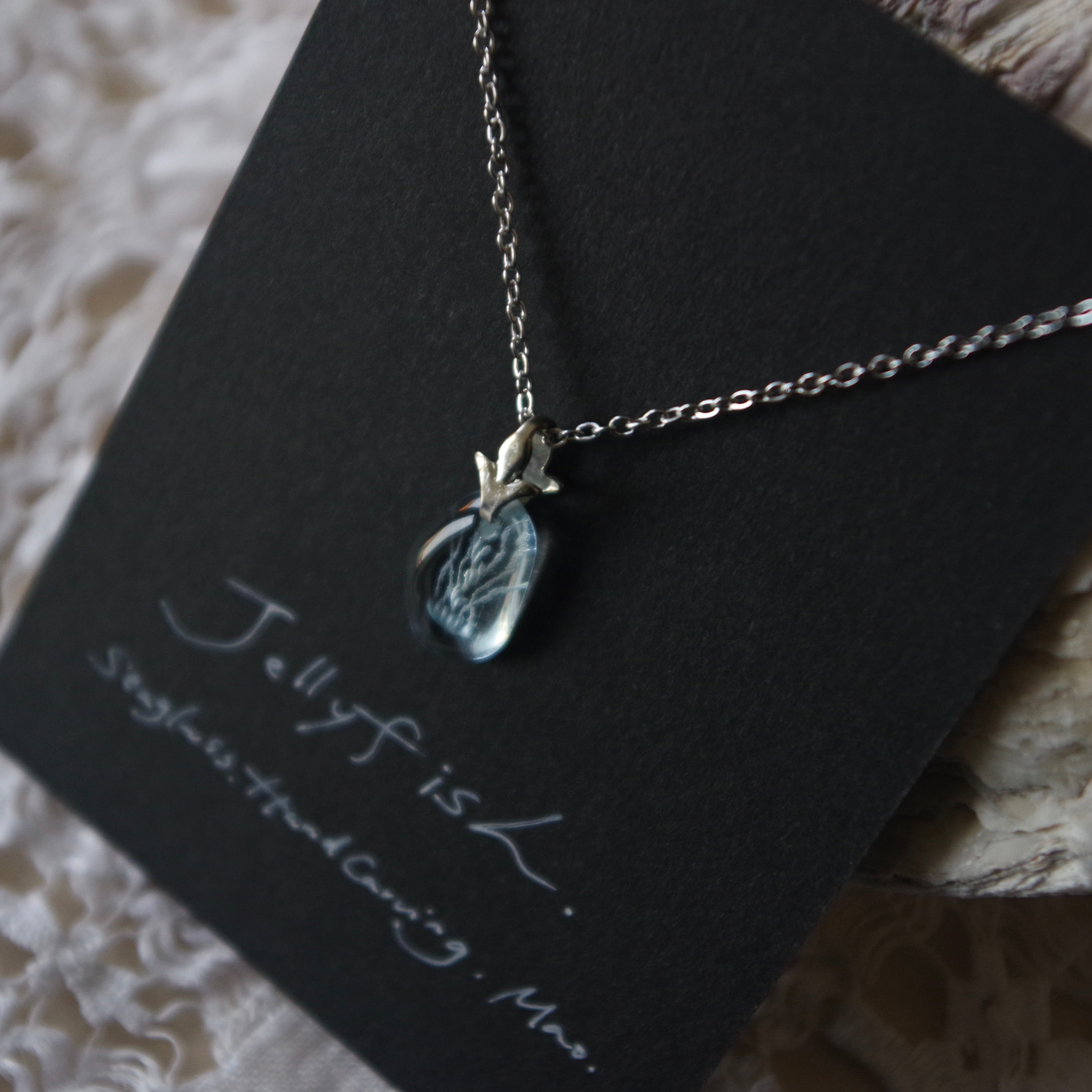 ネックレス クラゲ 海月 ブルー シーグラス ガラス ペンダントトップ インタリオ