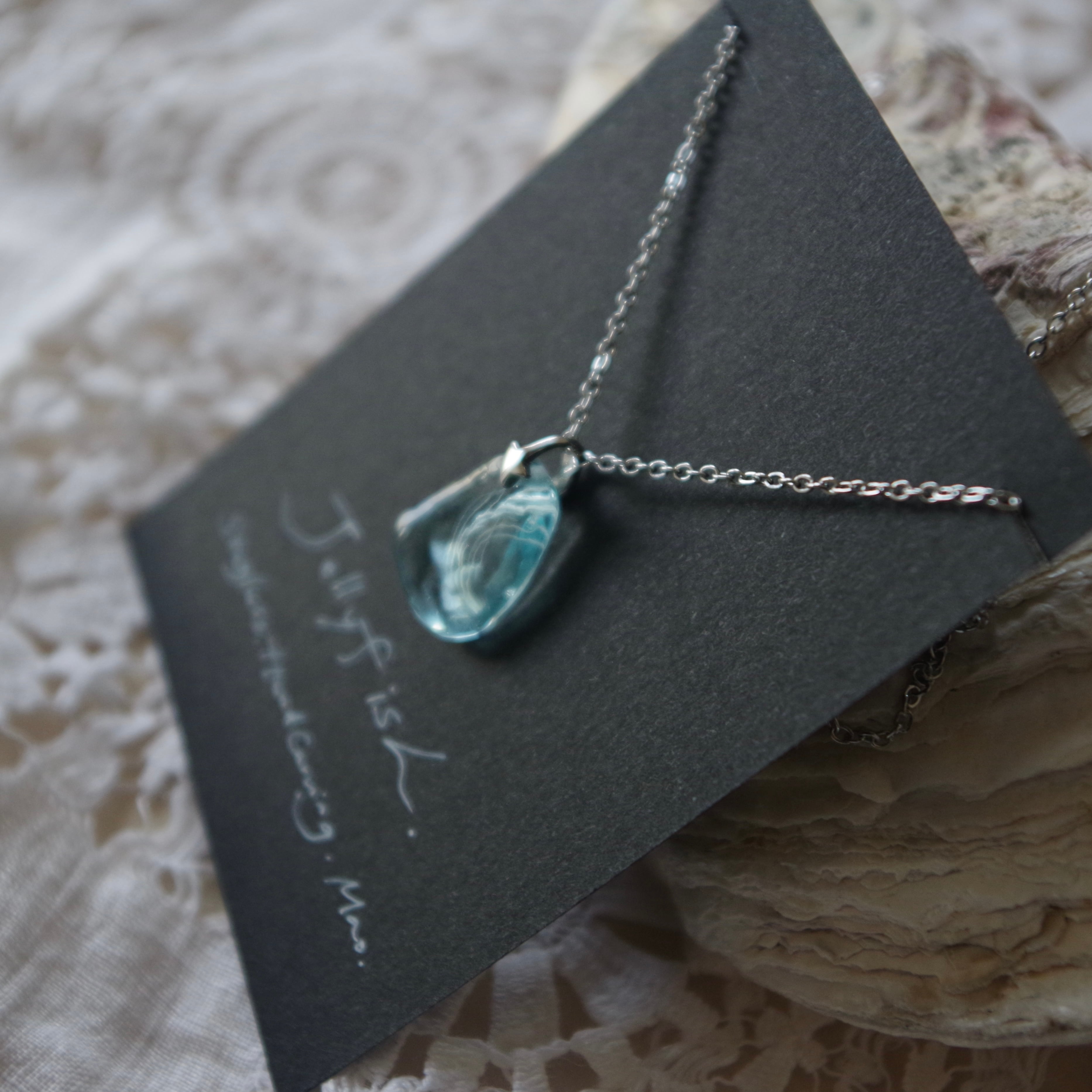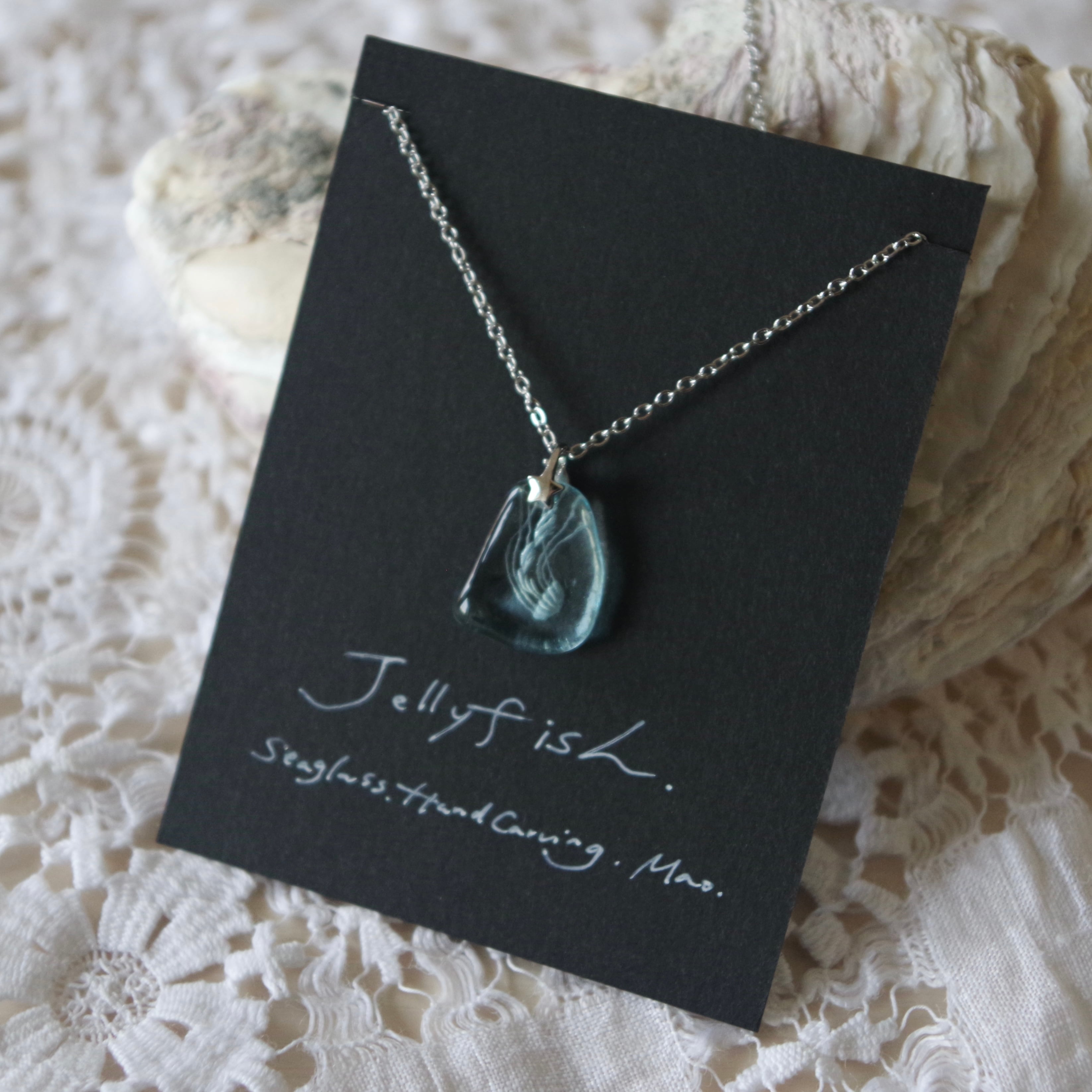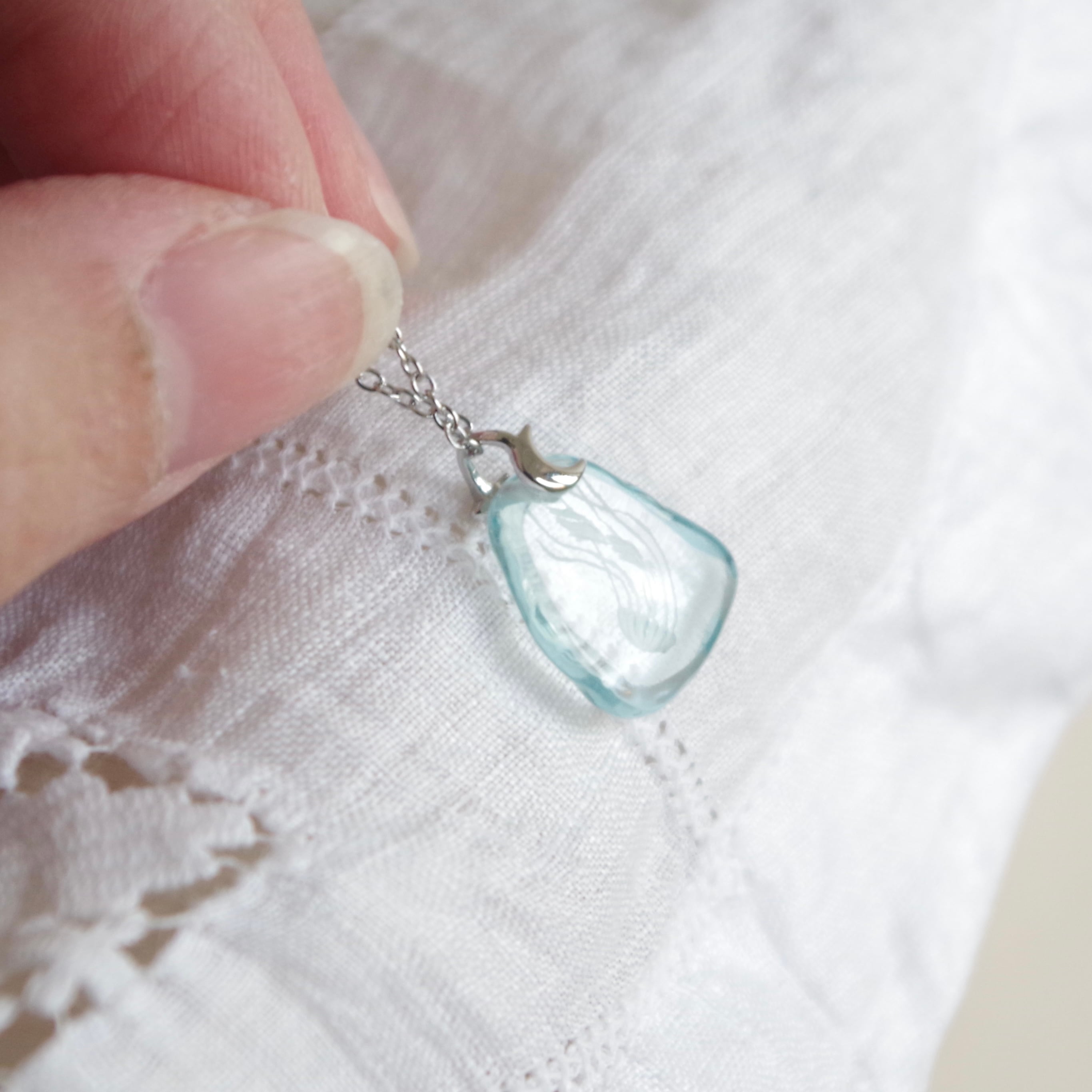 ネックレス クラゲ 海月 ブルー シーグラス ガラス ペンダントトップ インタリオ