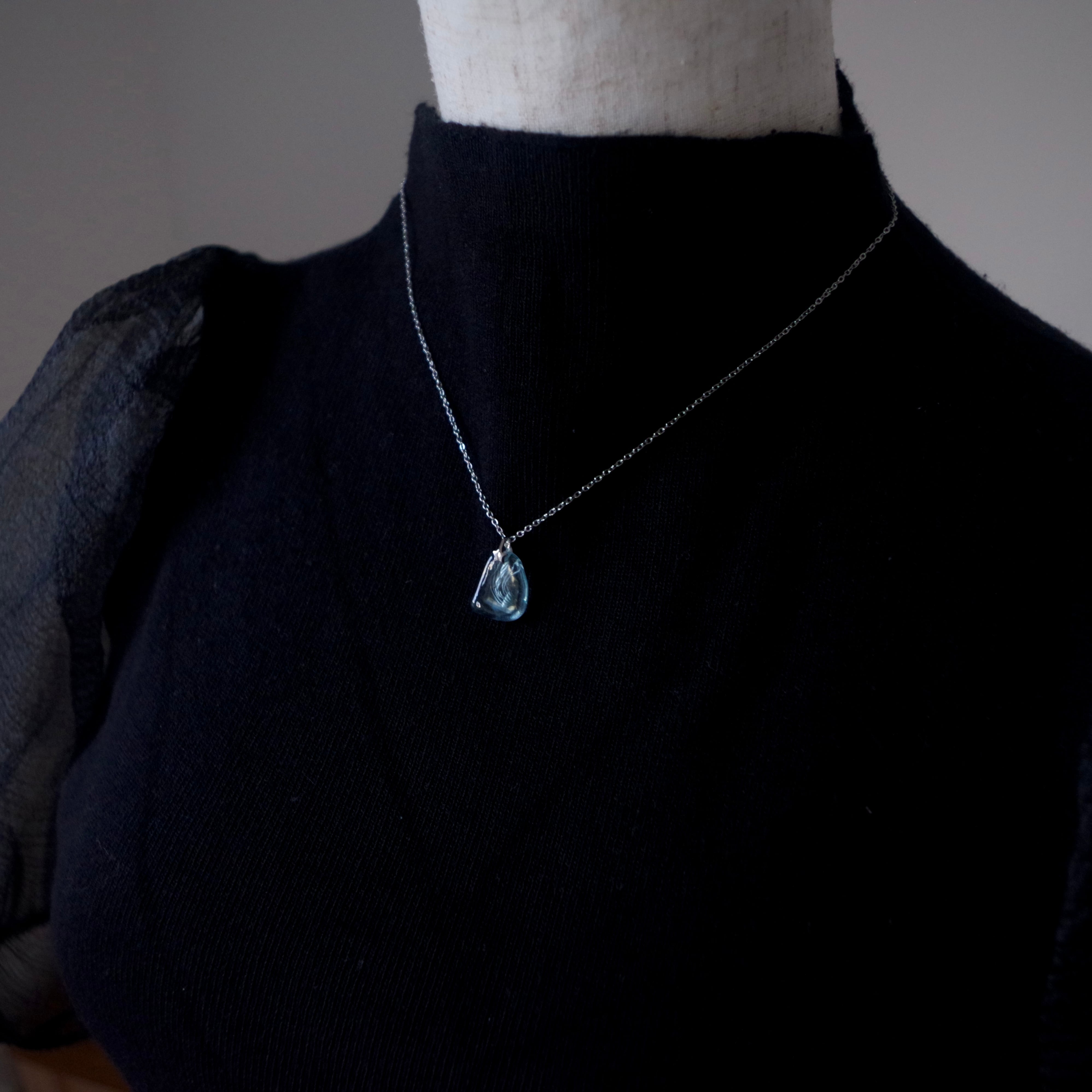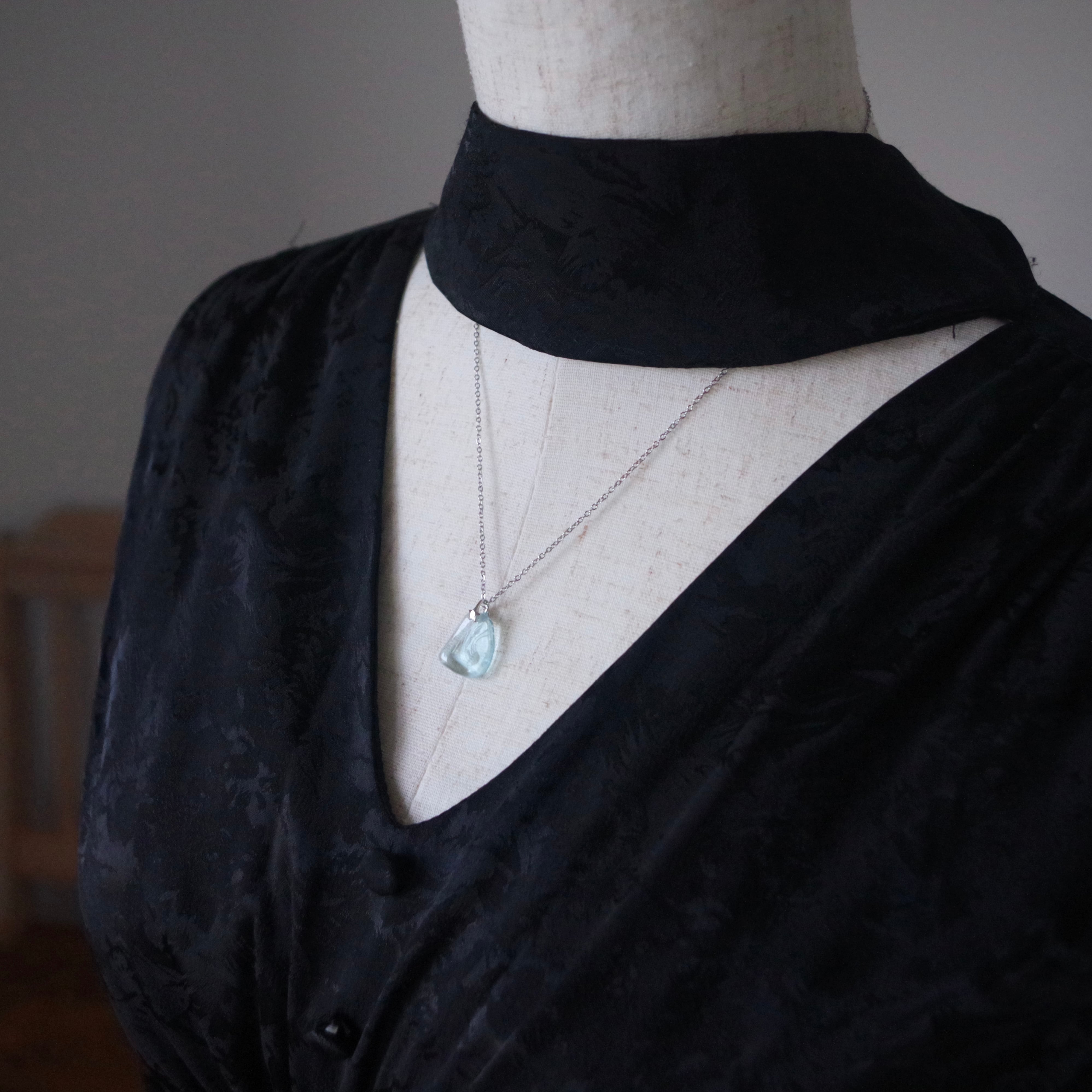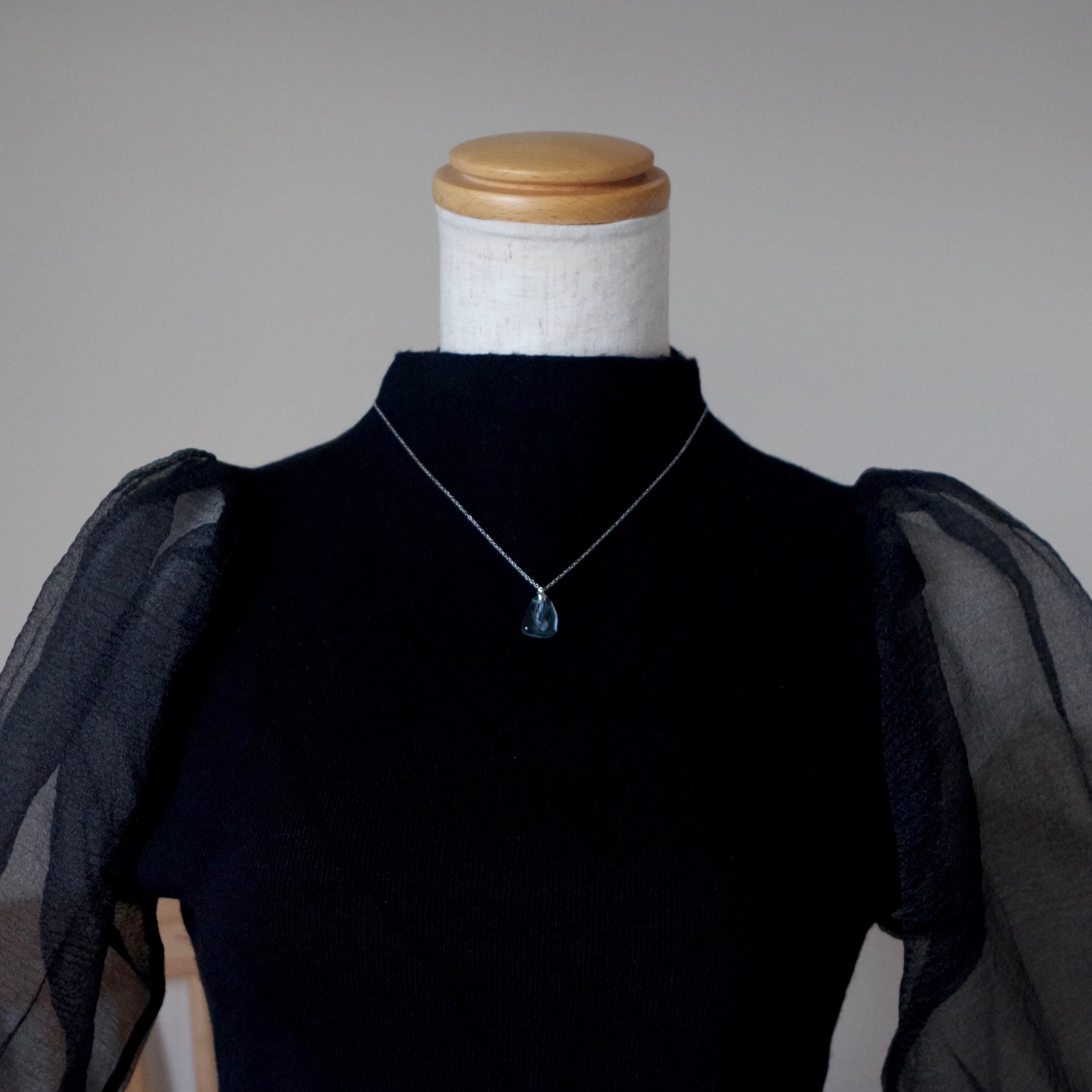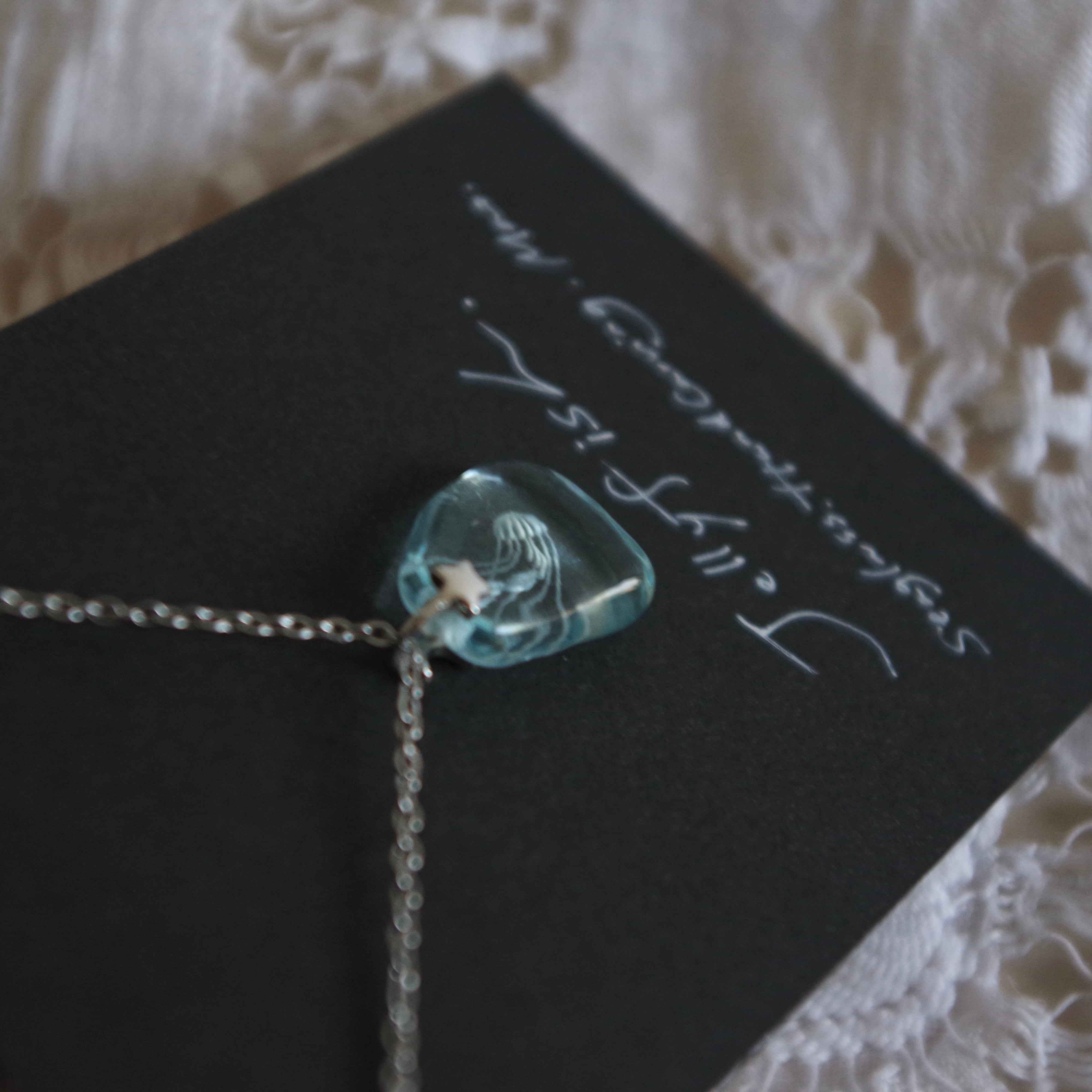 ネックレス クラゲ 海月 ブルー シーグラス ガラス ペンダントトップ インタリオ