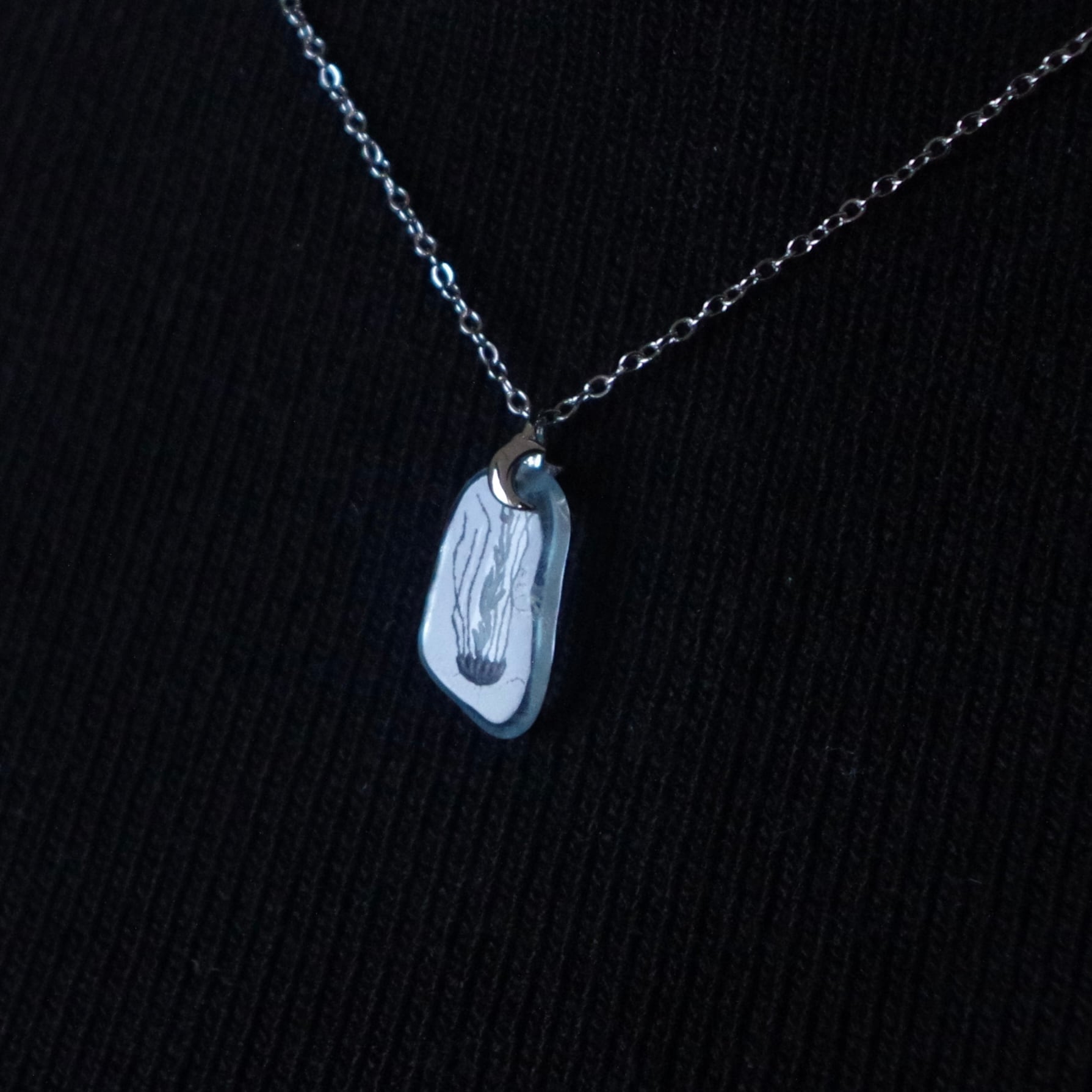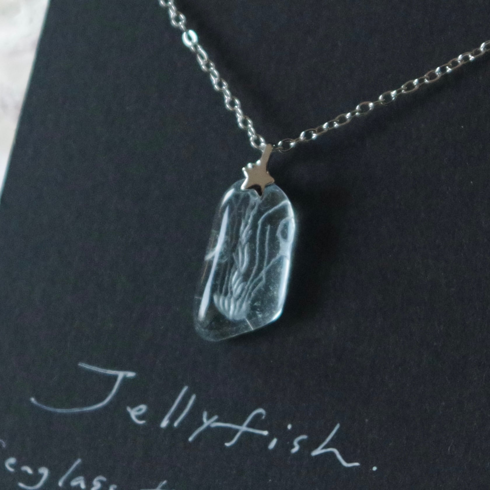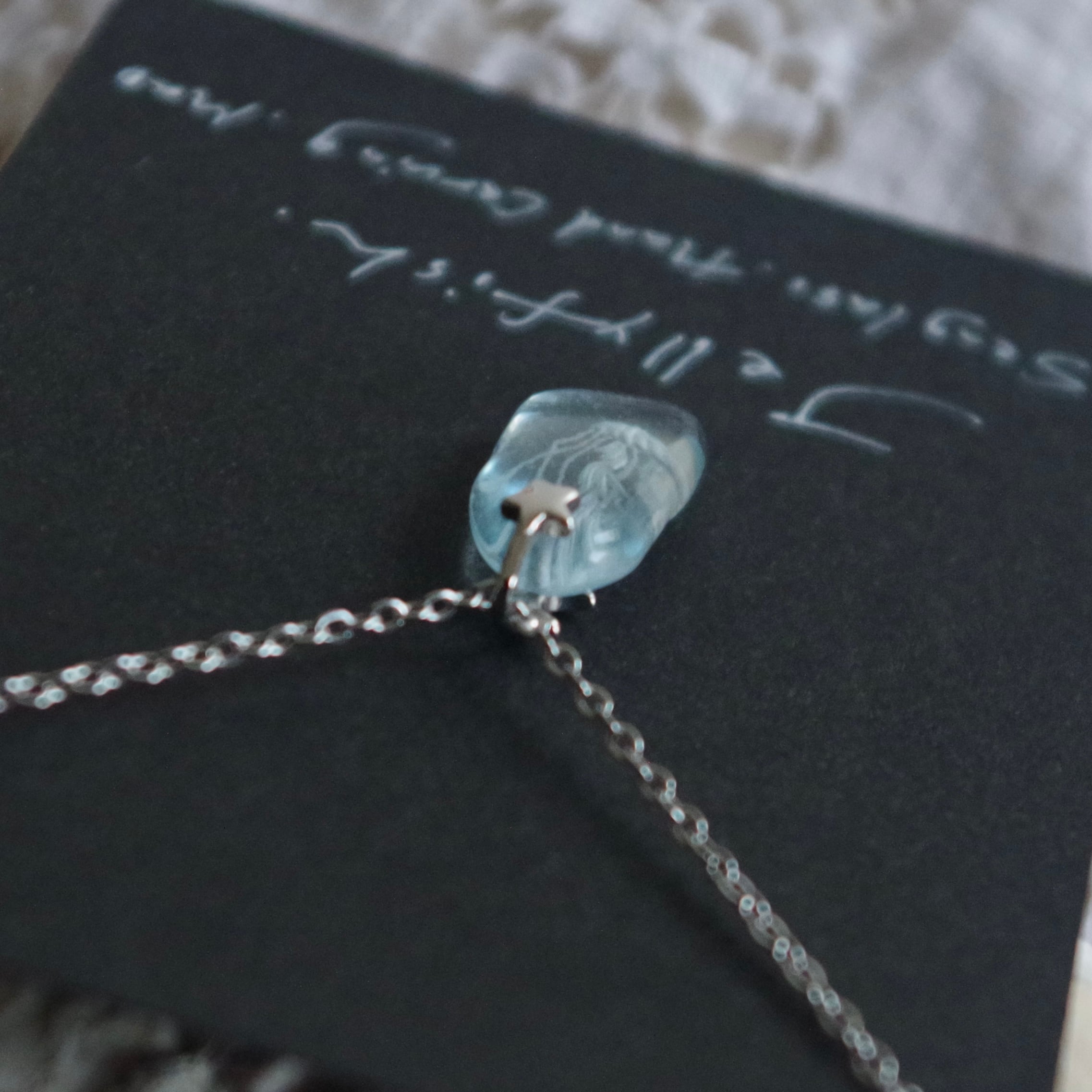ネックレス クラゲ ブルー シーグラス ガラス ペンダントトップ インタリオ