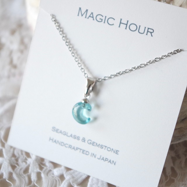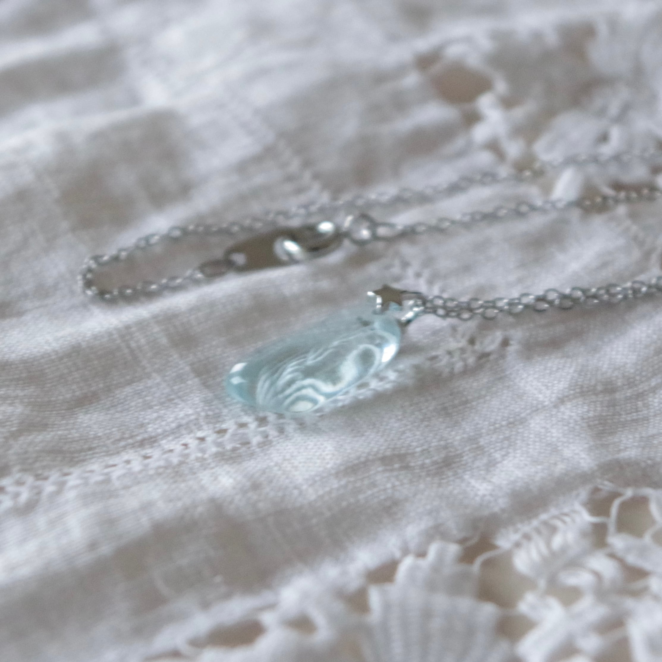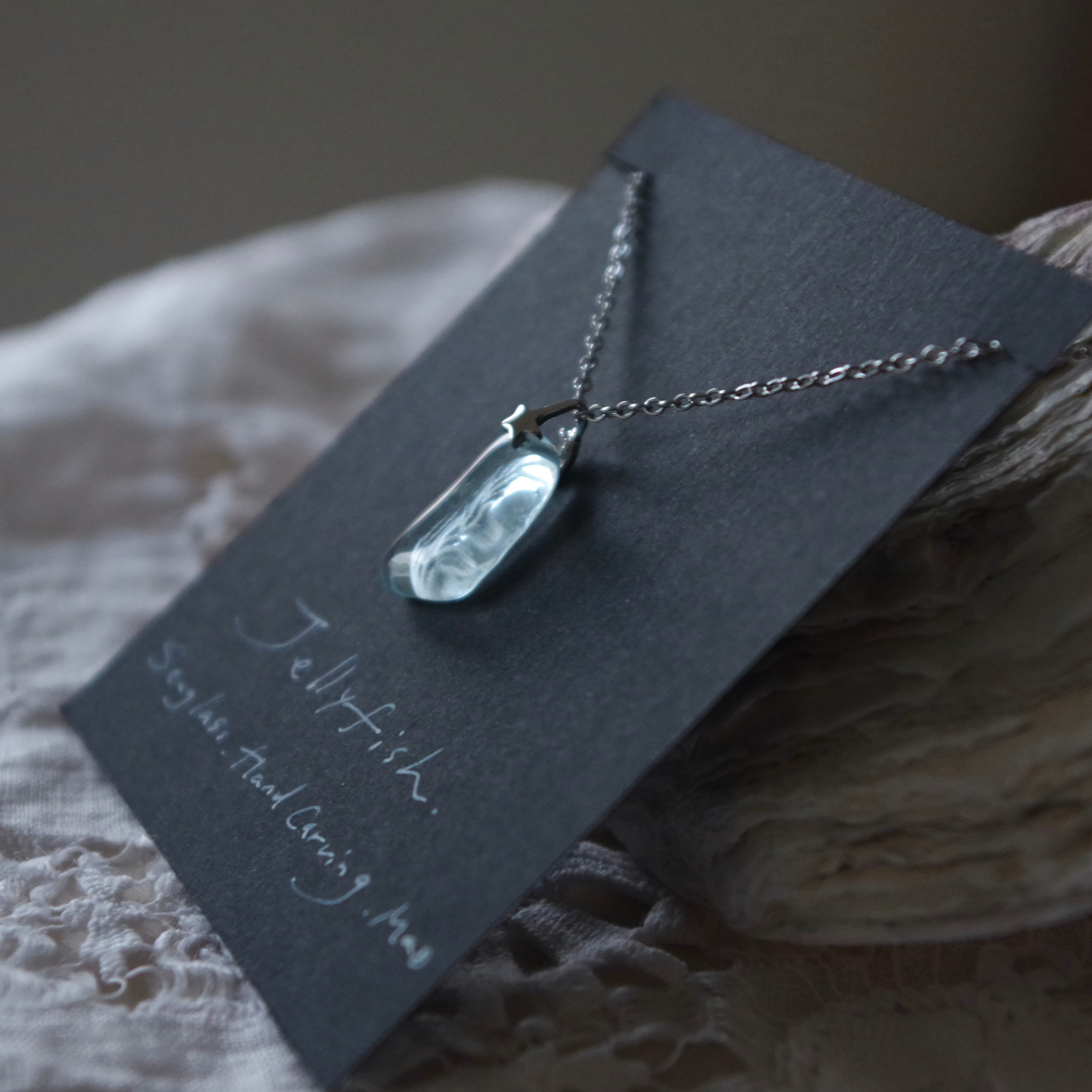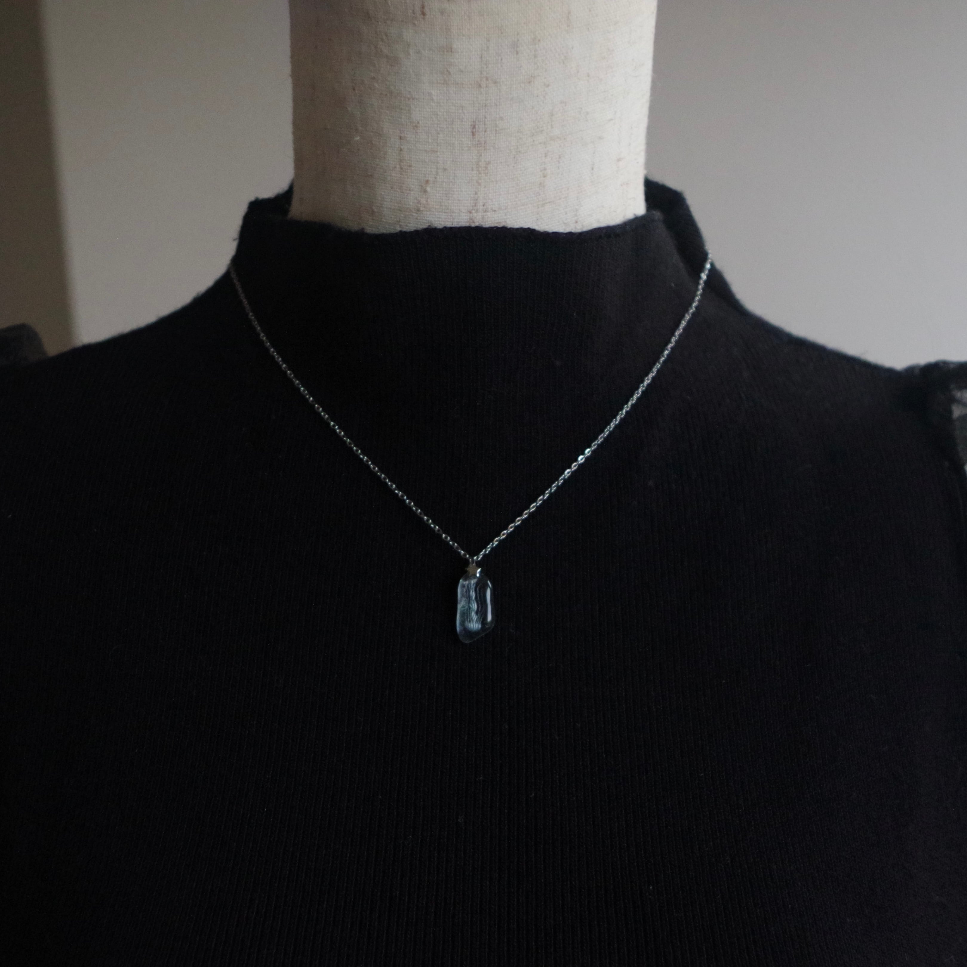 ネックレス クラゲ ブルー シーグラス ガラス ペンダントトップ インタリオ