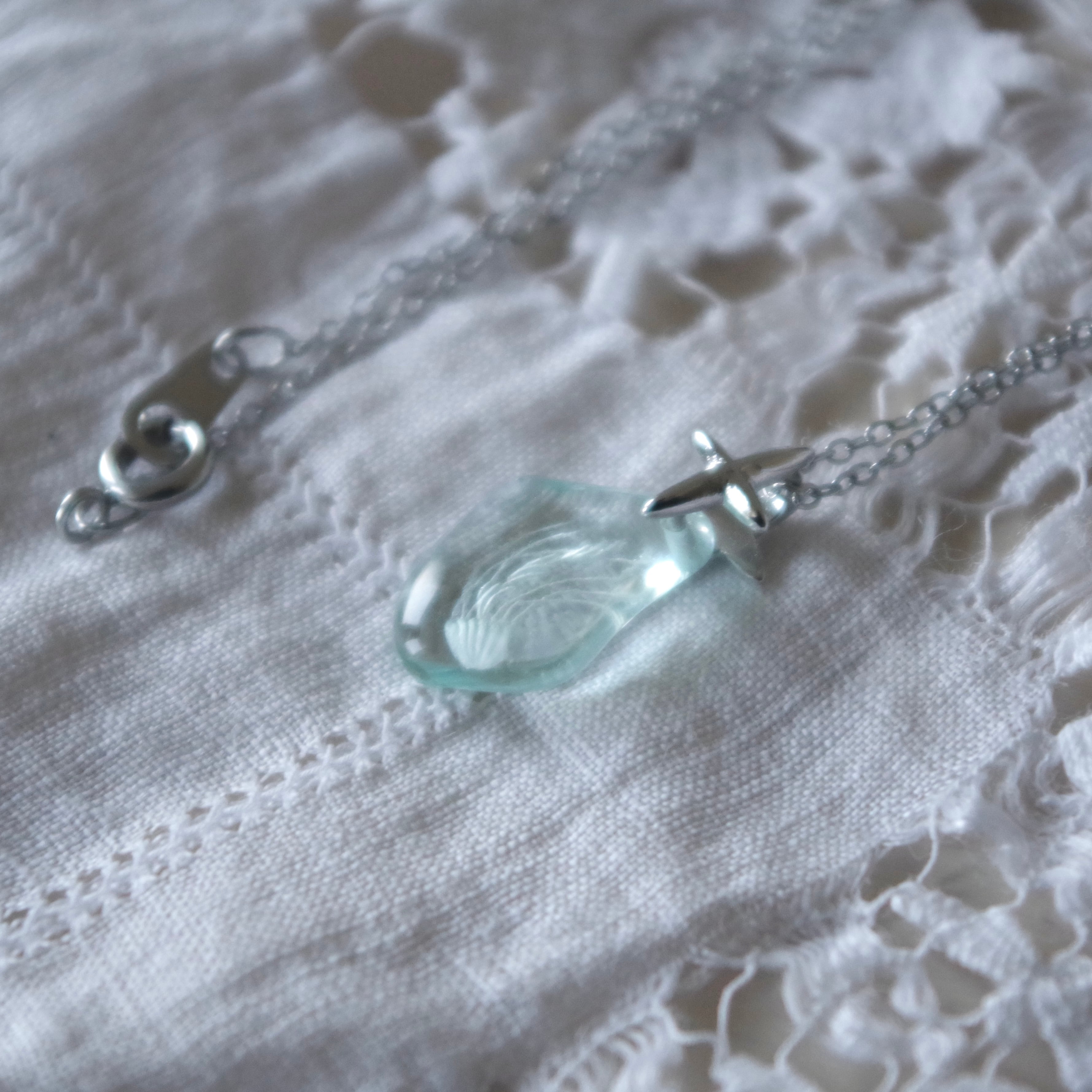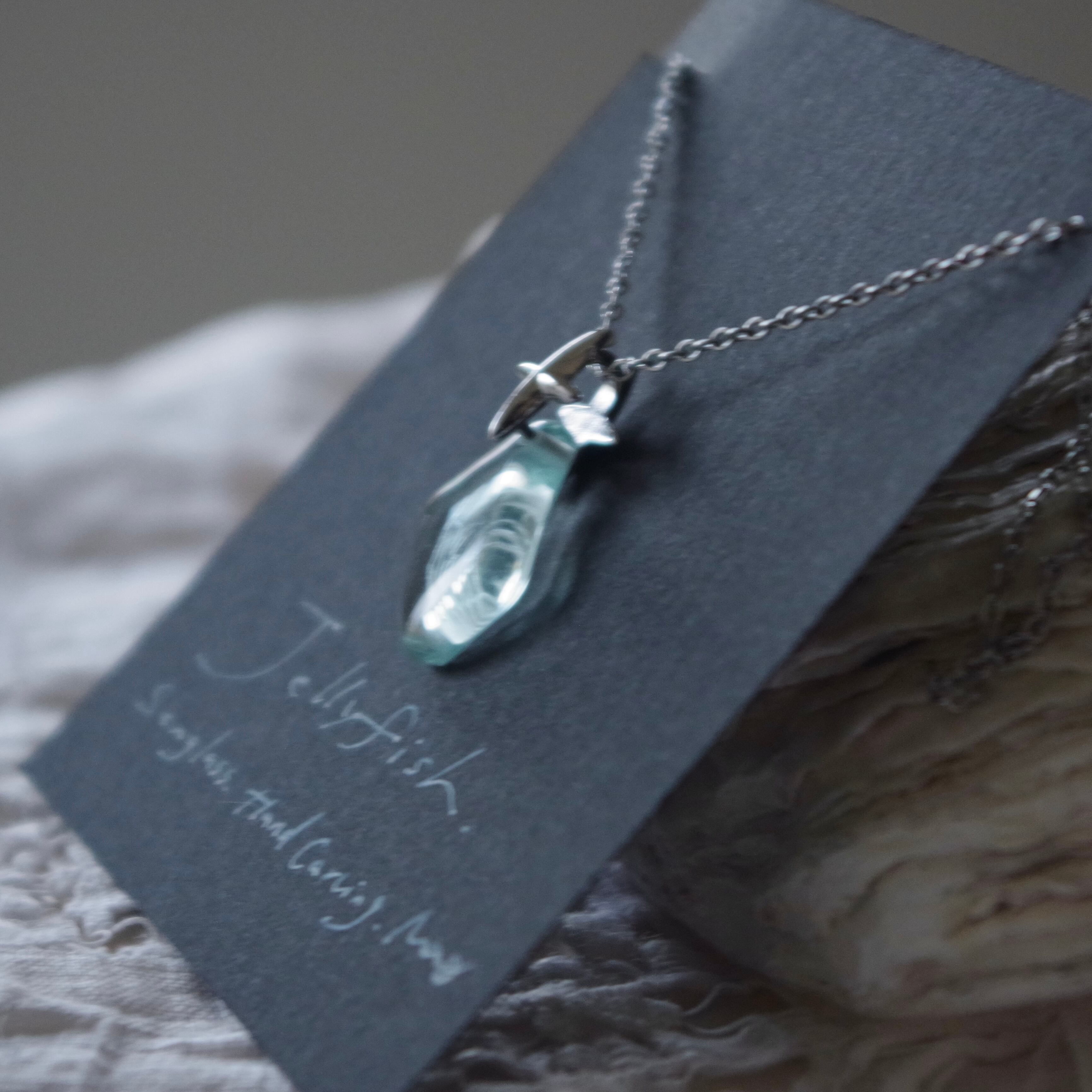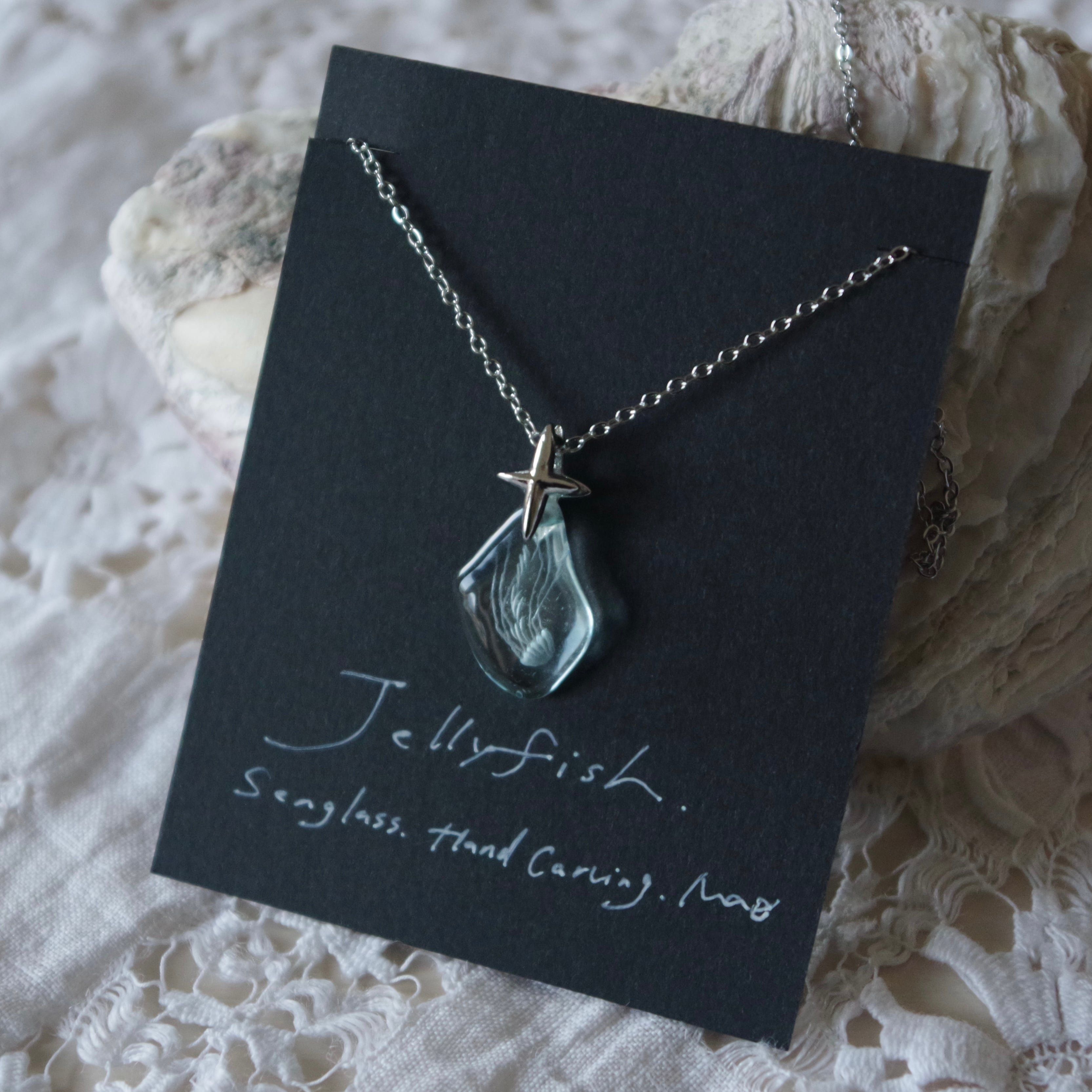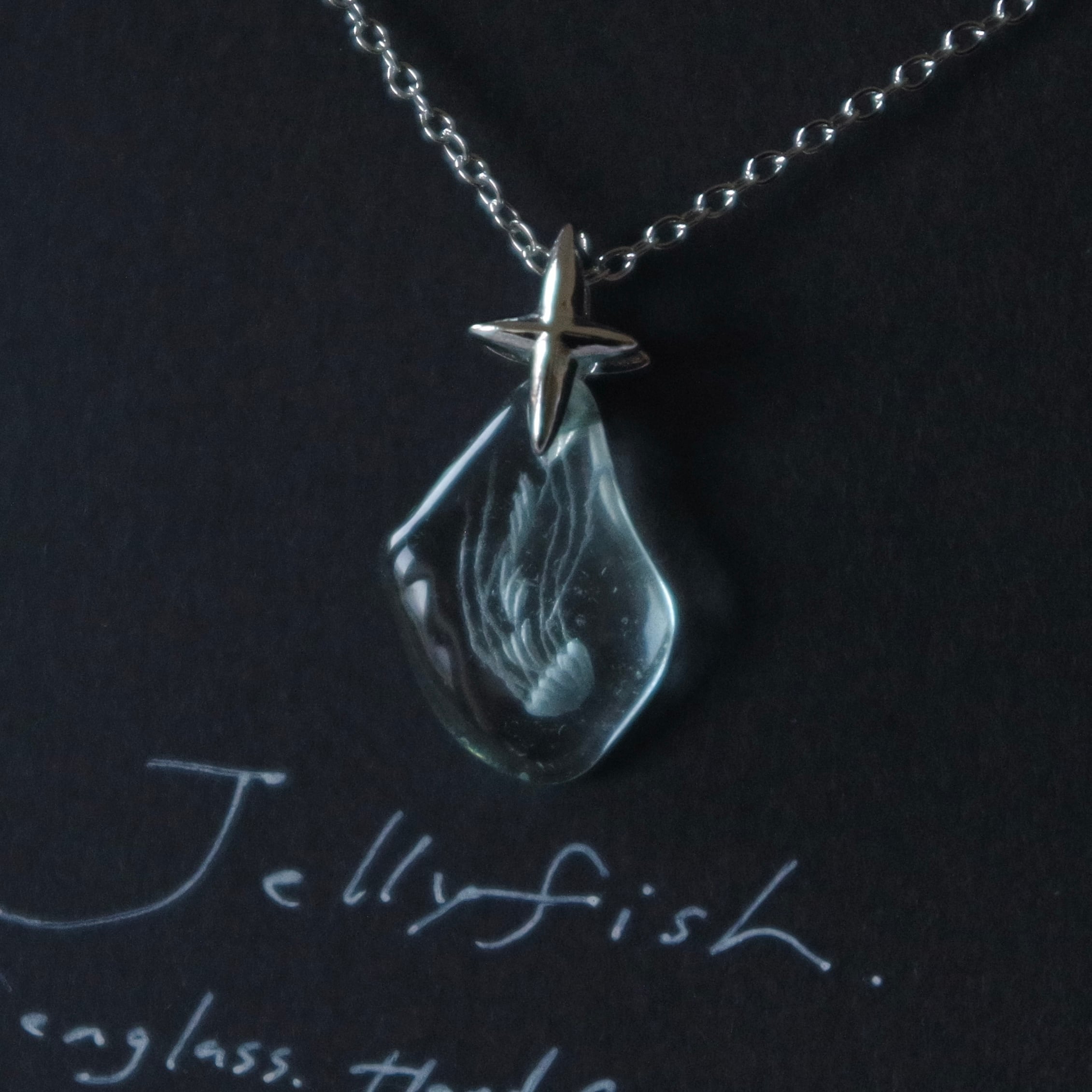 ネックレス クラゲ ブルー シーグラス ガラス ペンダントトップ インタリオ