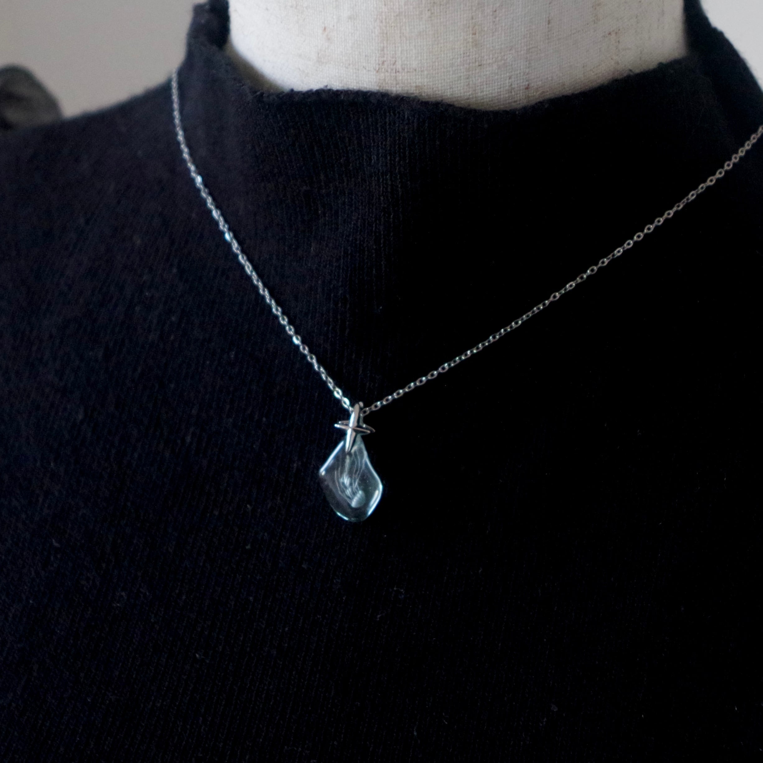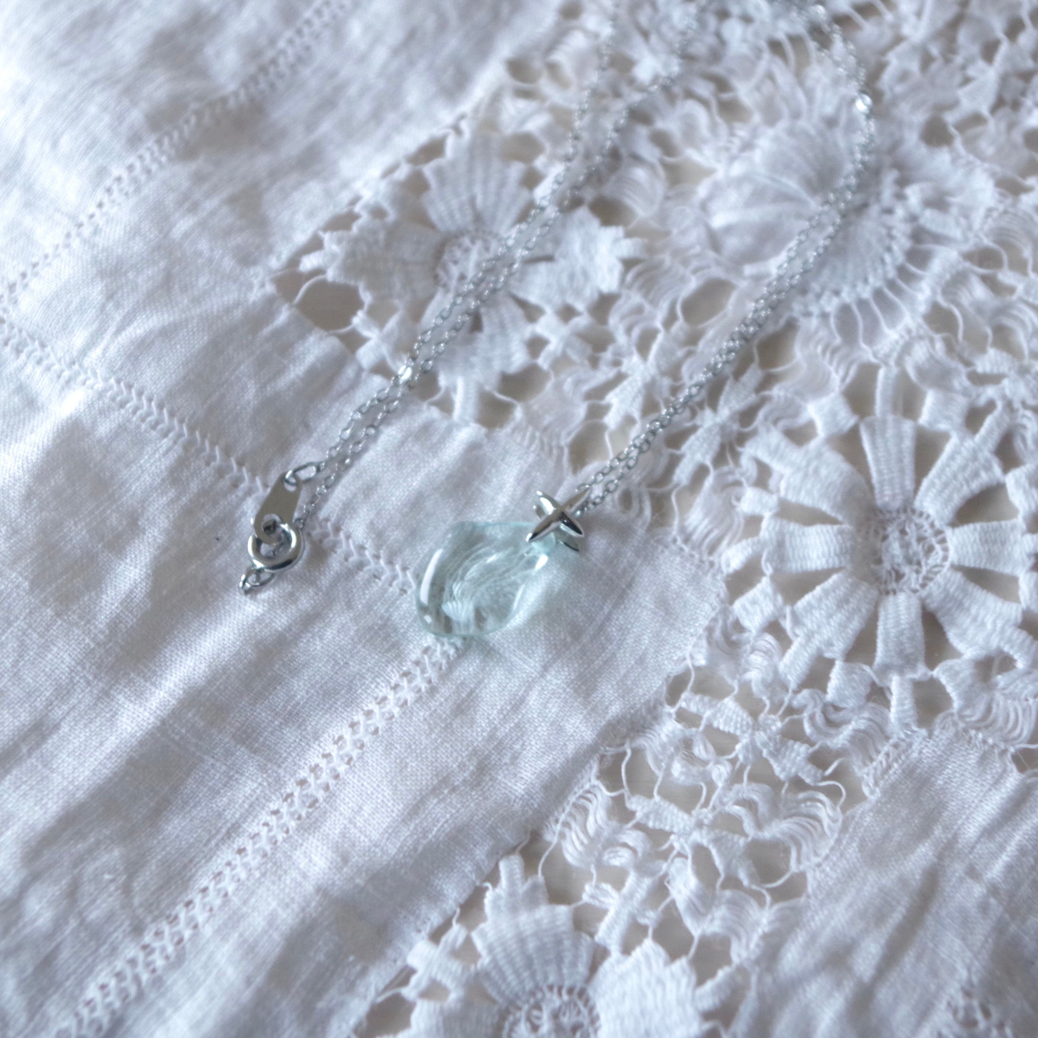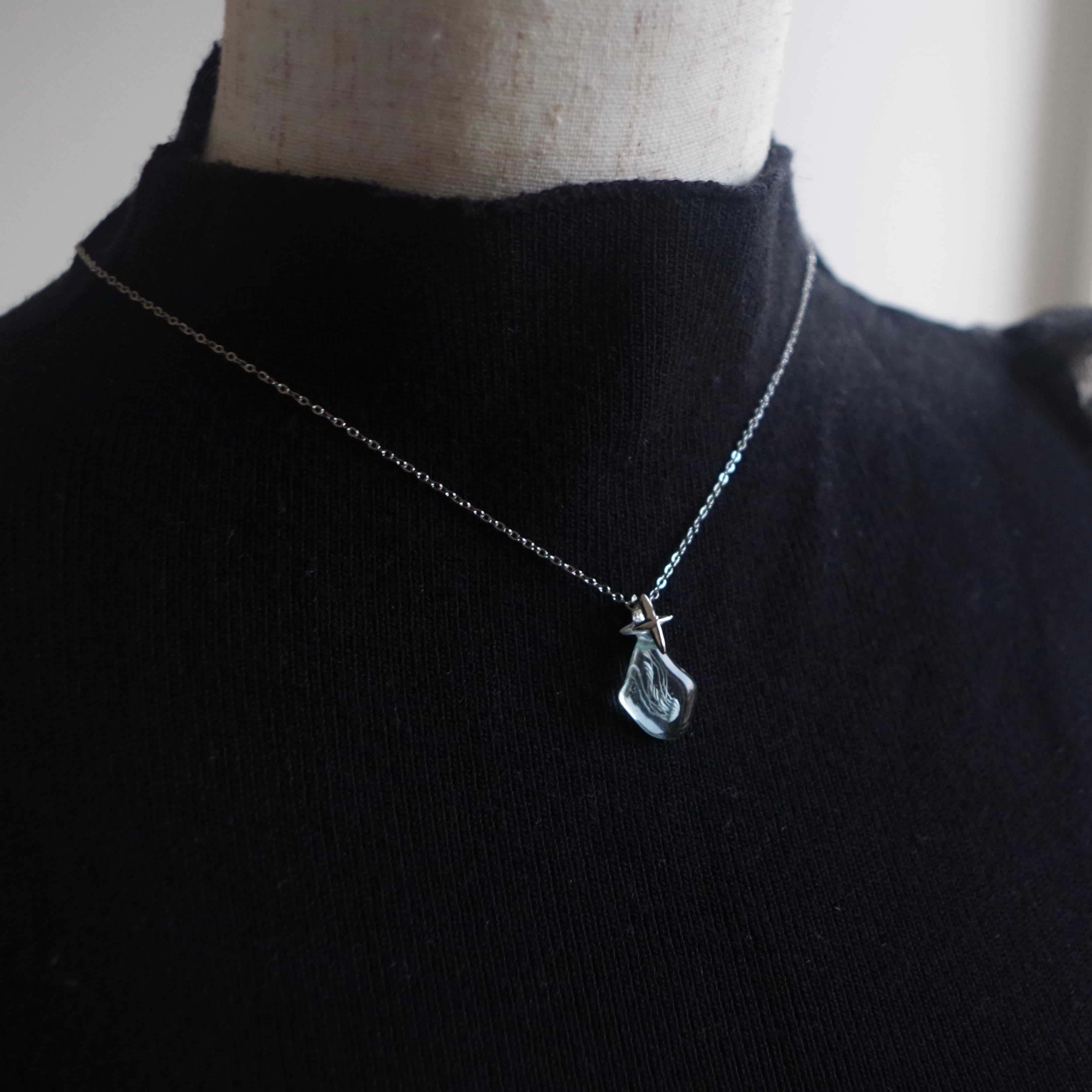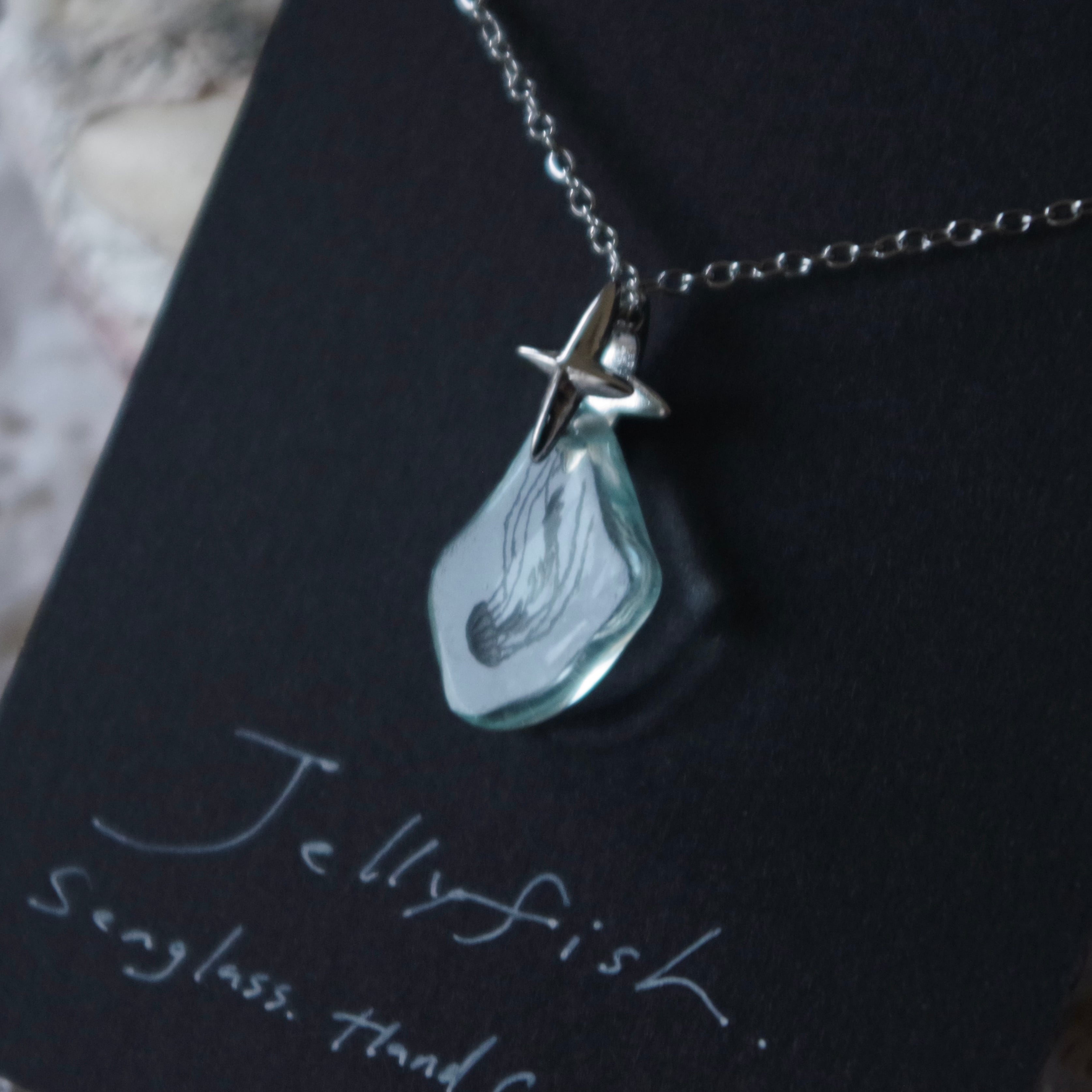 ネックレス クラゲ ブルー シーグラス ガラス ペンダントトップ インタリオ