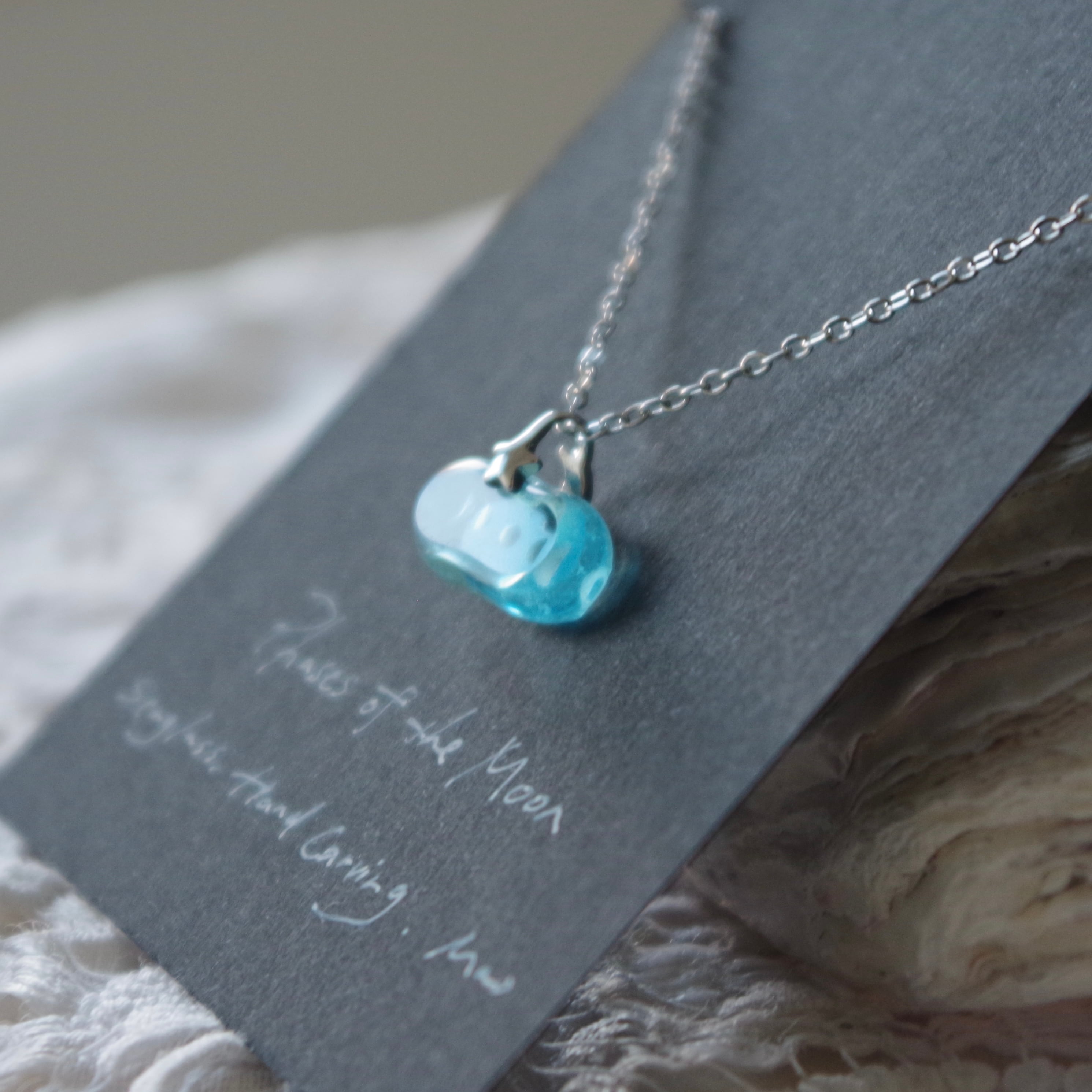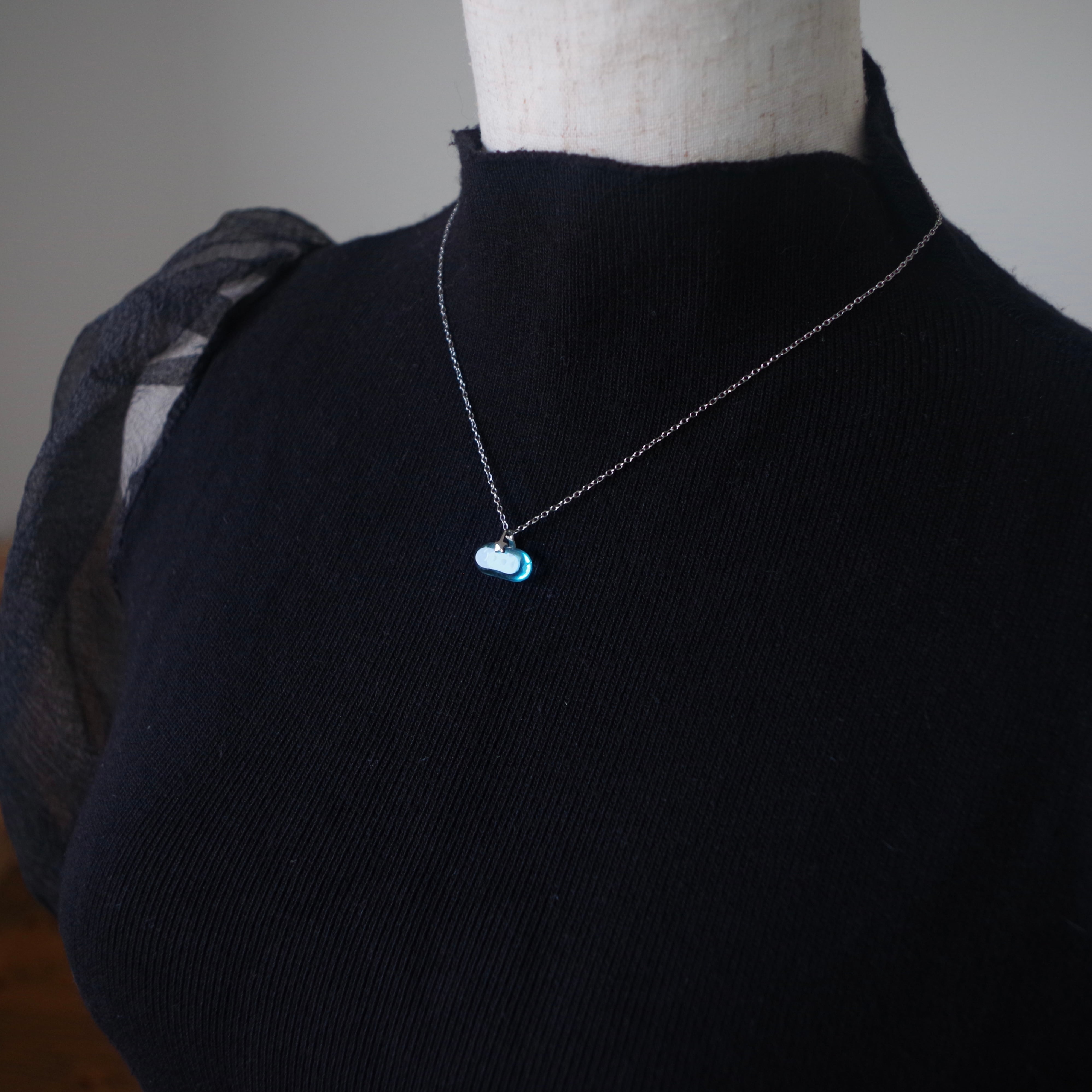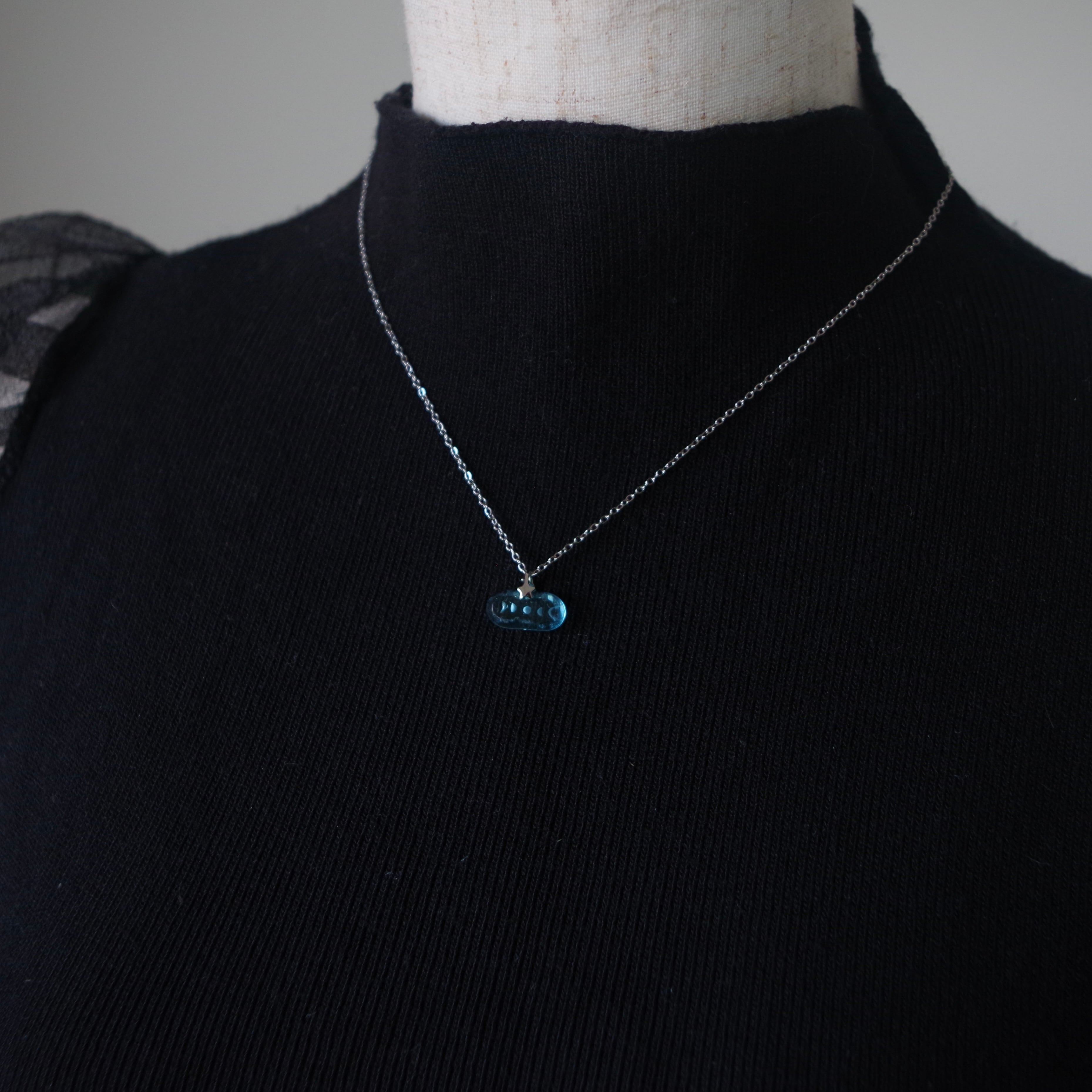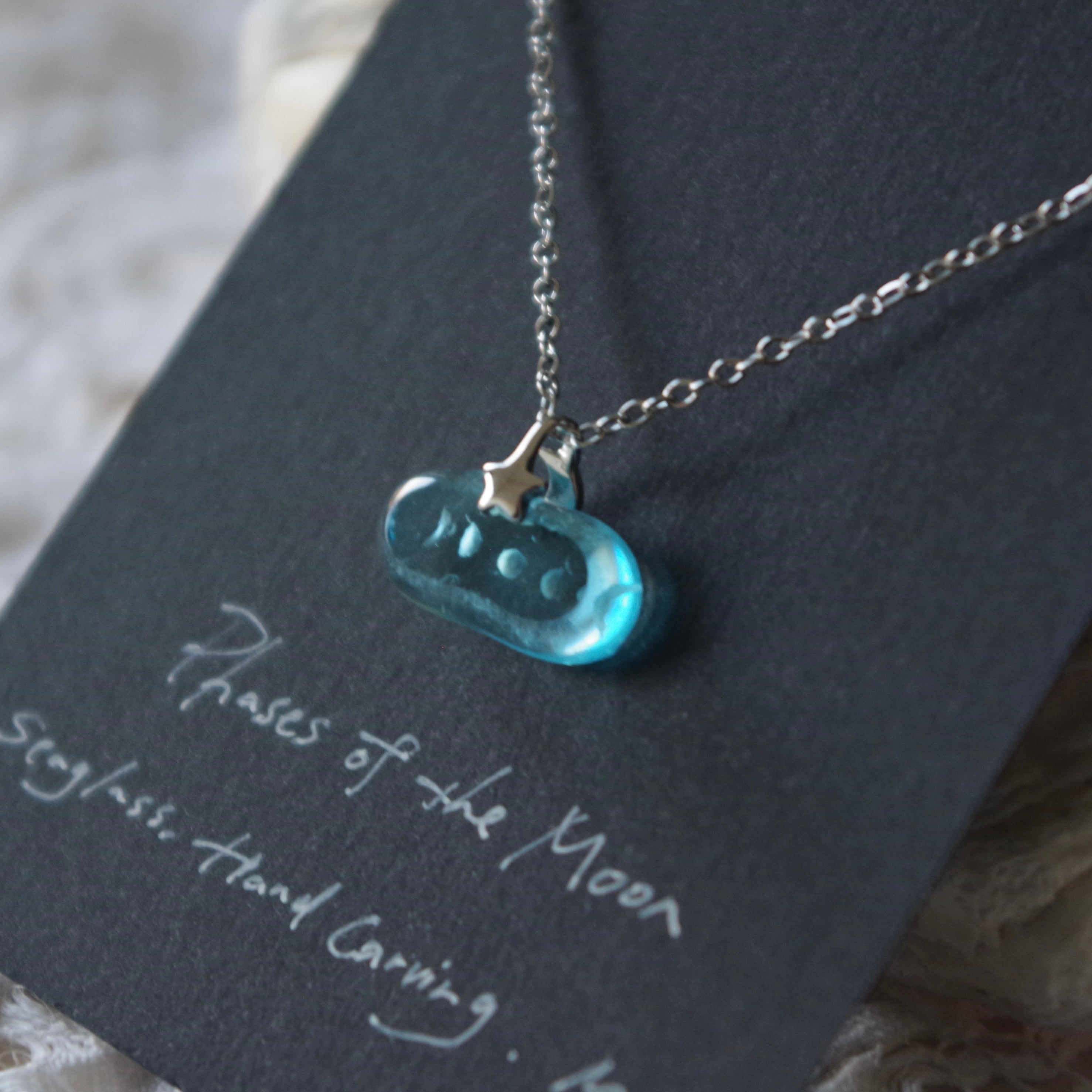 ネックレス 月 三日月 満月 ブルー シーグラス ガラス ペンダントトップ インタリオ