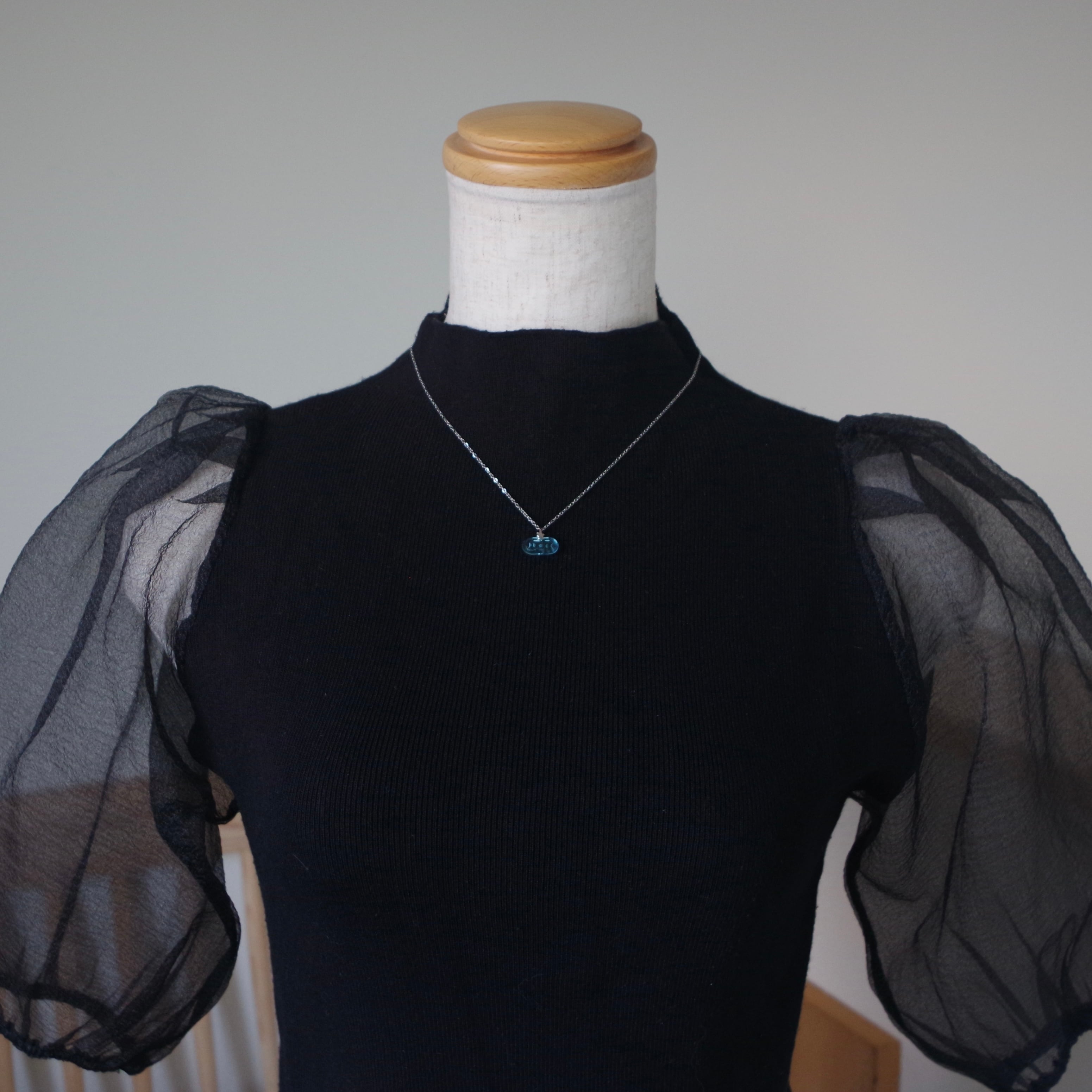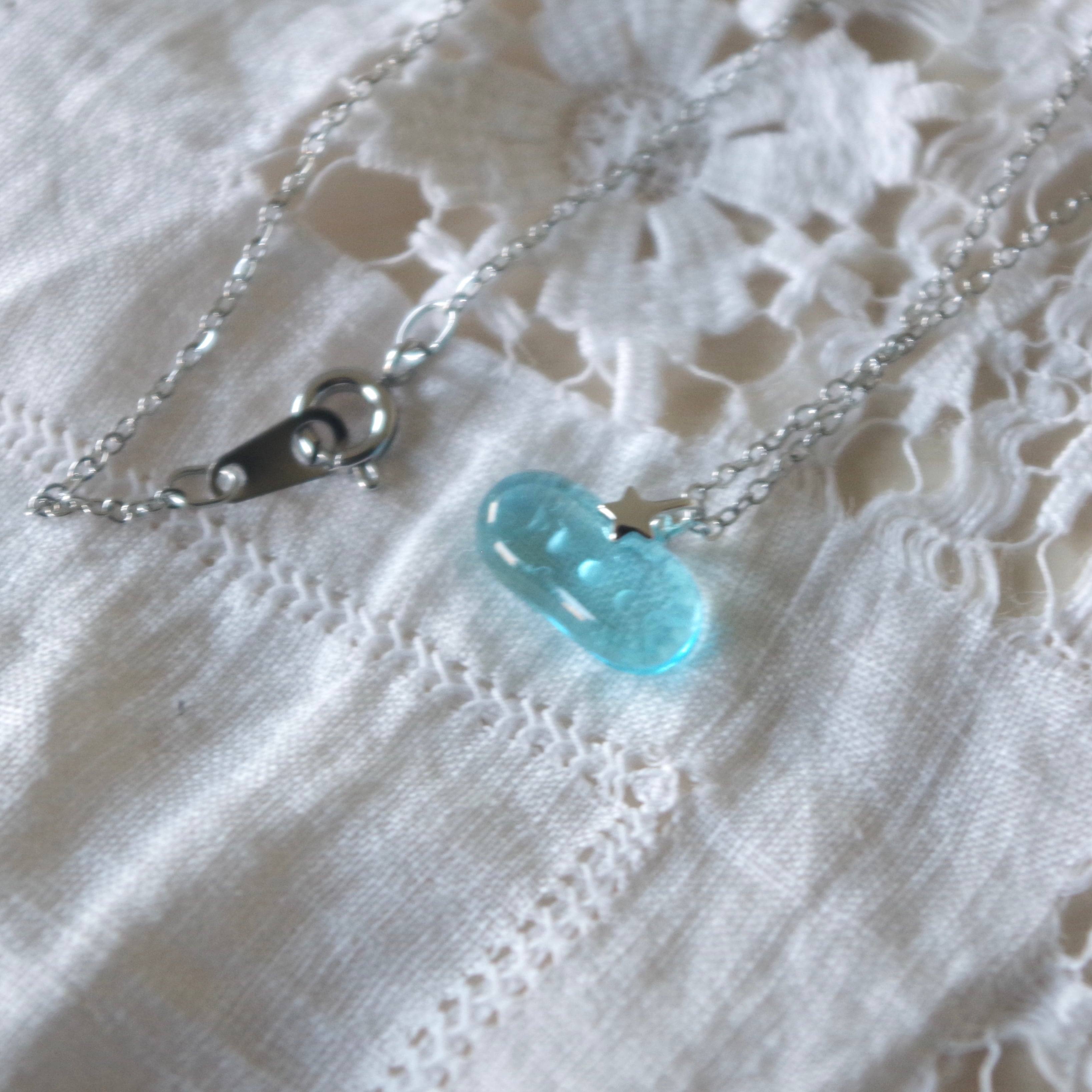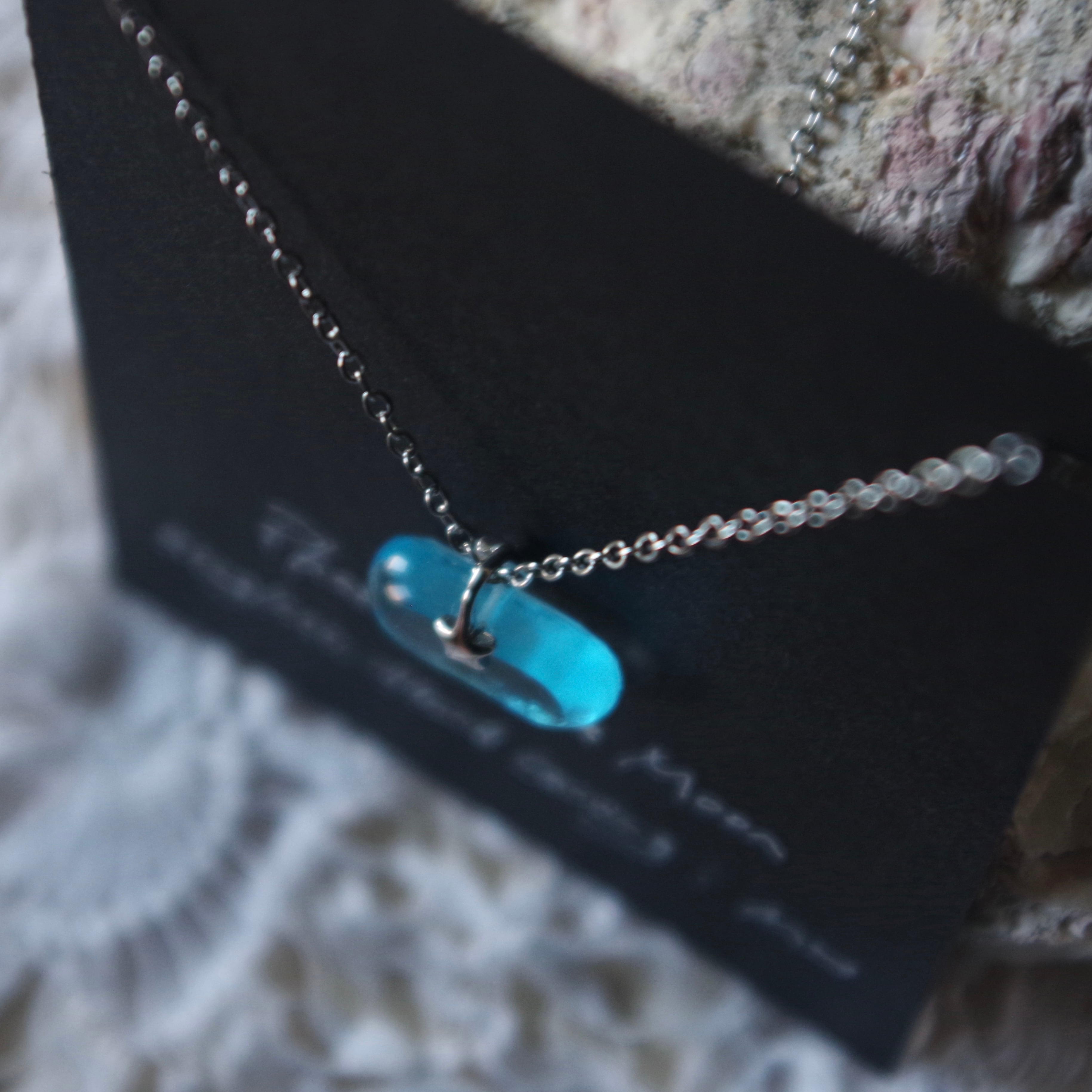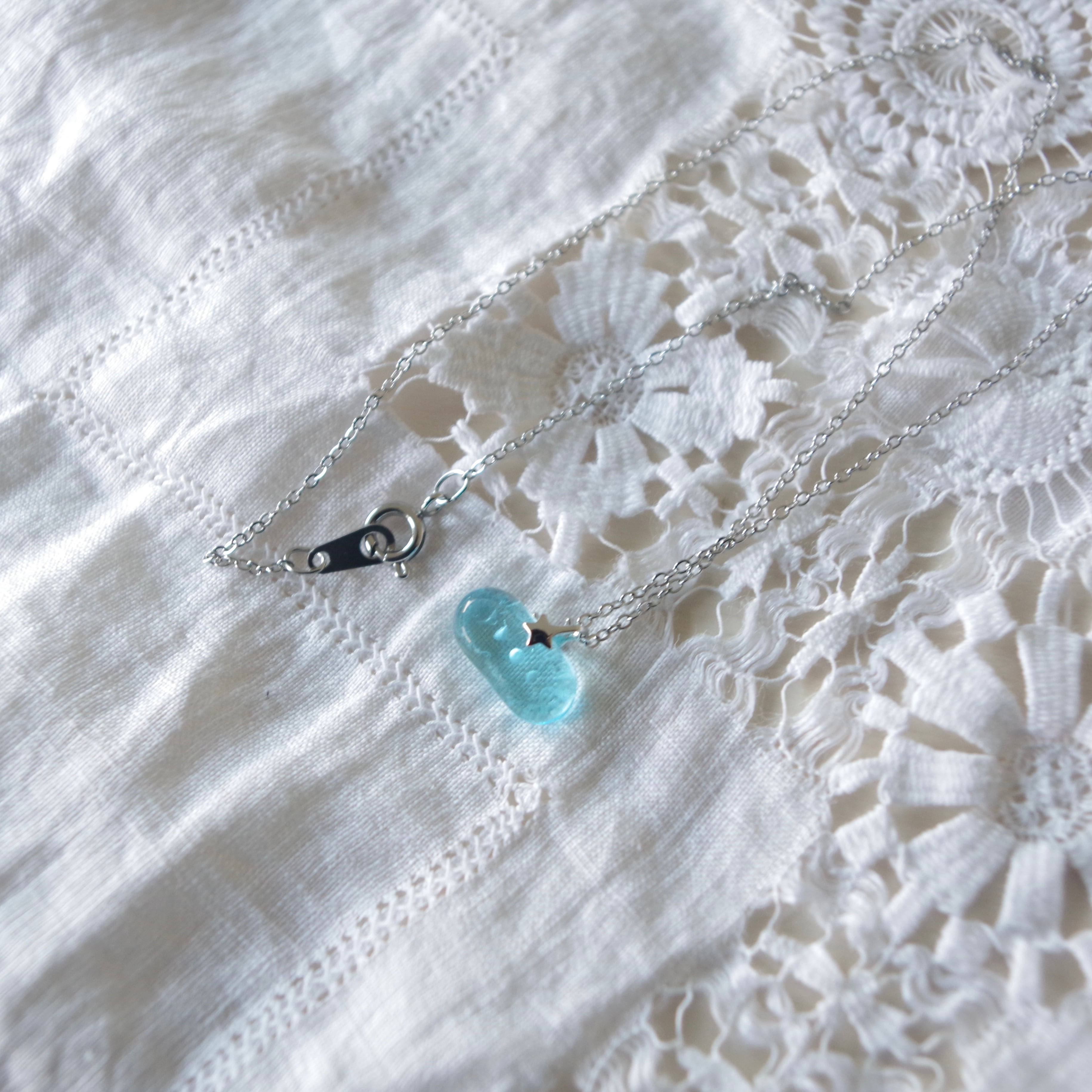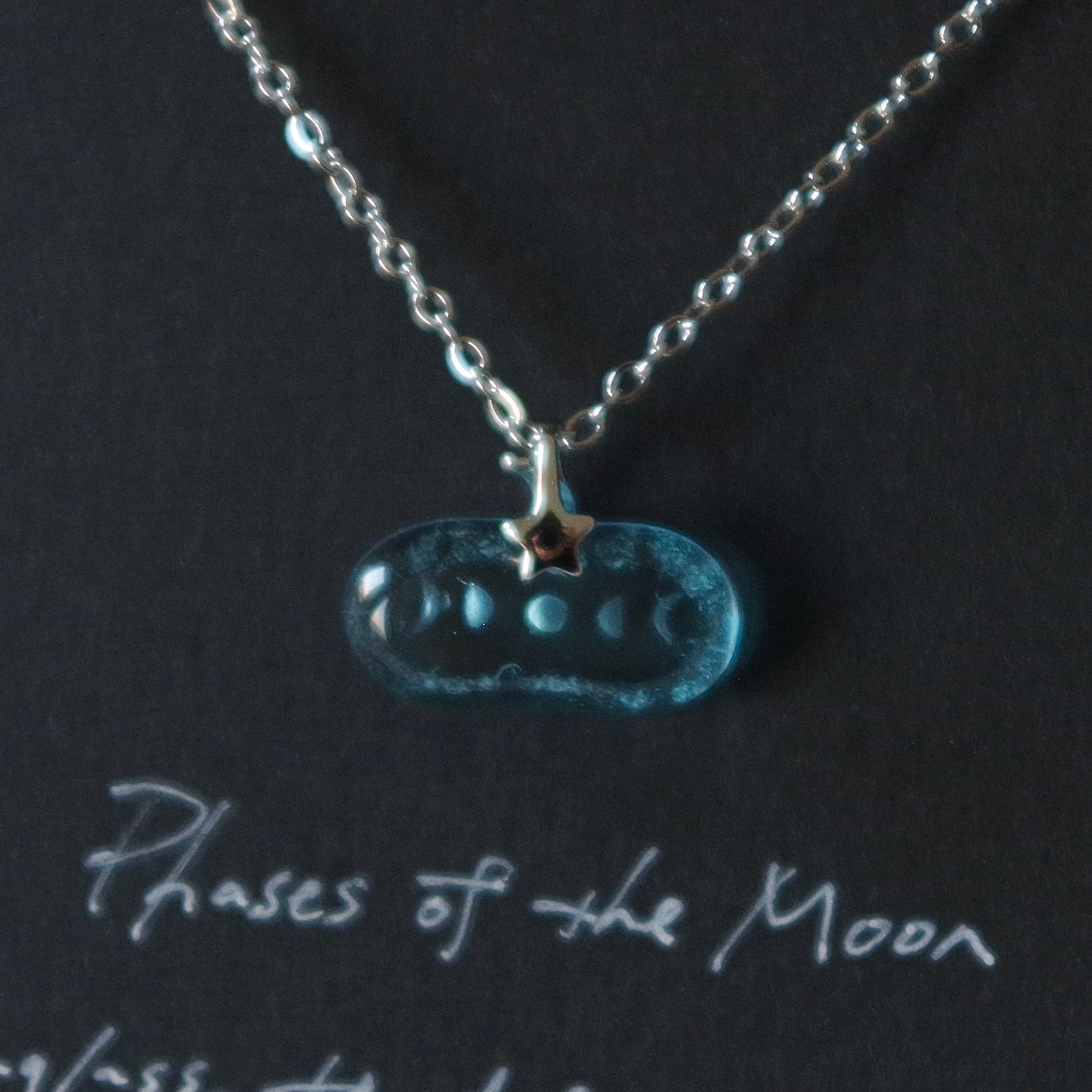 ネックレス 月 三日月 満月 ブルー シーグラス ガラス ペンダントトップ インタリオ