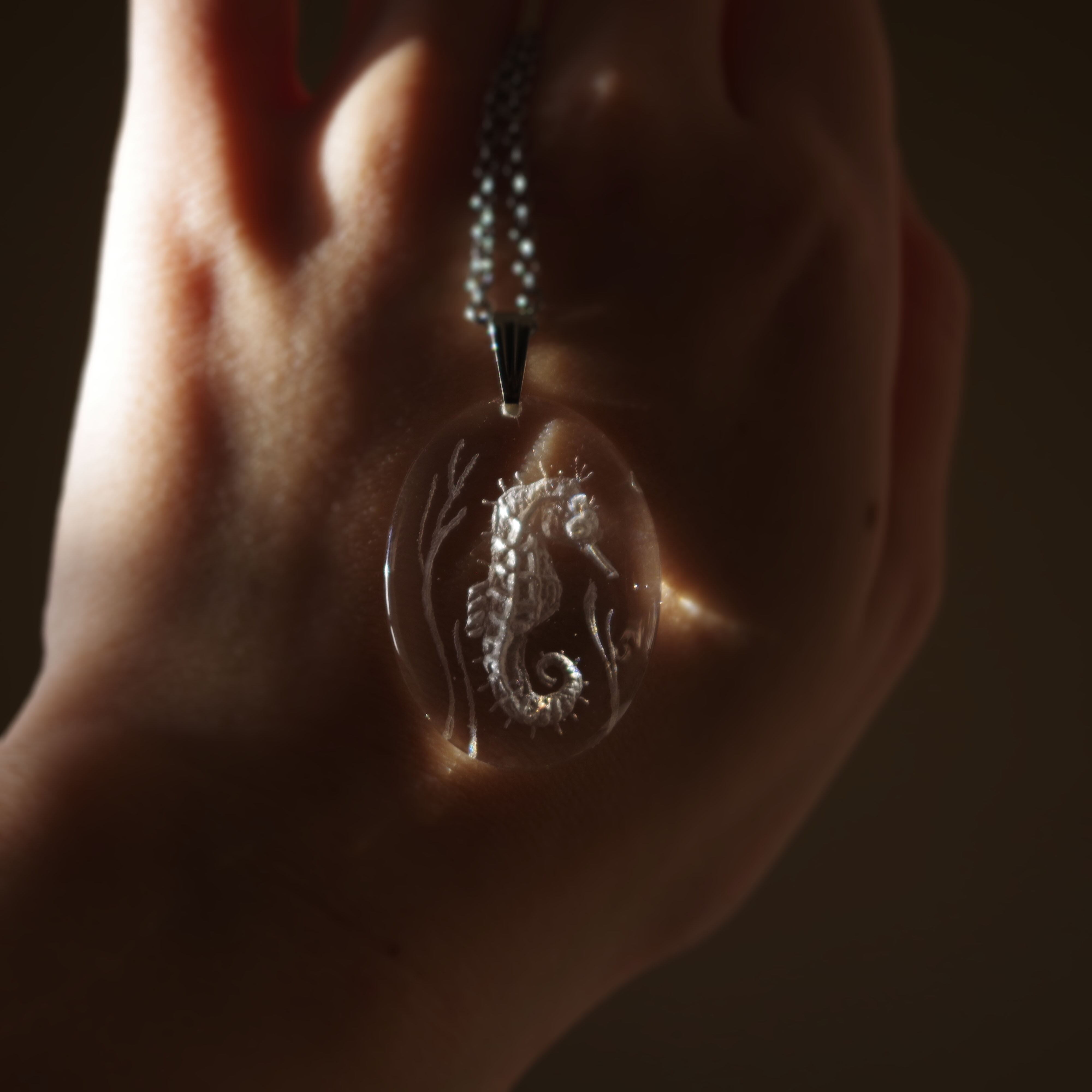 手彫りのインタリオ【タツノオトシゴ】ペンダント 受注生産
