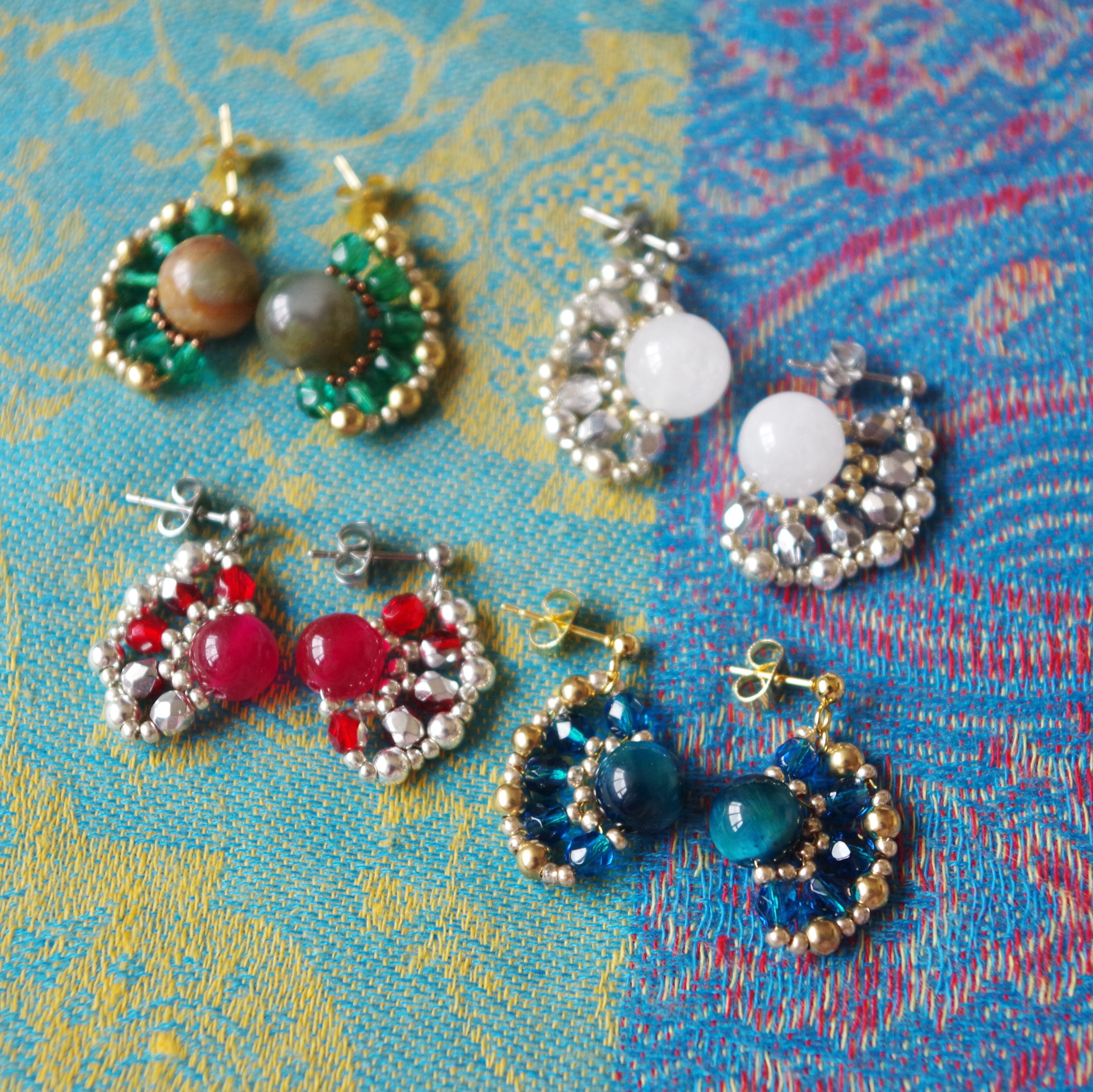 豊かな自然と美しい文化で知られるバリ島をテーマに、リゾート気分が高まるビーズピアスを編み上げました。