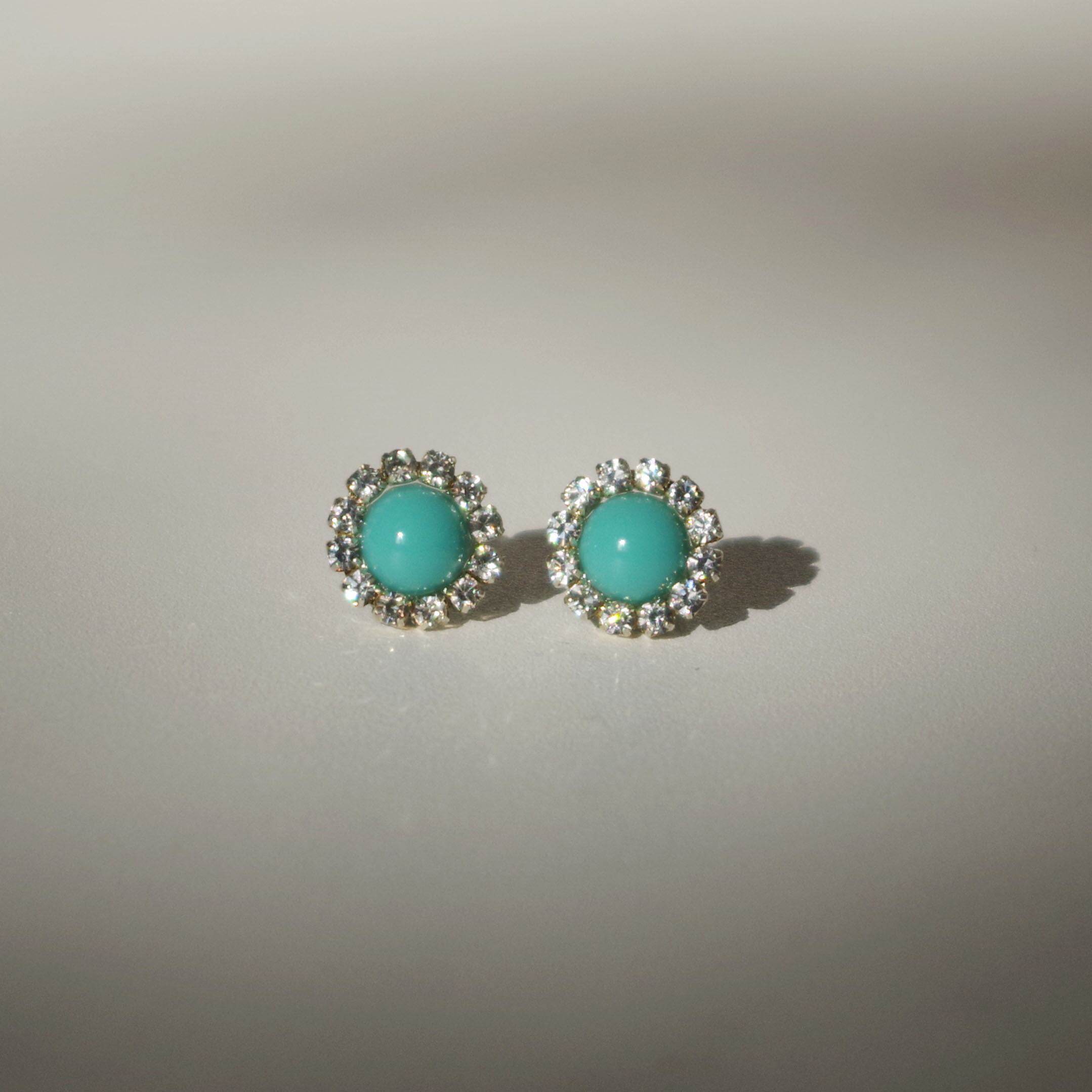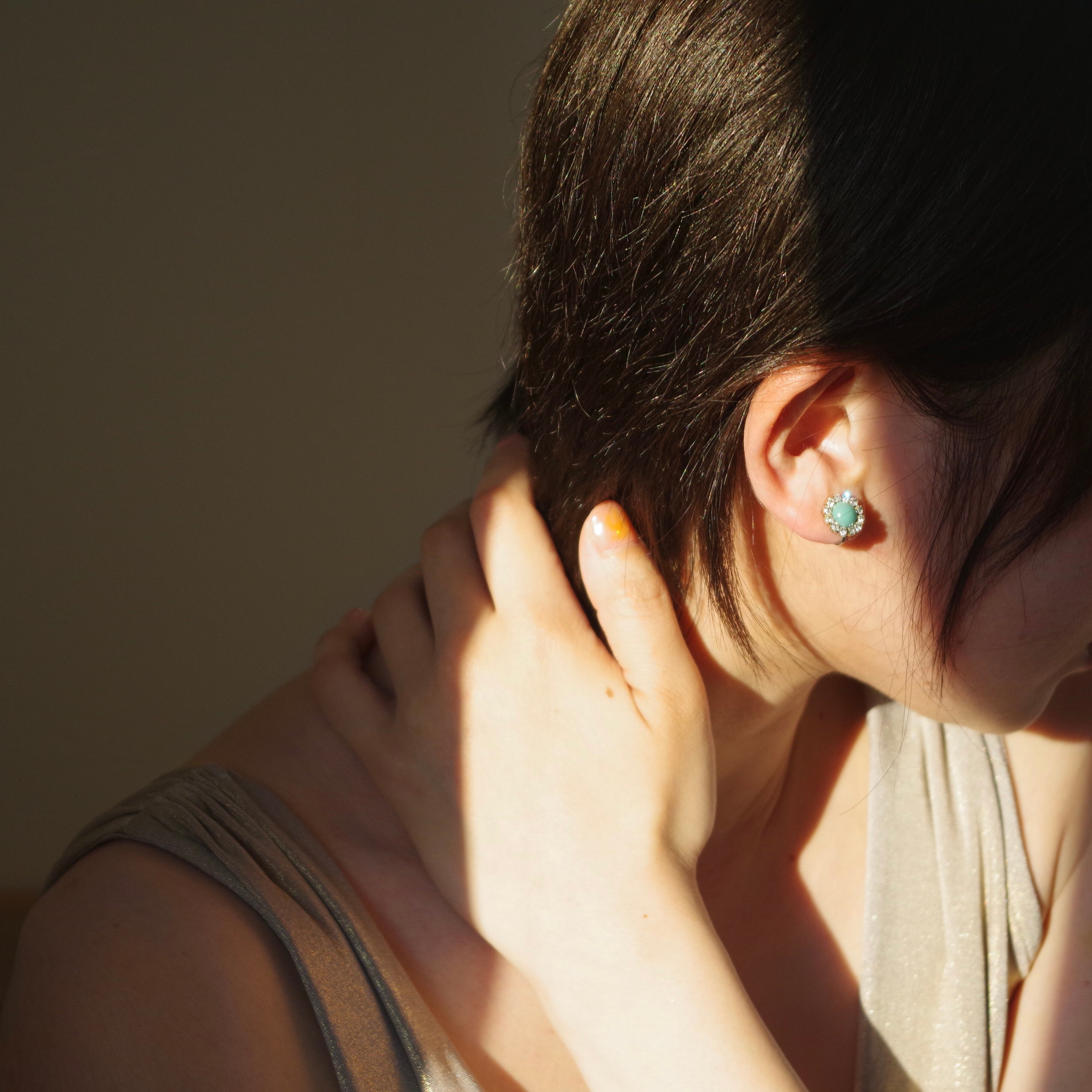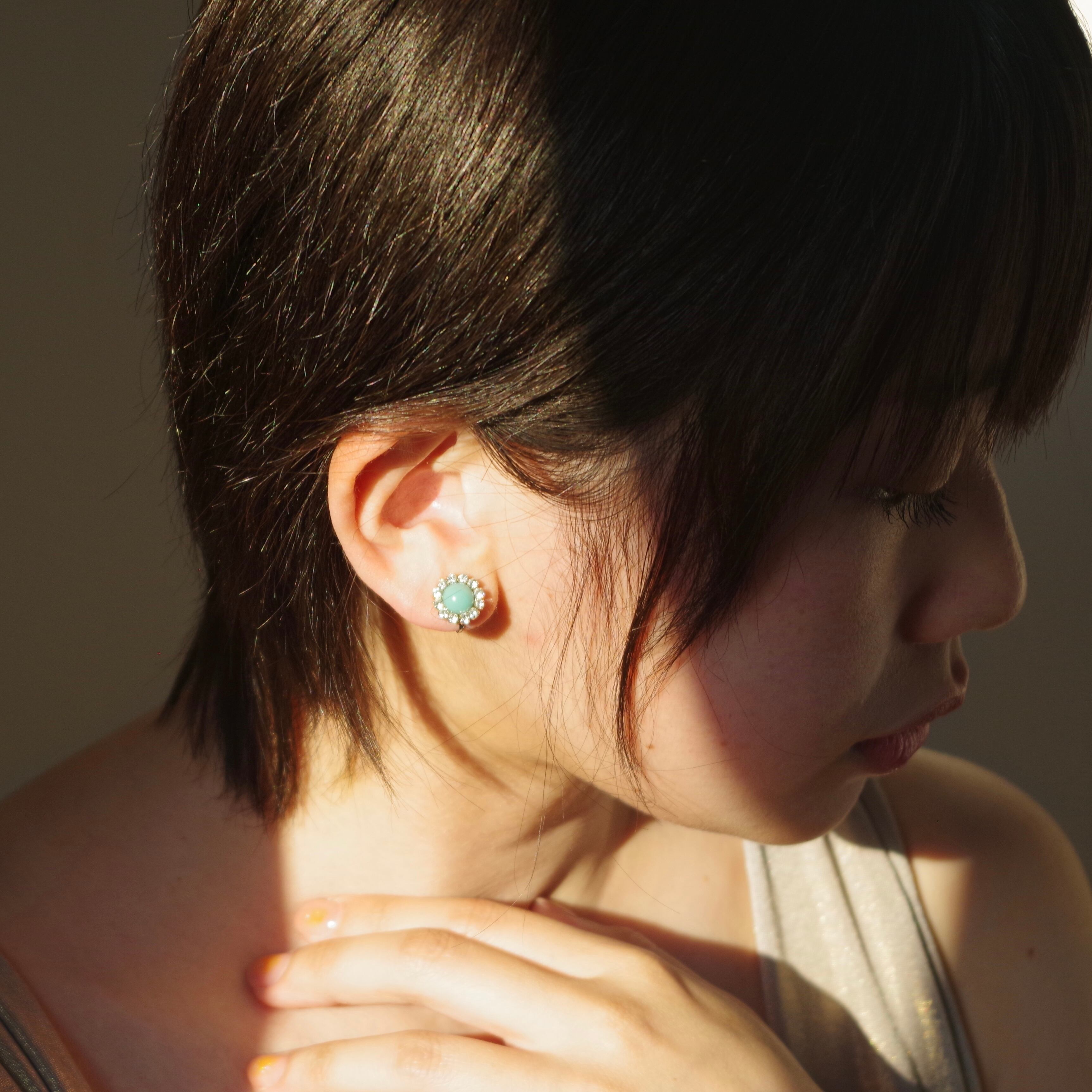 イヤリング ピアス グリーン 青緑 緑 アクアグリーン シンプル シルバー プチギフト オケージョン お呼ばれ ウェディング 女子会 大人 花 フラワー 小さい 小ぶり小さめ キラキラ ビジュー 大人かわいい 垢抜け 普段使い ランチ アクセサリー ヴィンテージ 派手色 華やか 涼しげ 夏 ビーチ