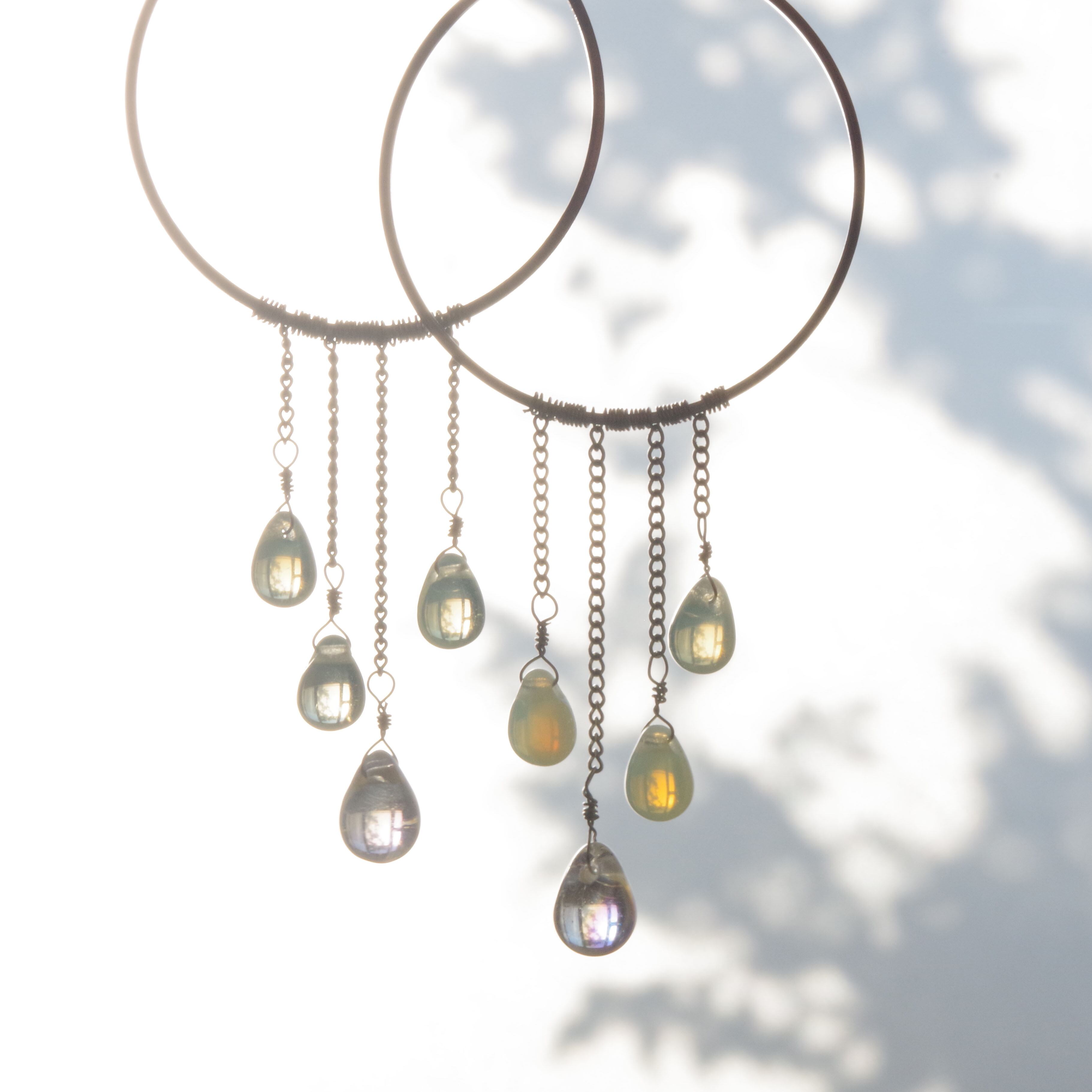 陽の当たるところに飾っておきたくなるような、風に揺れる不思議な色味のイヤリング。