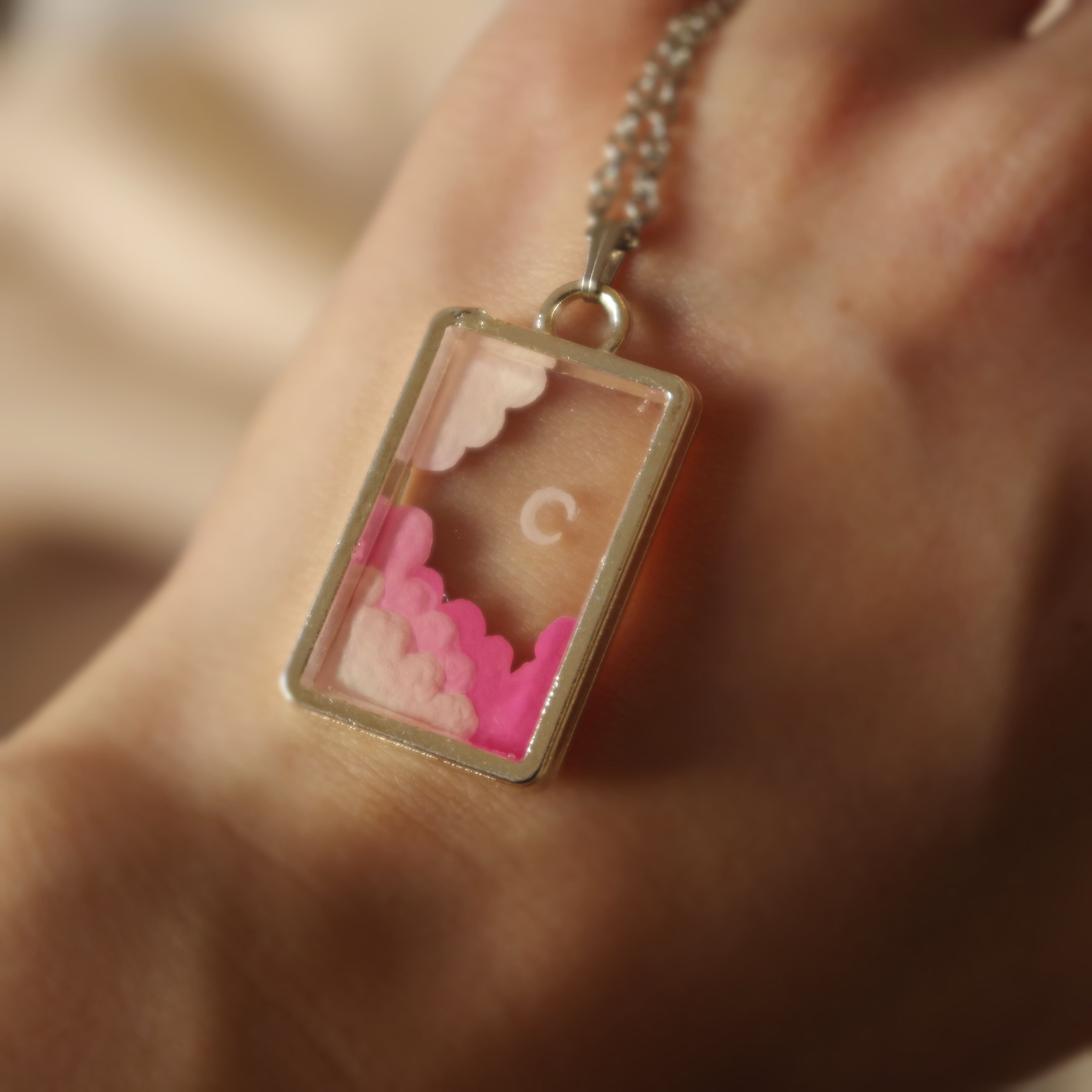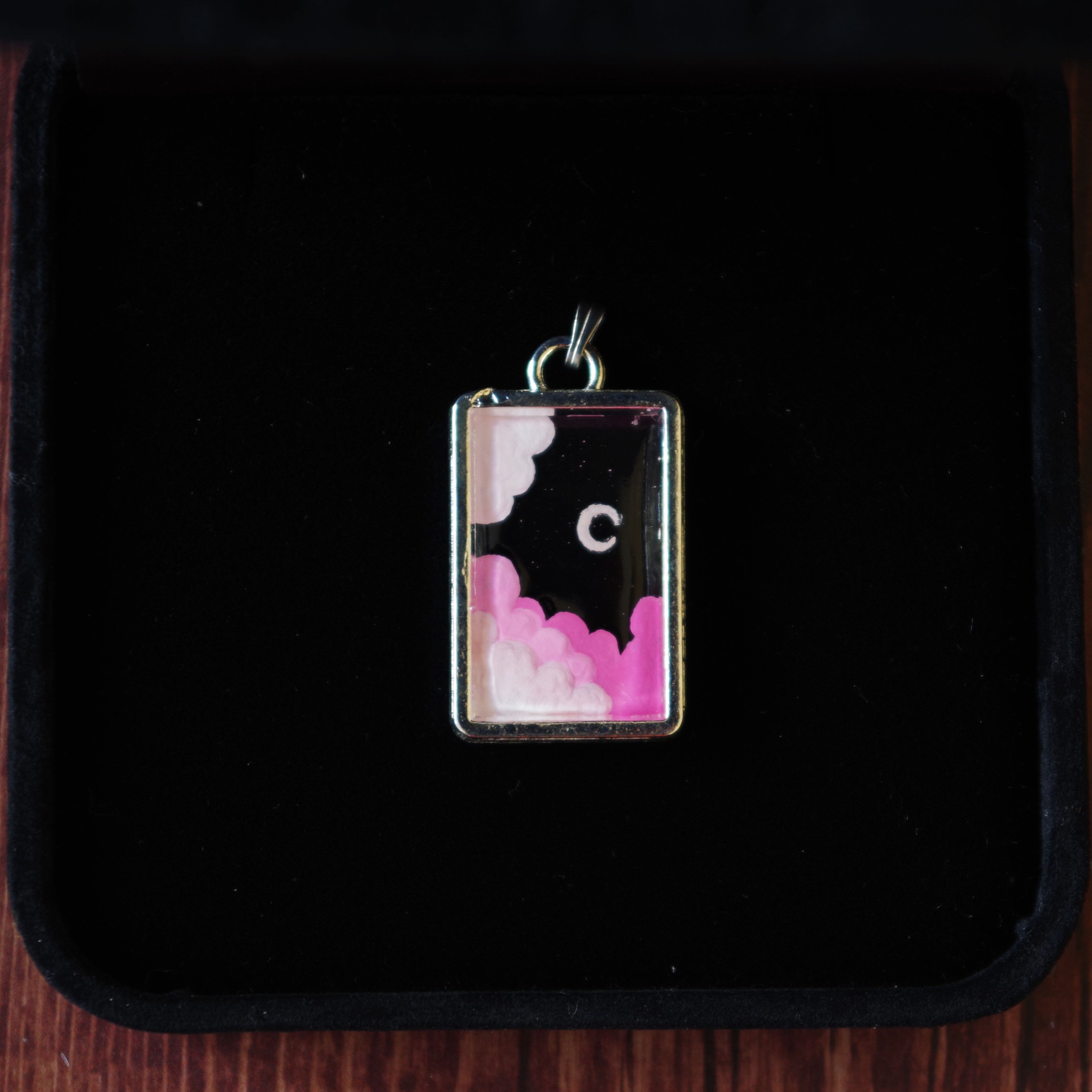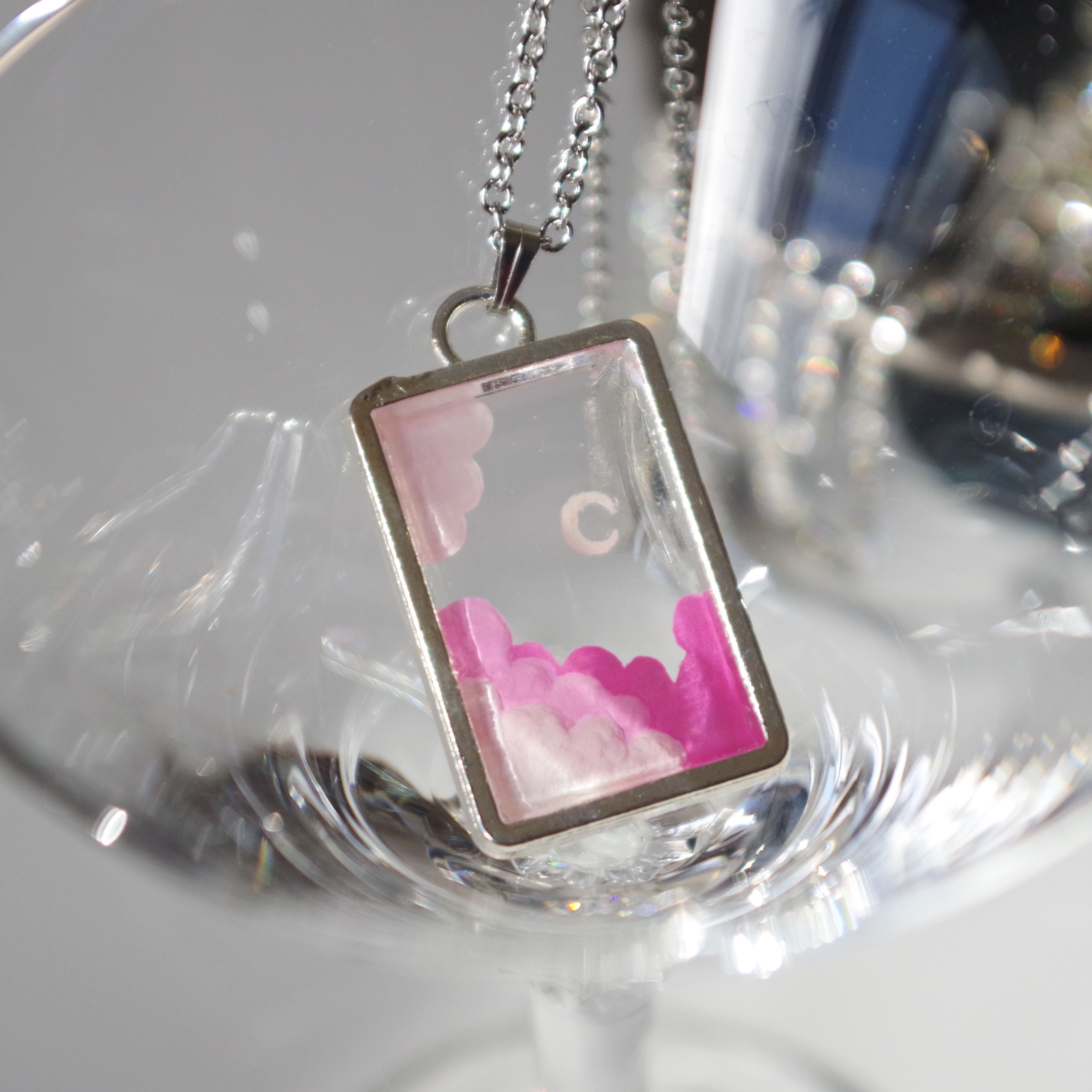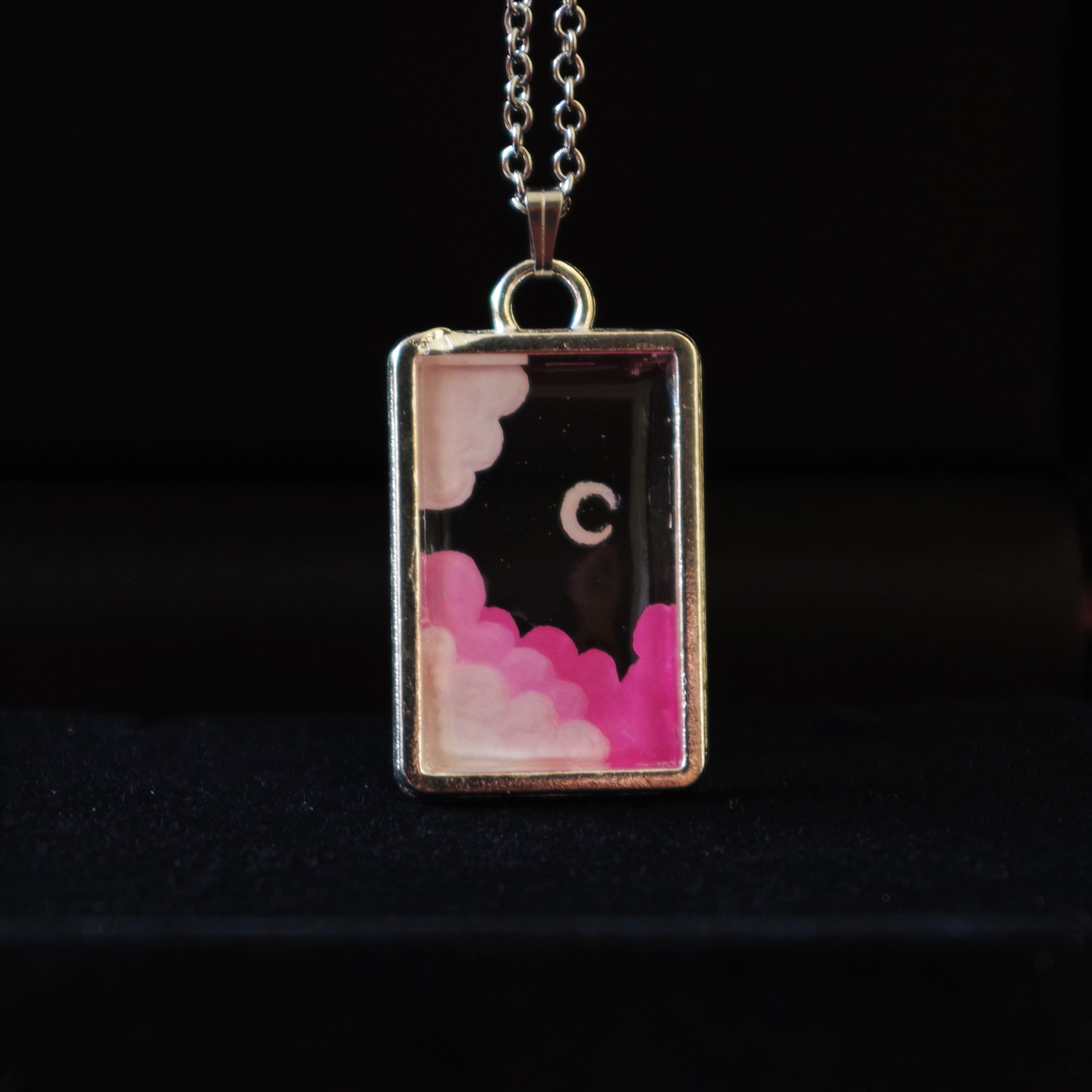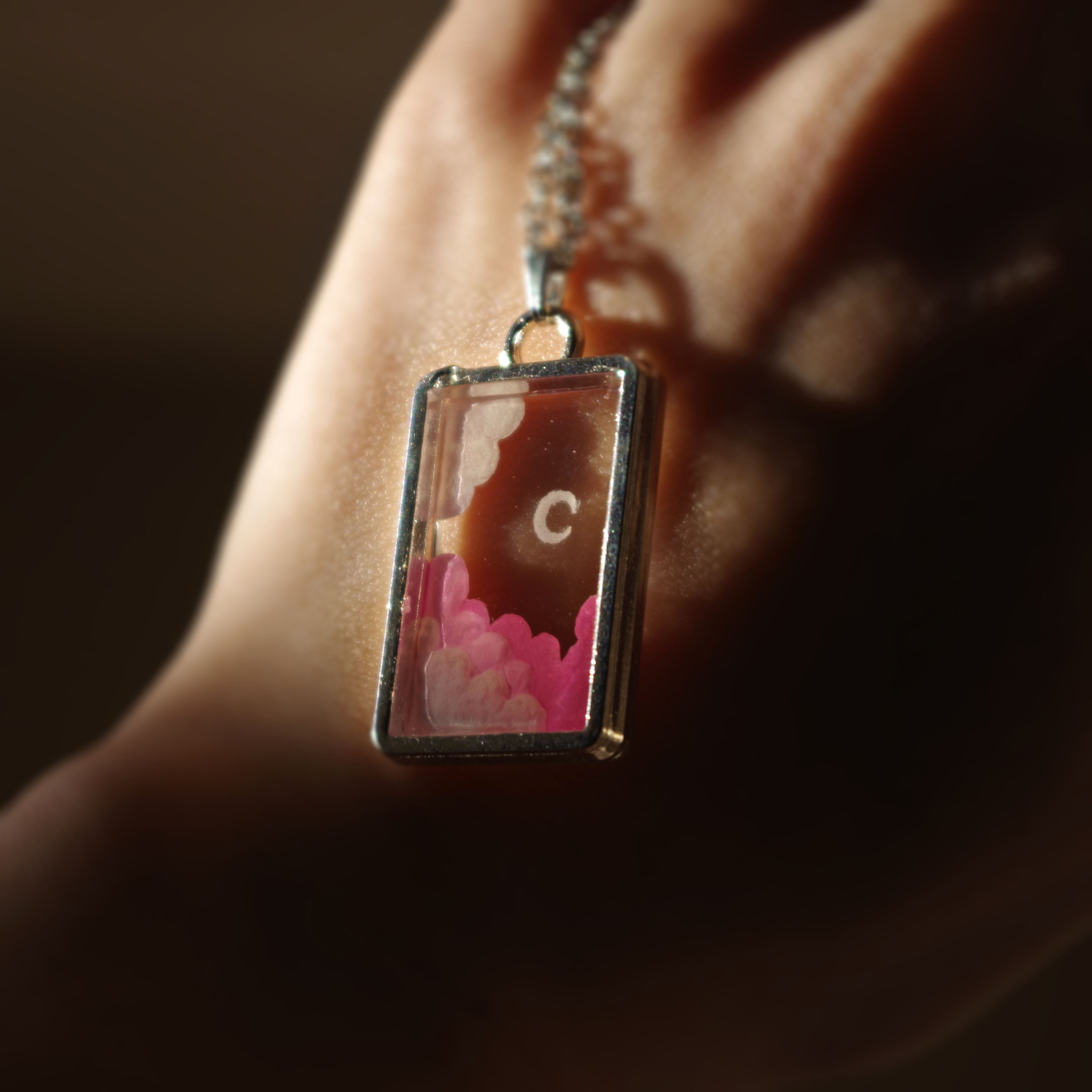 古着 ヴィンテージ ネックレス 透明 空 自然 月 雲 絵画 彫刻