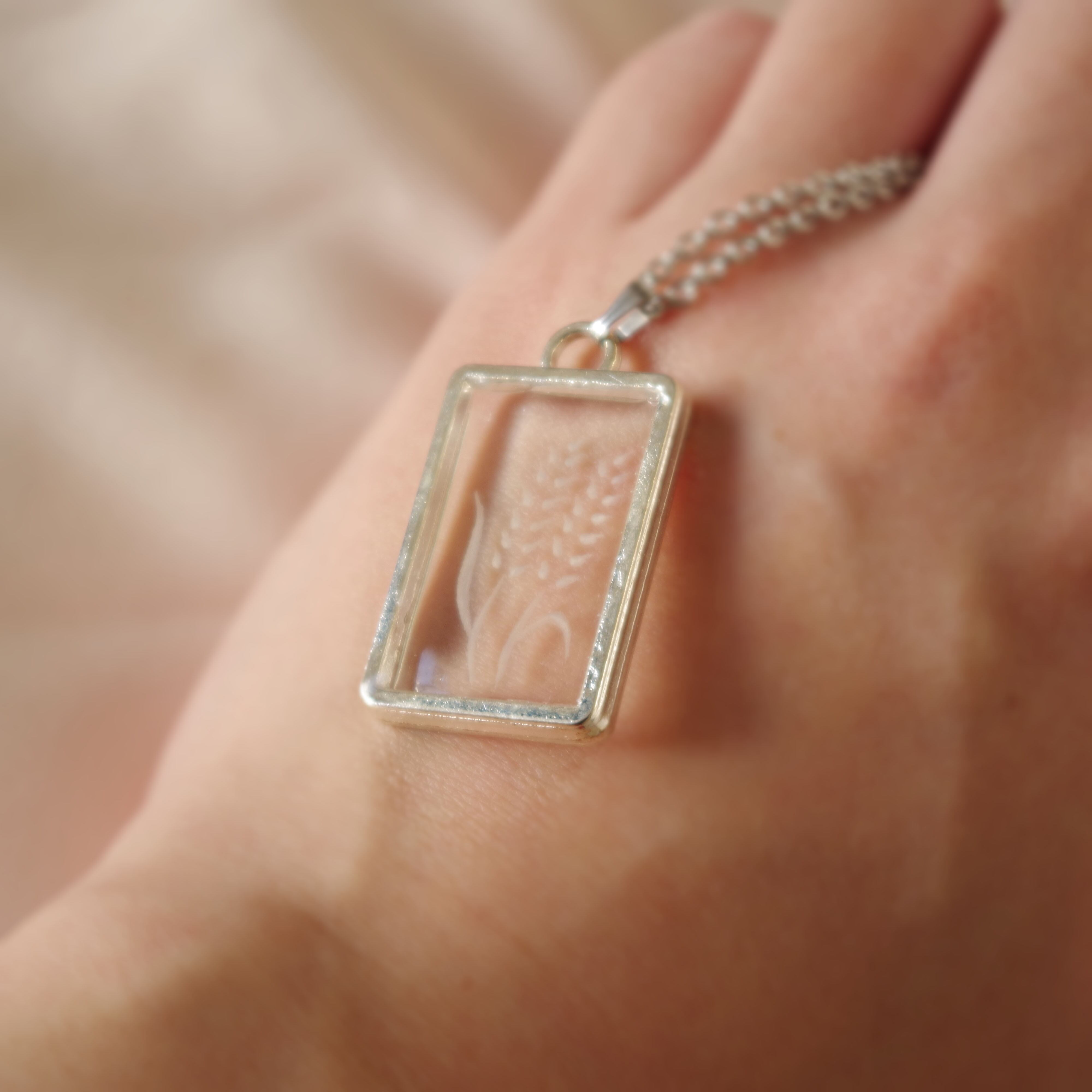 古着 ヴィンテージ ネックレス 透明 アンティーク インタリオ 透明感 ペンダント 白 カメオ インタリオ シルバー 麦 クラシック ゴシック アンティーク