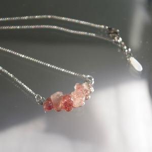 光を溜め込んでキラキラ輝くピンクエピドートは濃いめのベリーピンクもミックスされて甘すぎない仕上がりになっています。