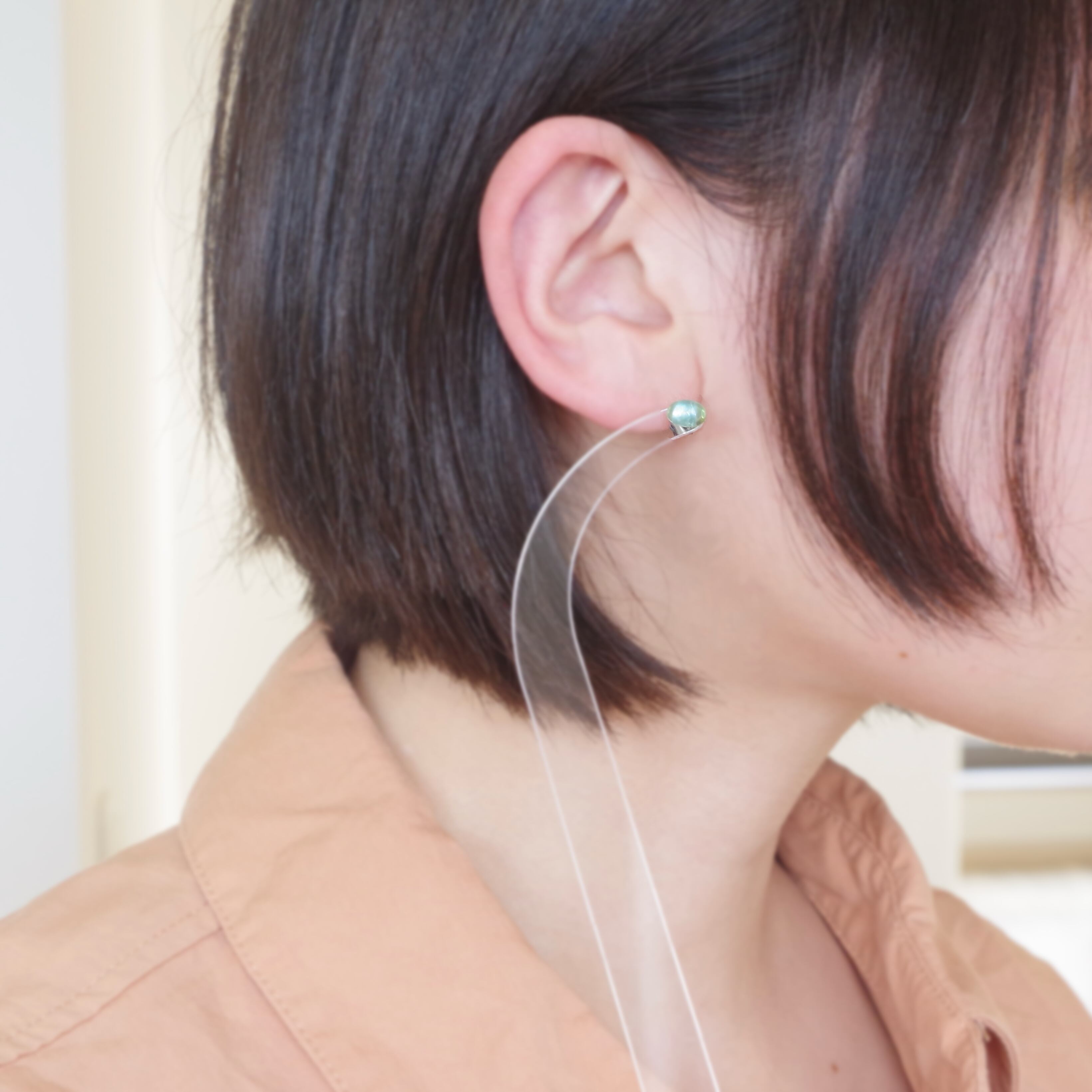 シンプルなデザインでありながらも、光に当たるたびに美しい青緑色が輝き、あなたの耳元を華やかに演出します。
