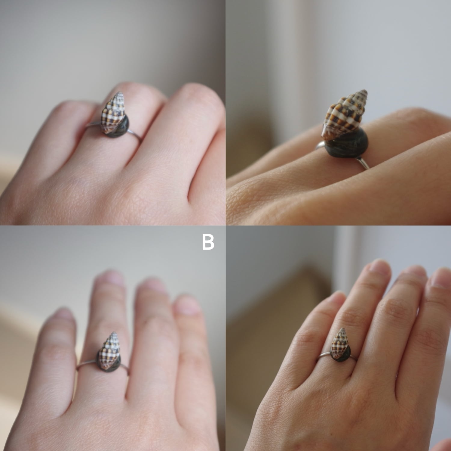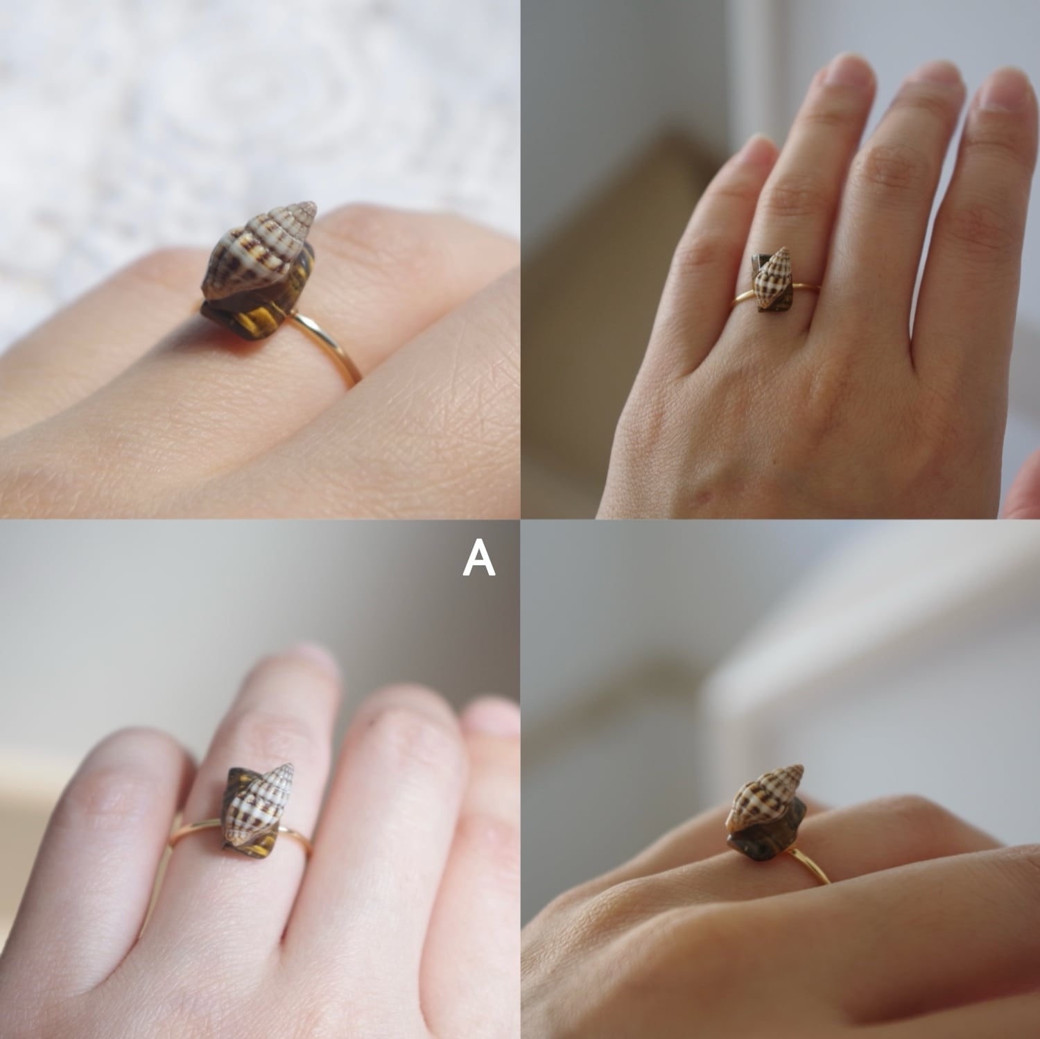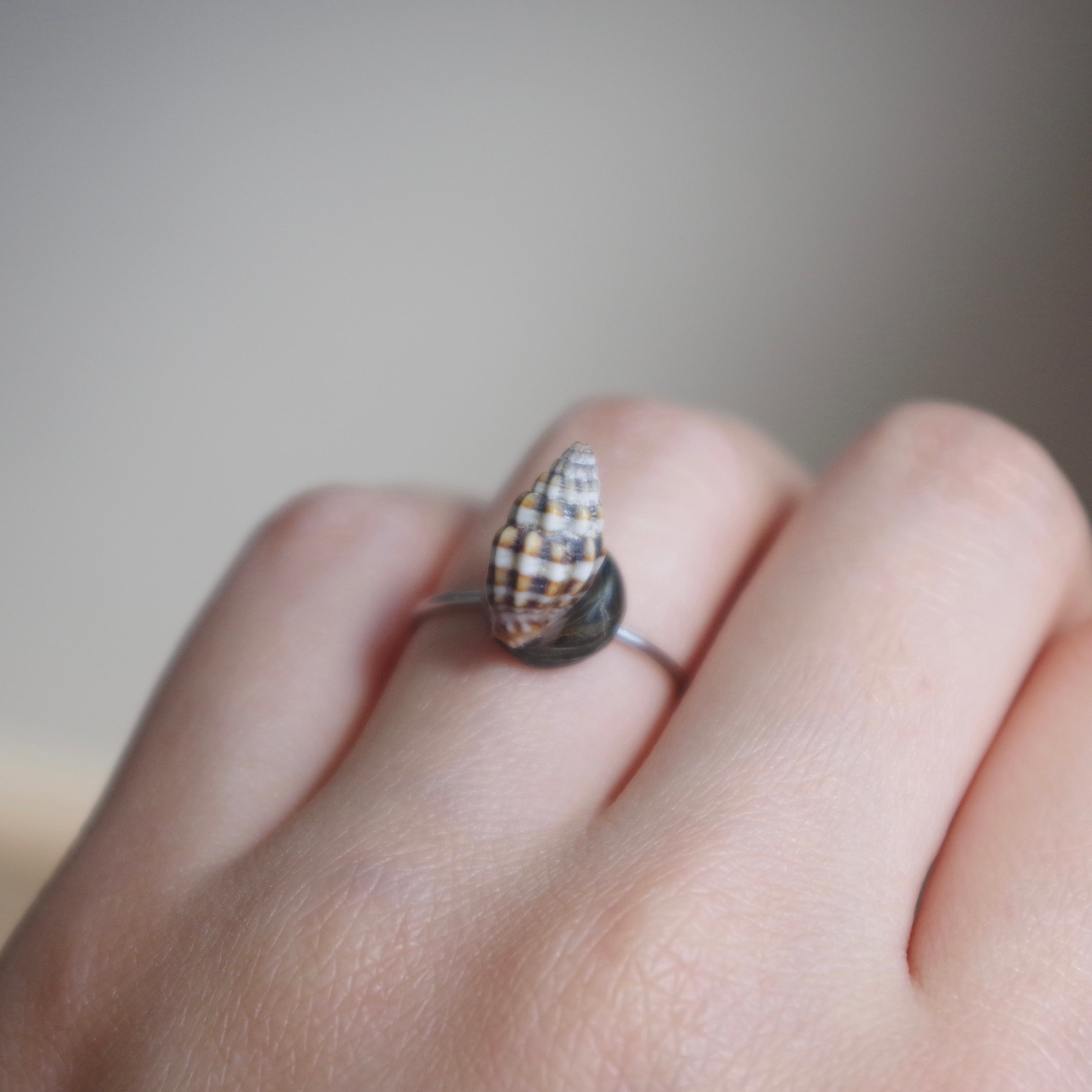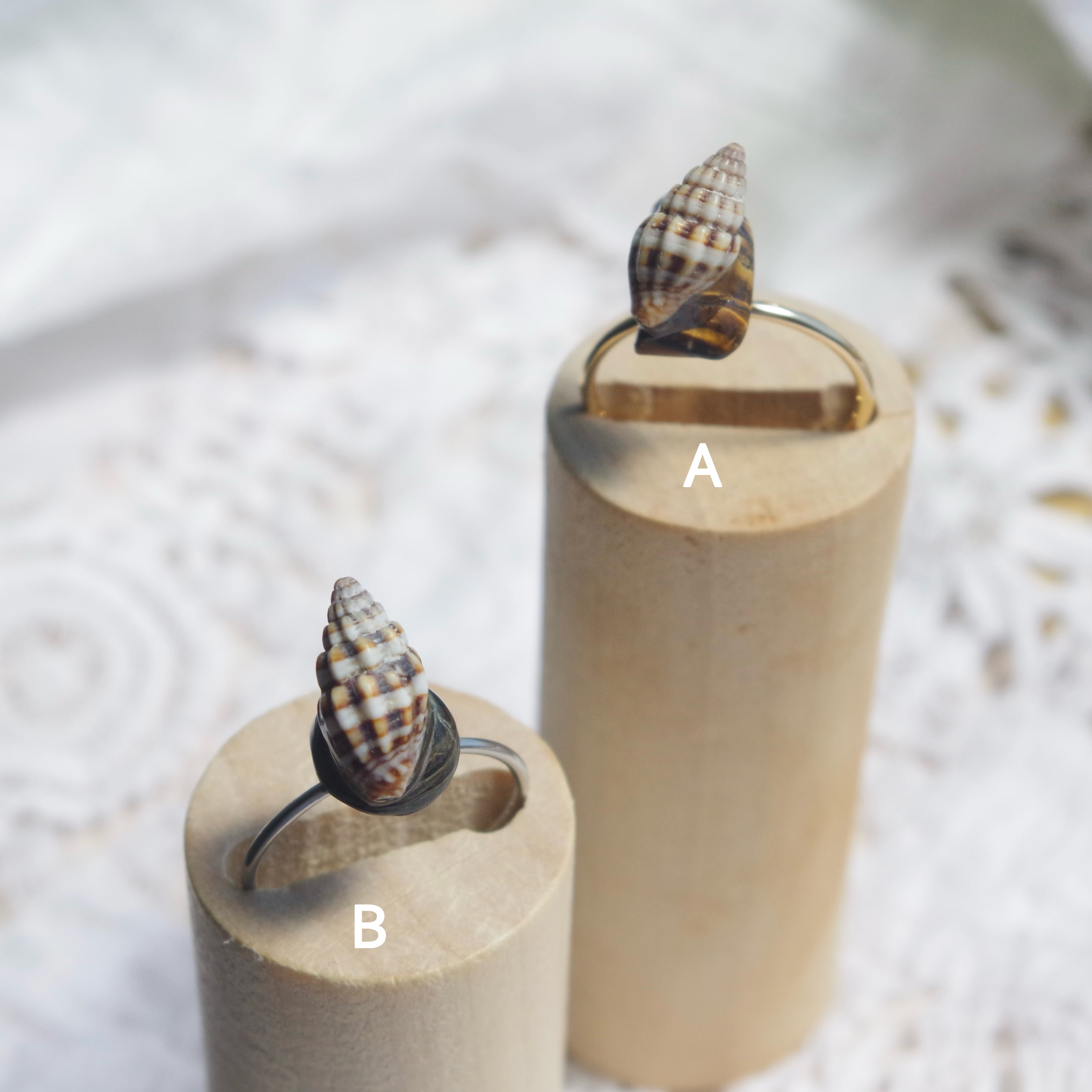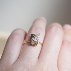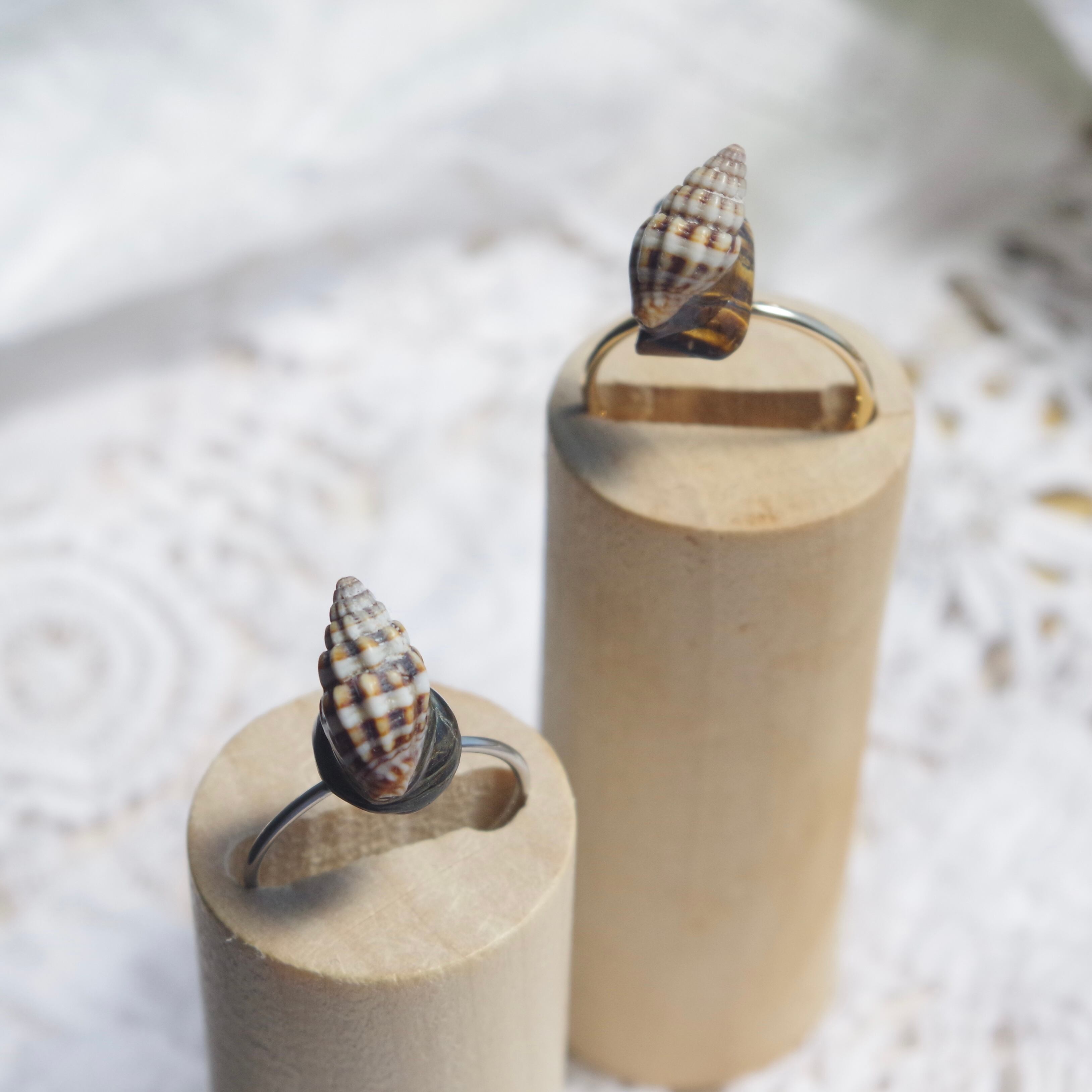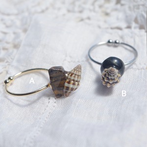 Rocky Shore Ring │ 微小貝と天然石のフリーサイズリング〈タイガーアイ・黒曜石〉