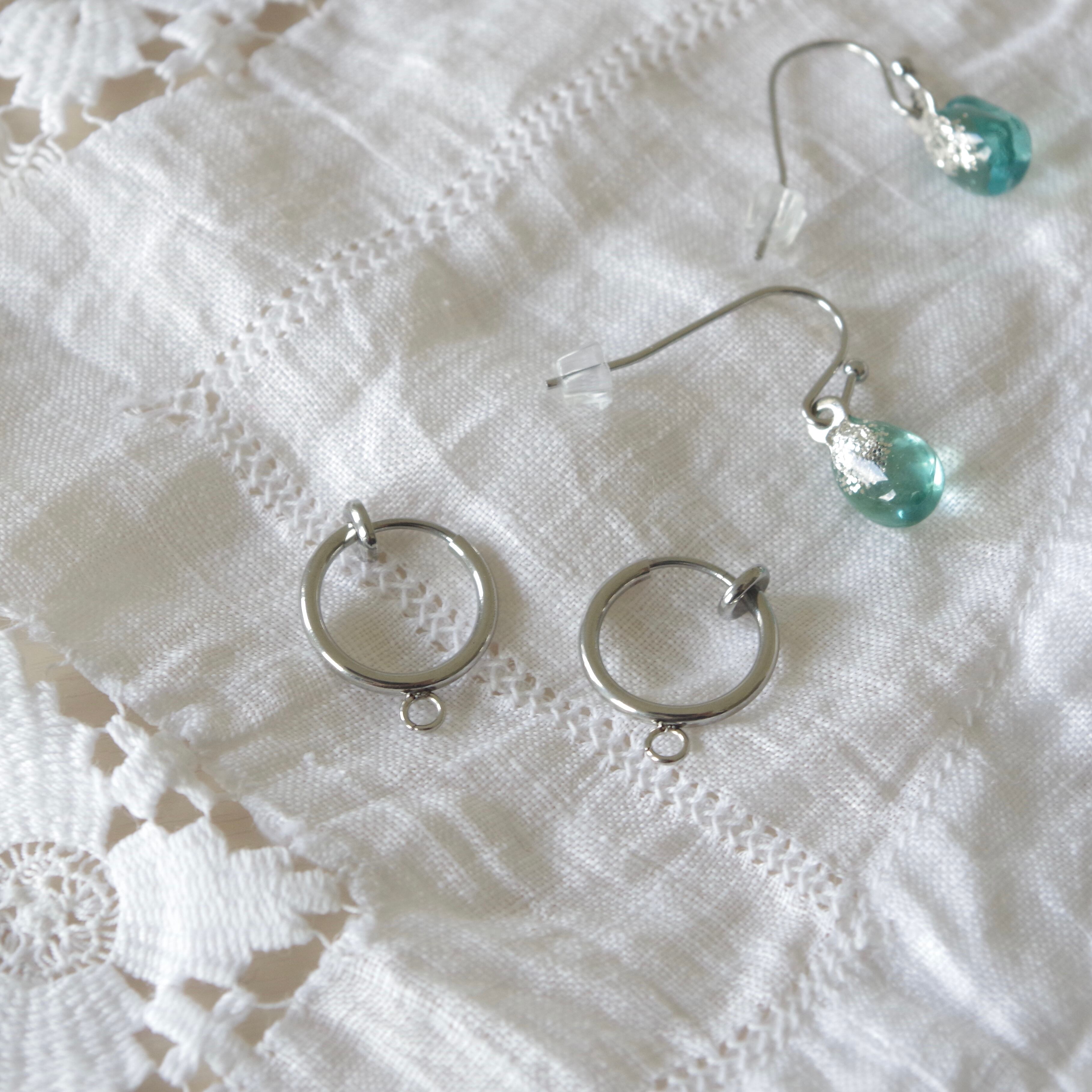 直接耳に触れる金具は錆びにくいサージカルステンレス(SUS316)です。K14、ニッケルフリーなど金属アレルギー対応金属をお探しの方にもおすすめします。ただし全ての方にアレルギー対応を保証するものではありません。