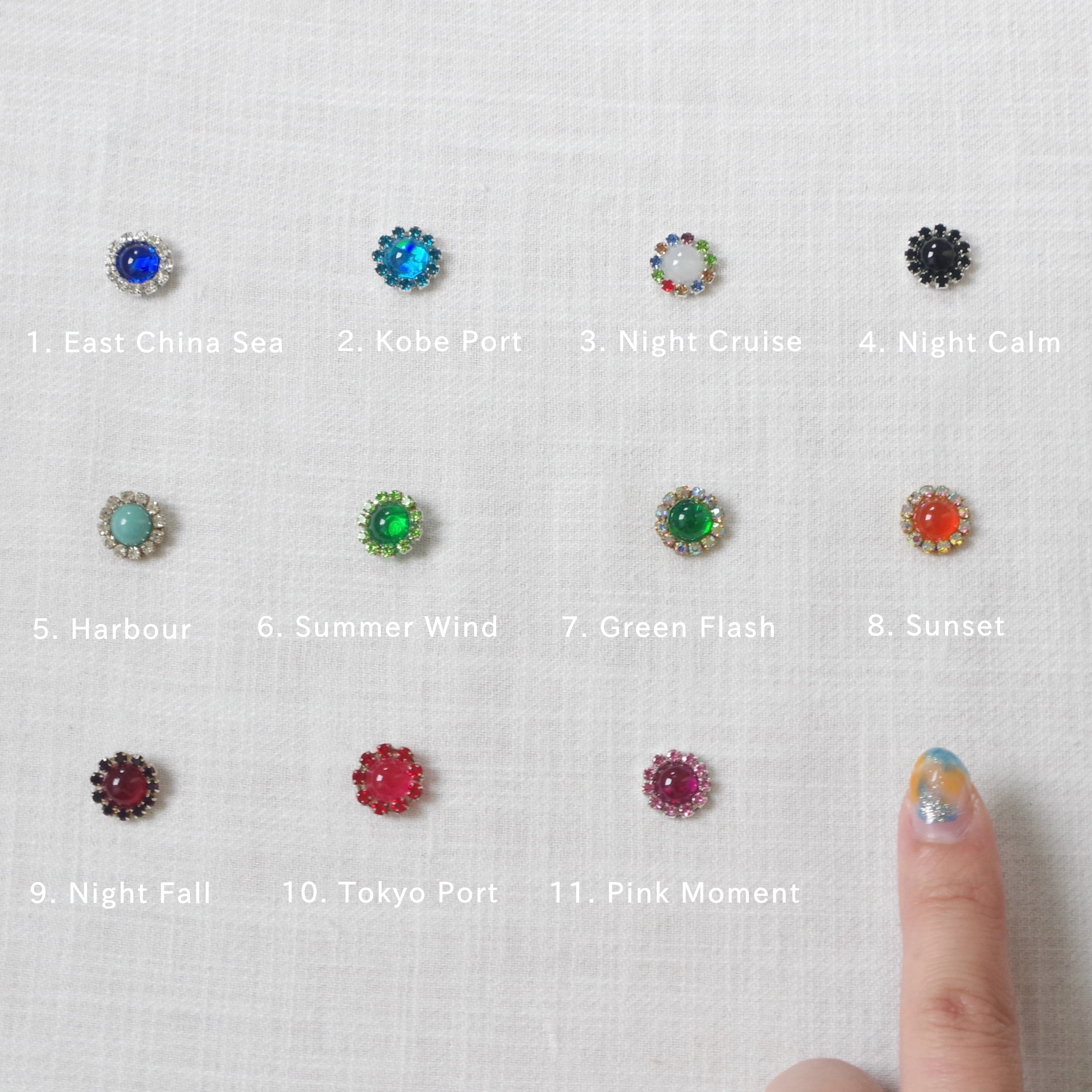 夜間航行中、豪華客船の灯りや行き交う船の航海灯で彩られる海の色。シルバー金具。※ラインストーンの配色はランダムで写真の物とは異なります※