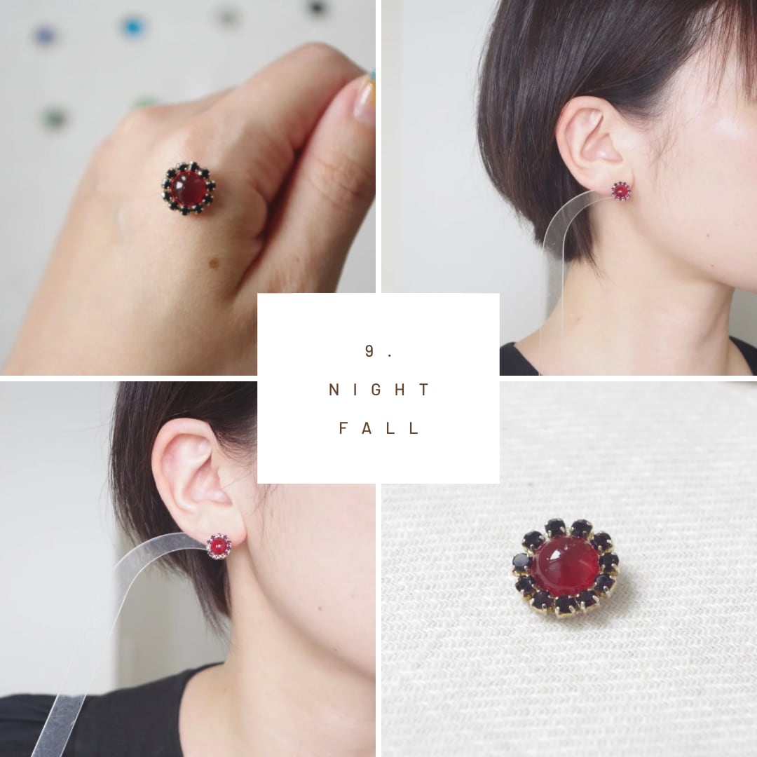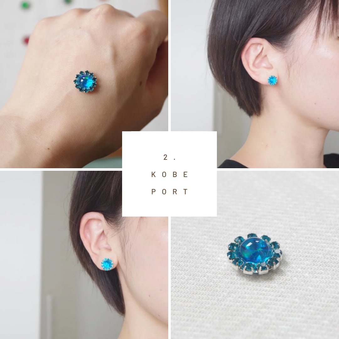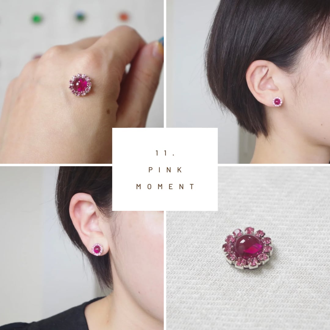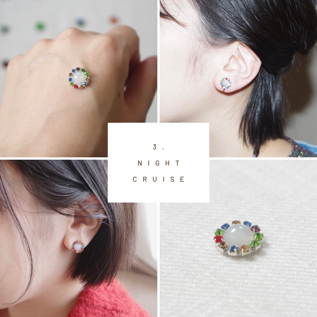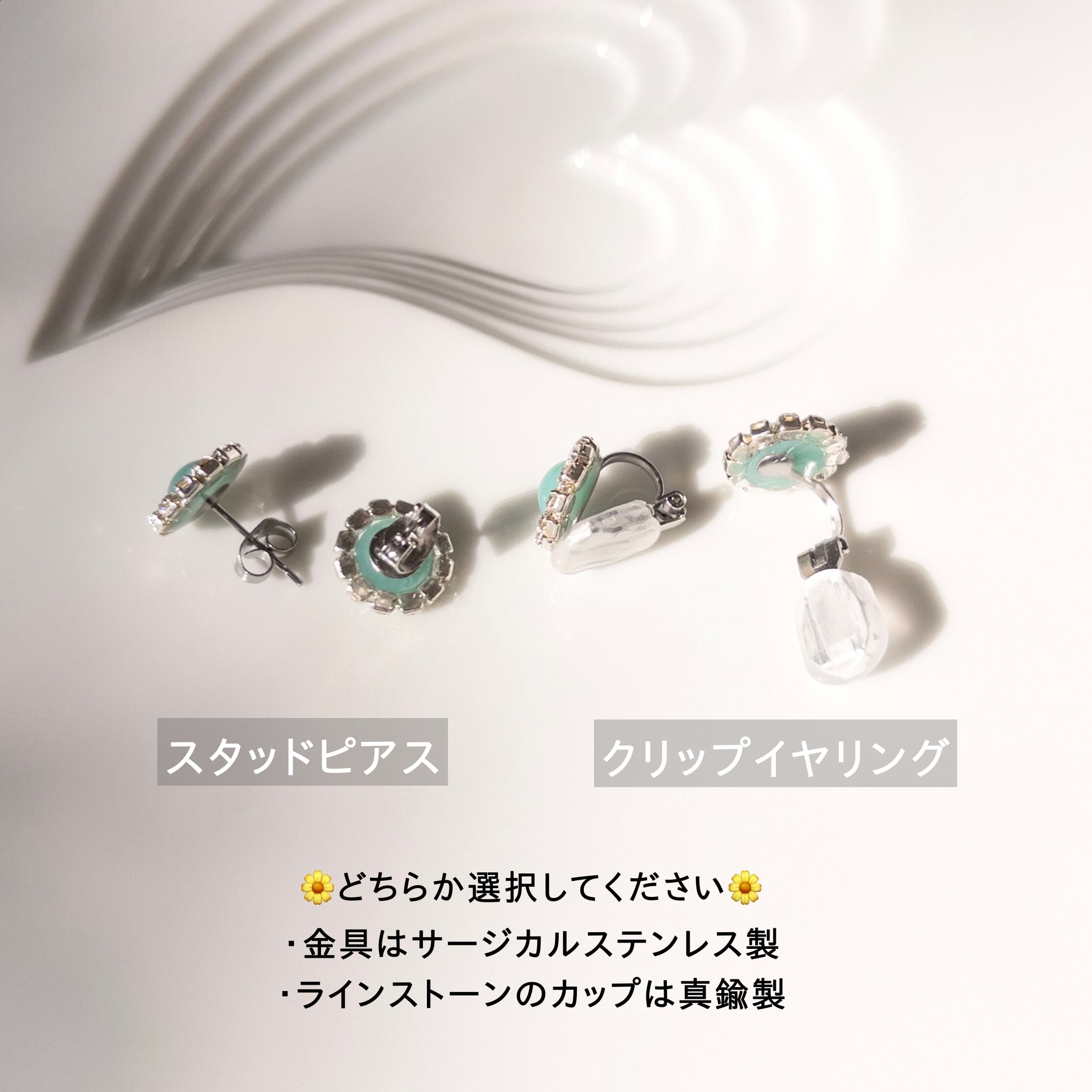 室内でも輝くラインストーンでお呼ばれにぴったりの耳飾りですが、主張しすぎないサイズ感により毎日着けたくなる親しみやすさも持ち合わせています。