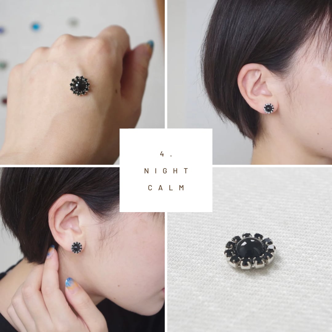 波もなく、真っ暗で静かな夜凪。シンプル&クールで顔周りが引き締まります。シルバー金具。