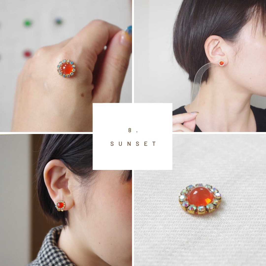 燃えるような夕焼けの色。フルーティで健康的且つ顔周りを華やかに見せてくれます。ゴールド金具。