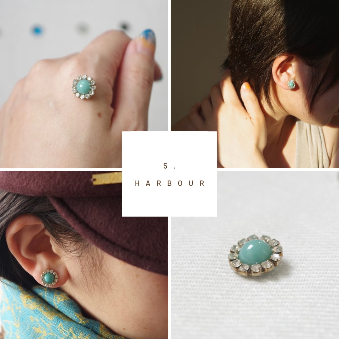 水深が浅い港内の海の色。濃すぎず淡すぎない、優しいマットカラーで肌なじみが良いです。シルバー金具。