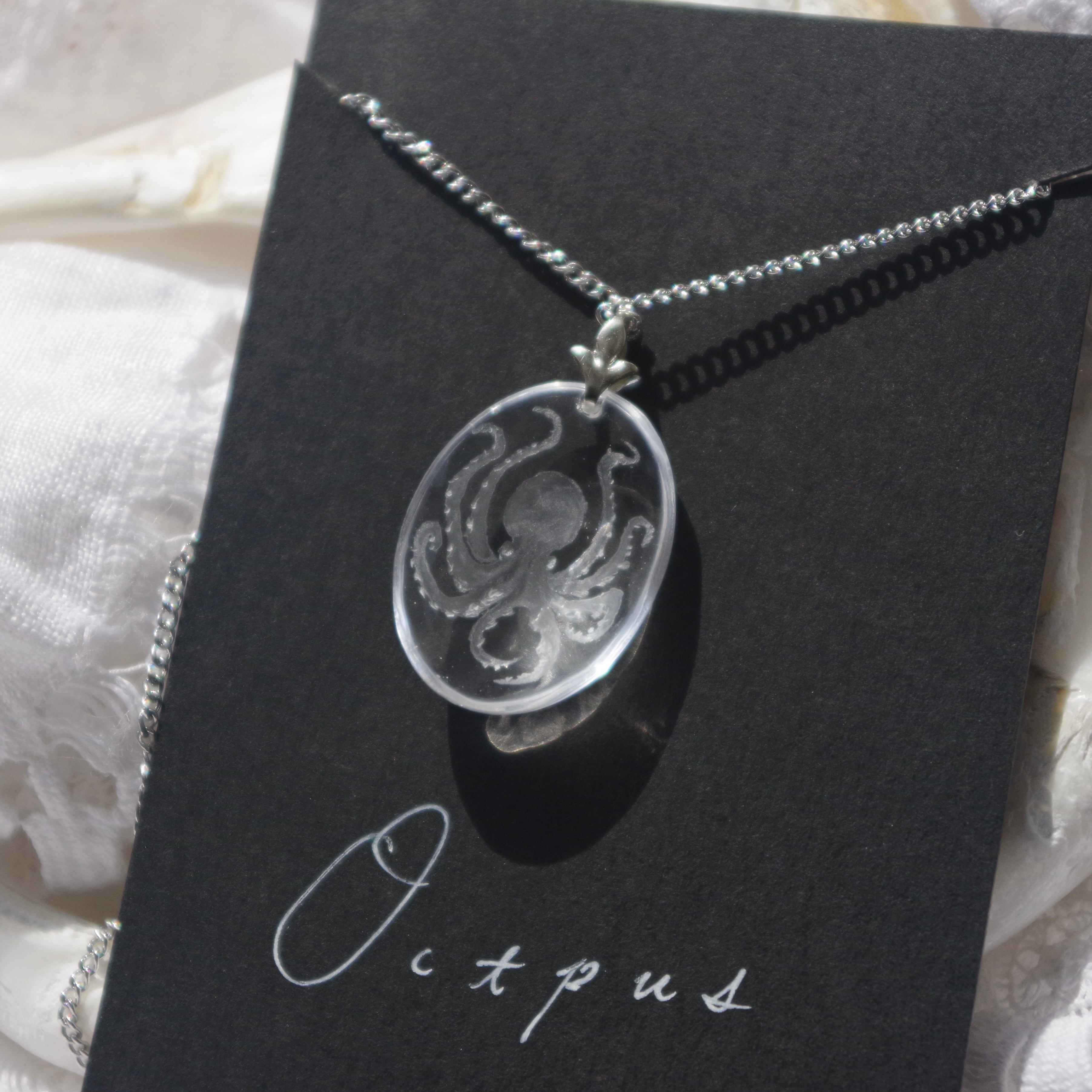 【手彫り】インタリオペンダント/チョーカー〈タコ〉