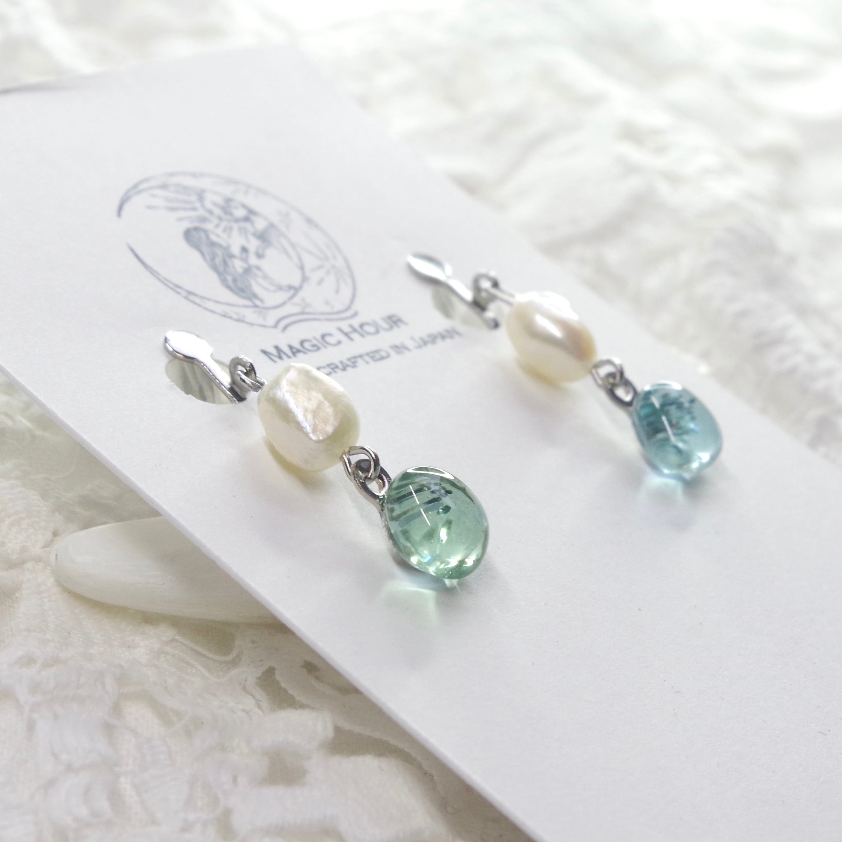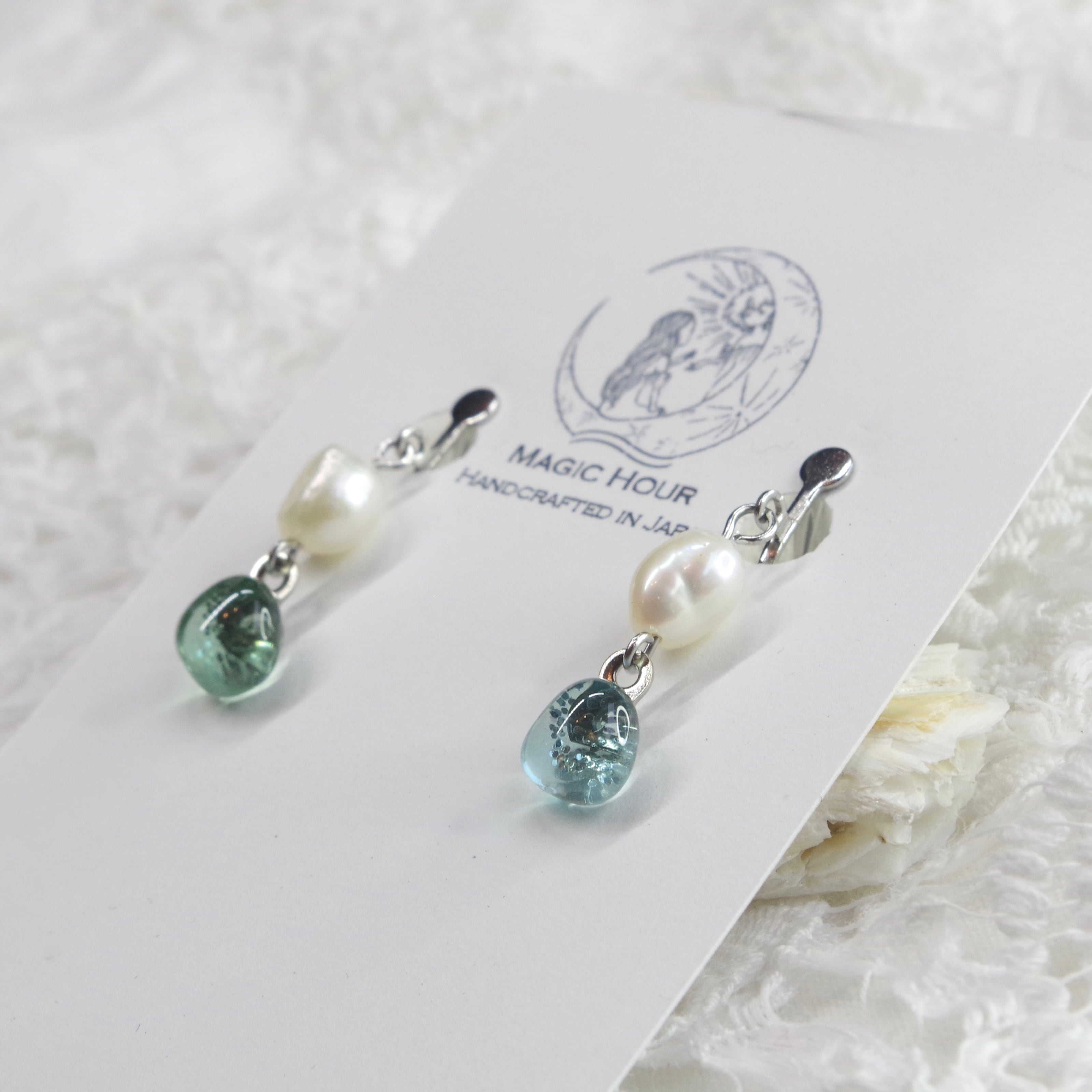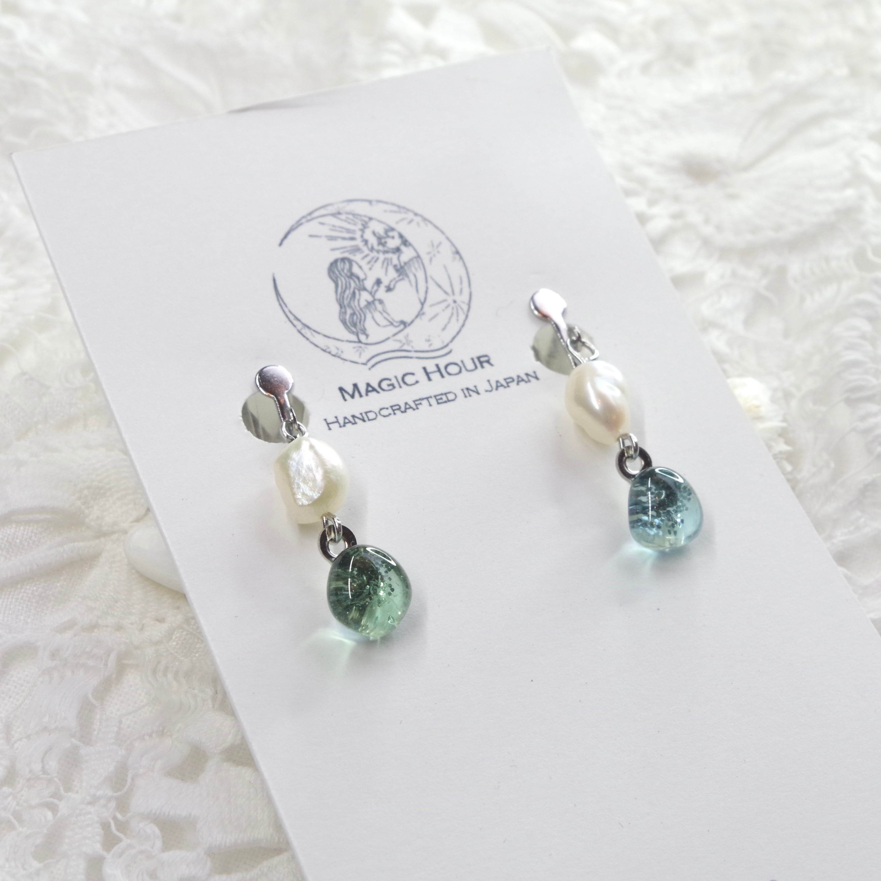 Diana │ 淡水パールとシーグラスのイヤリング/ピアス〈シルバー〉