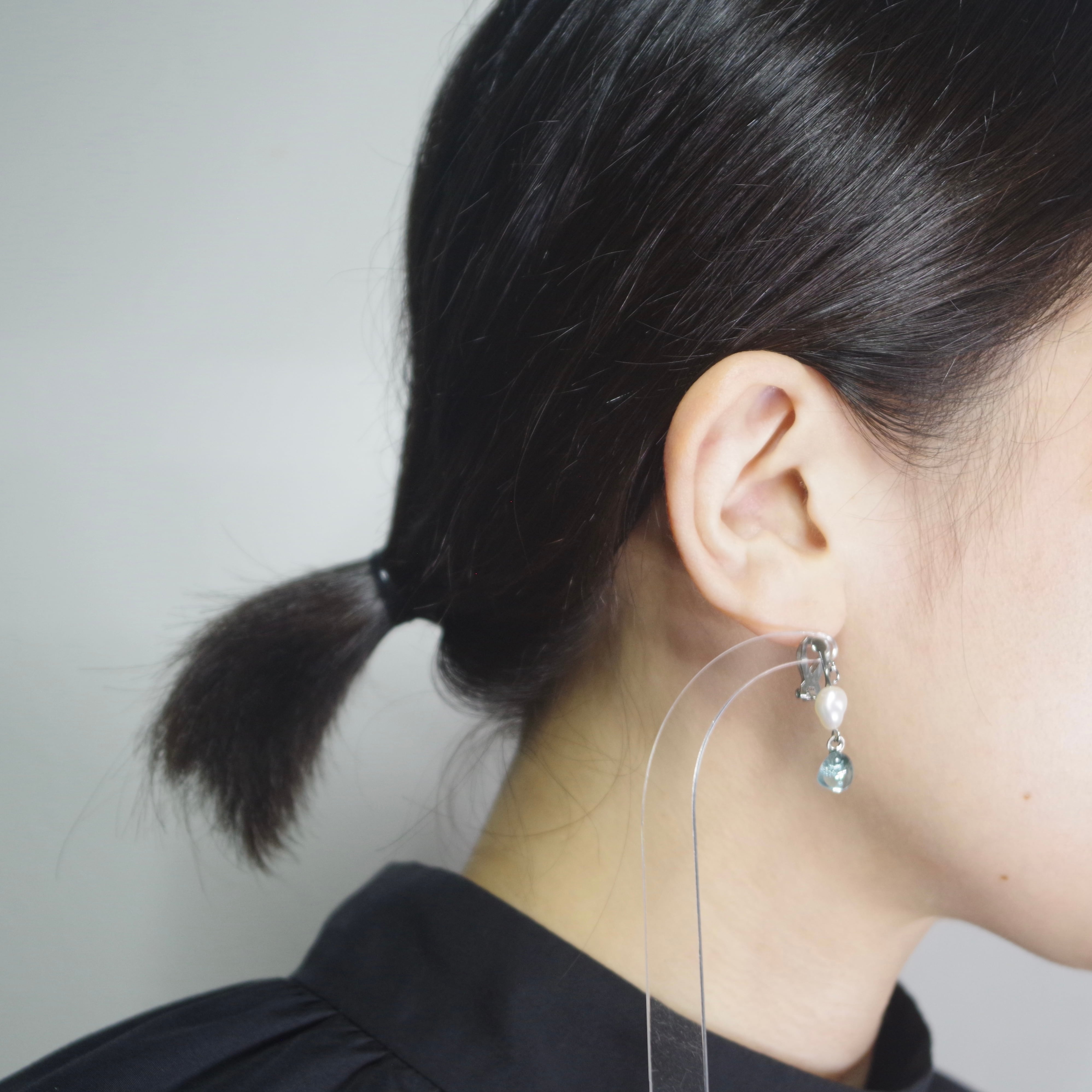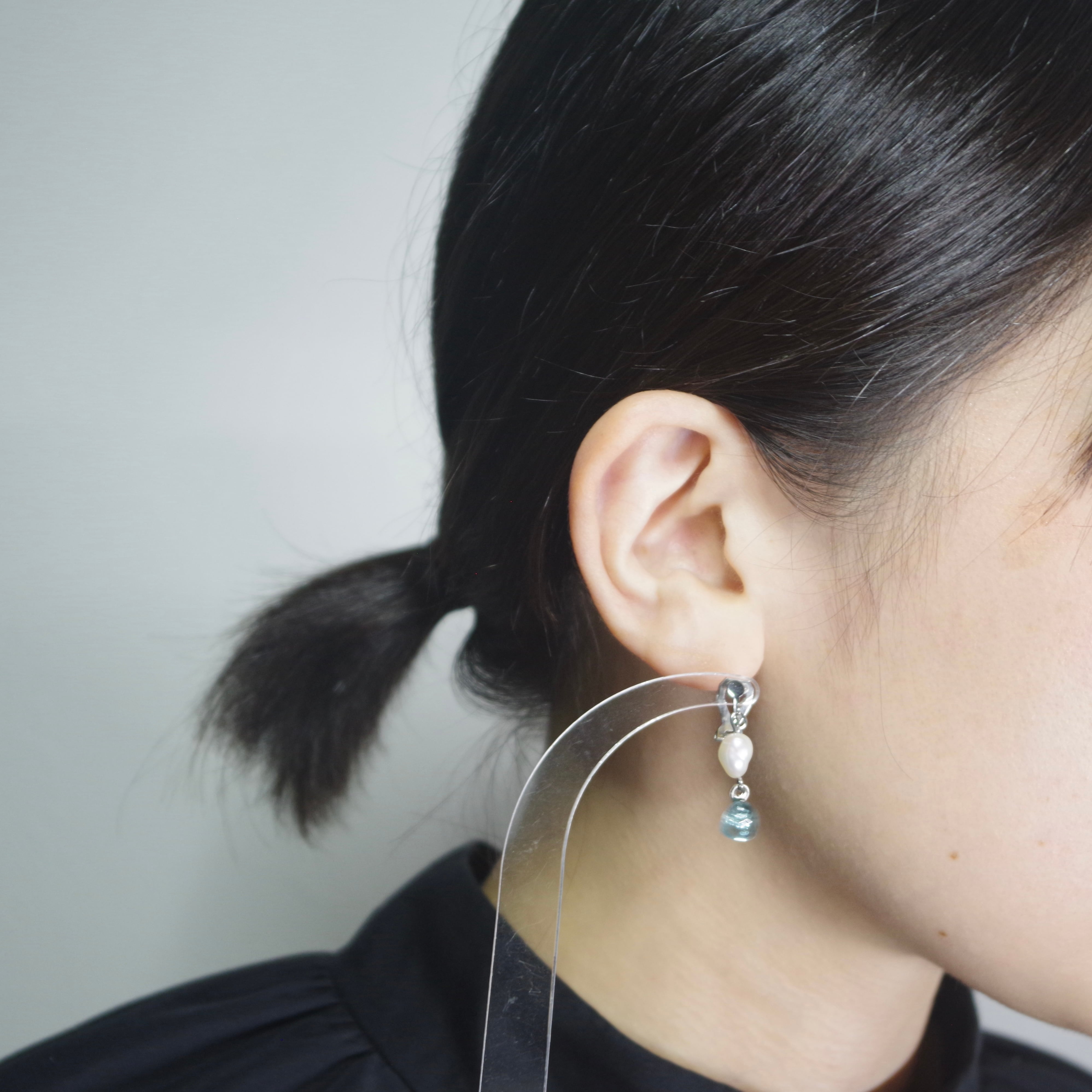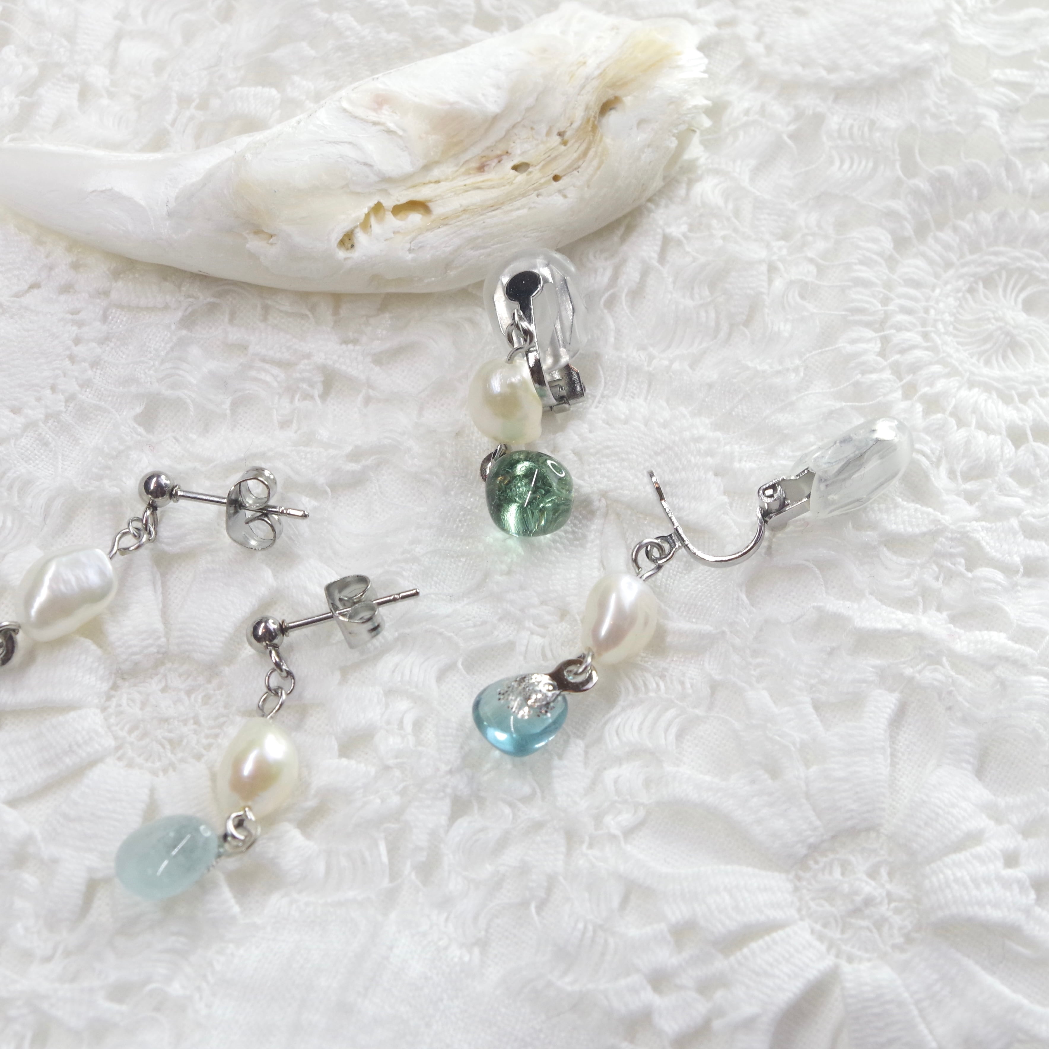 Diana │ 淡水パールとシーグラスのイヤリング/ピアス〈シルバー〉