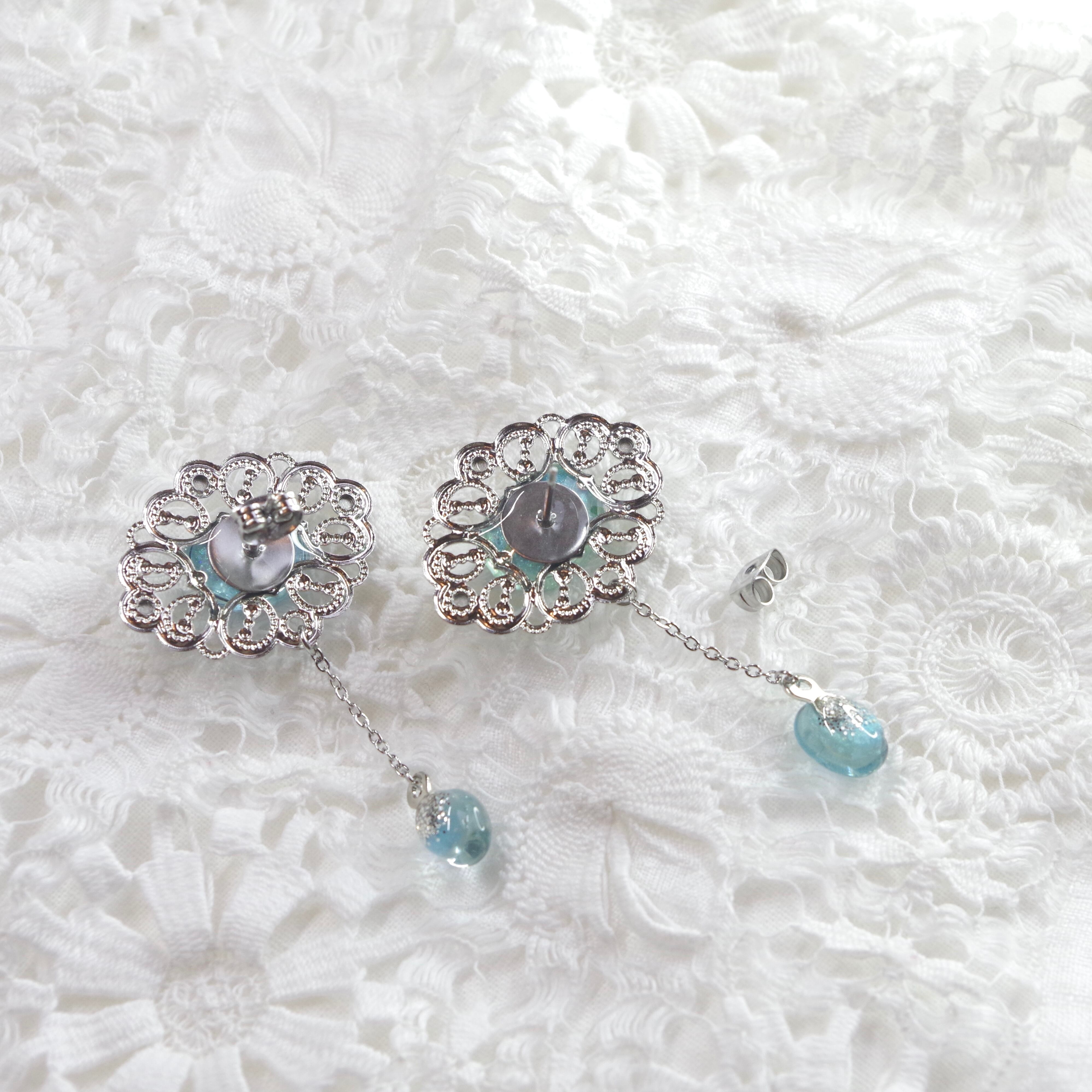繊細なフィリグリーとクリスタルが中央のシーグラスを引き立てます。