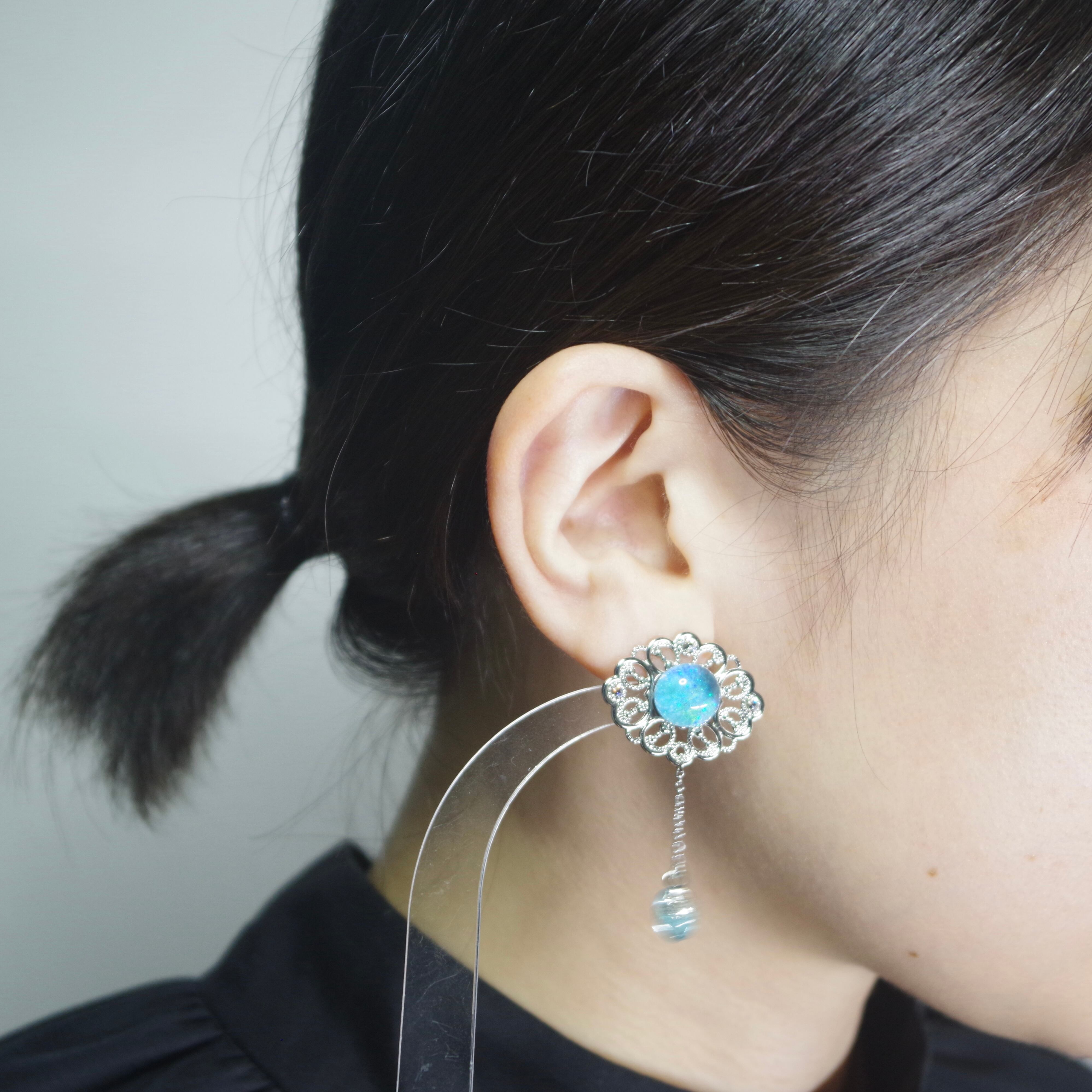直接耳に触れる金具は錆びにくいサージカルステンレス(SUS316)です。ただし正面の透かし金属は真鍮メッキです。裏面を樹脂でコーティングしていますが、金属アレルギー症状が重い方にはおすすめしておりません。
