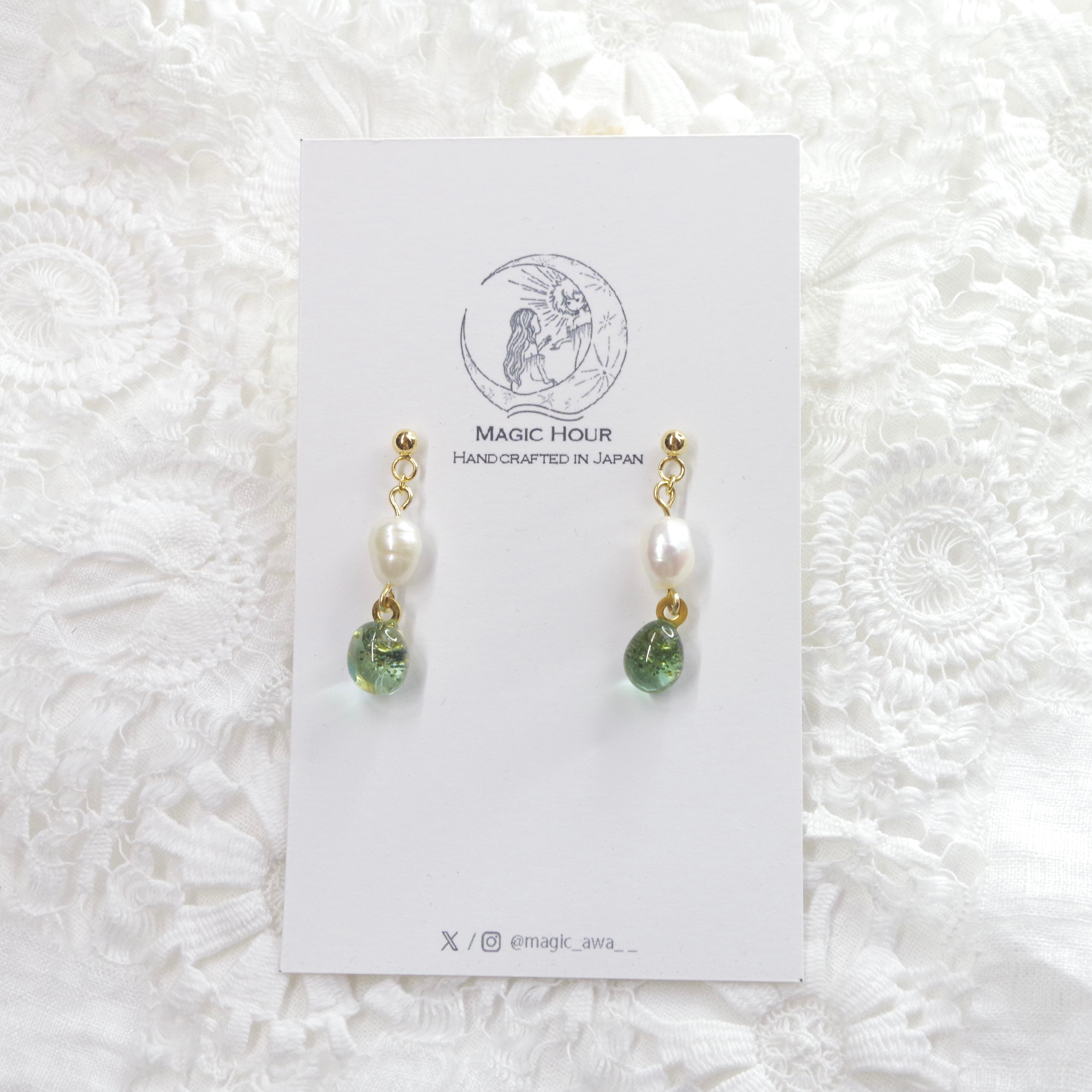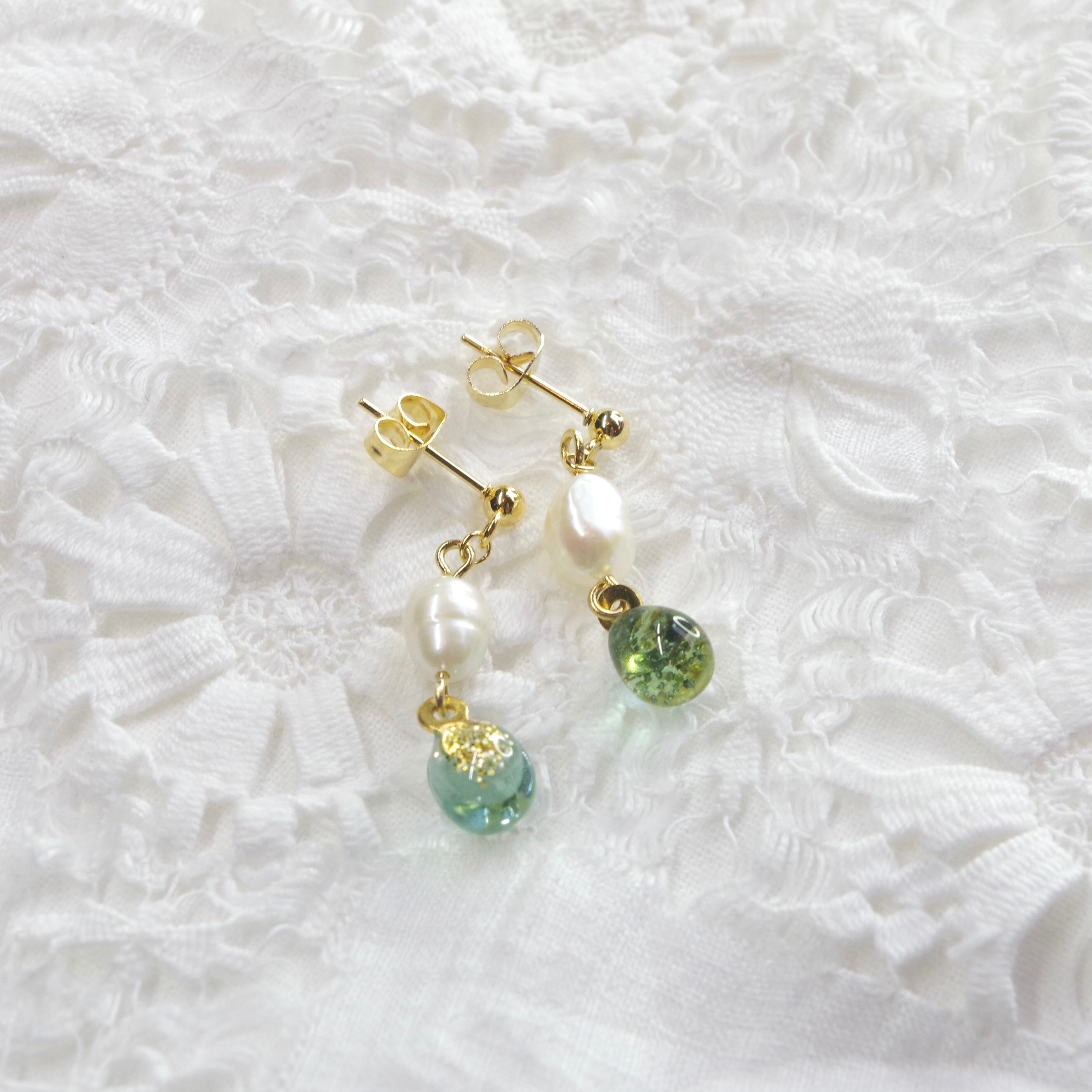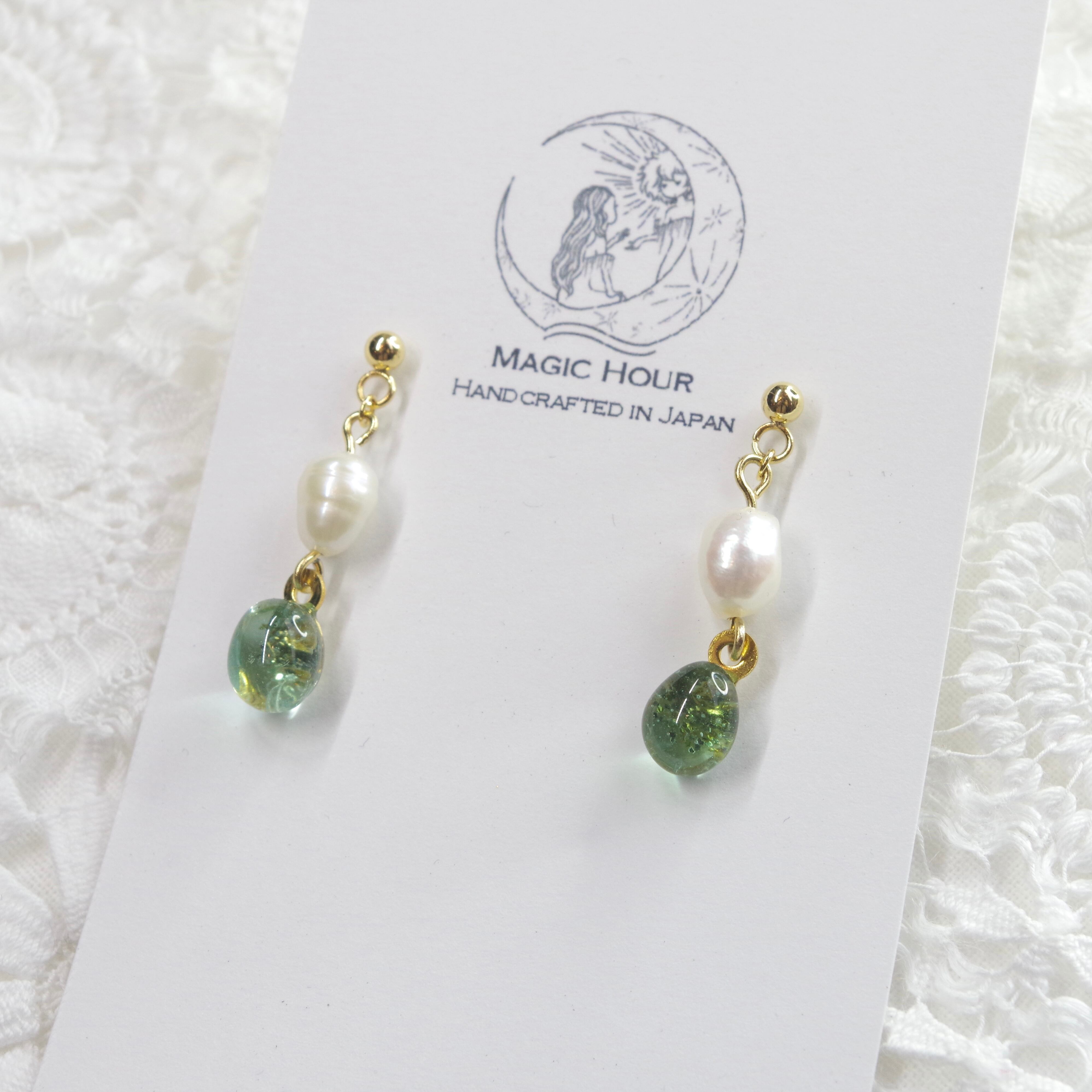 Diana │ 淡水パールとシーグラスのイヤリング/ピアス〈ゴールド〉