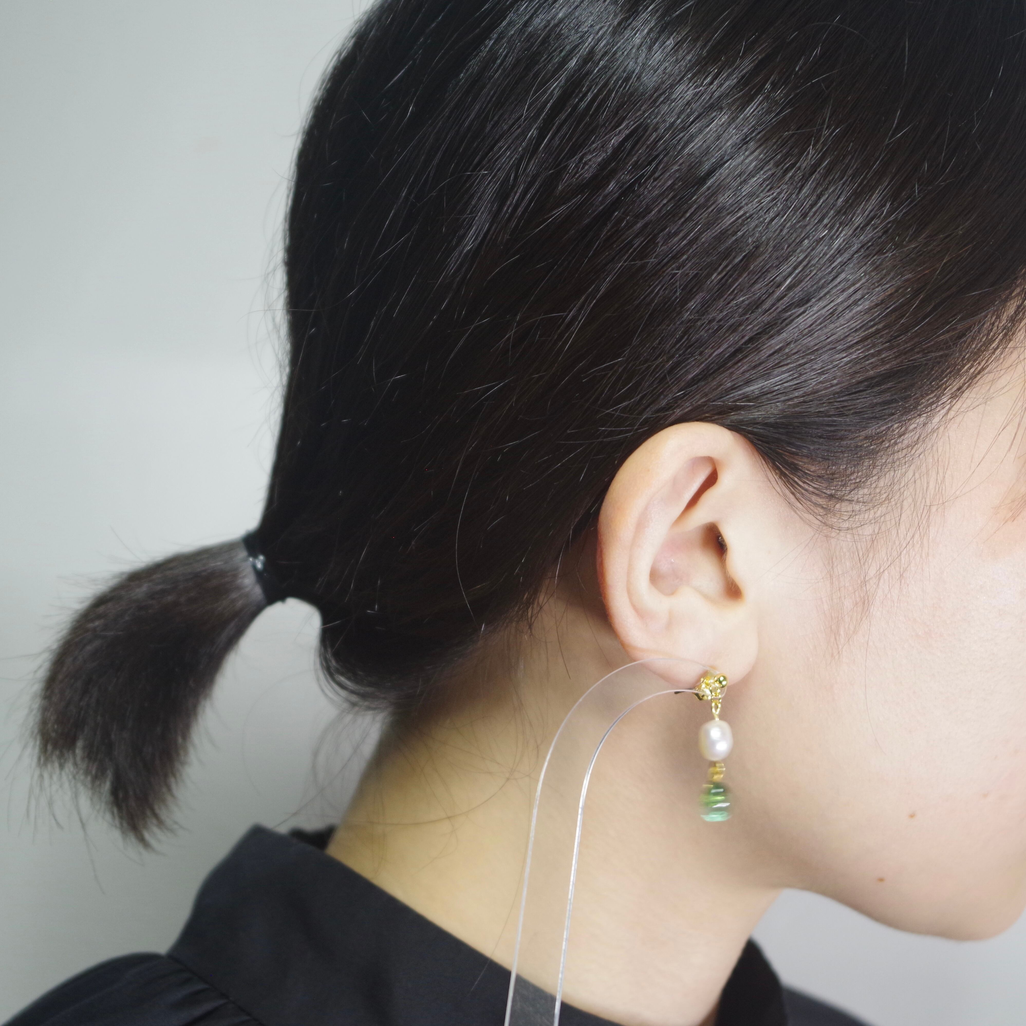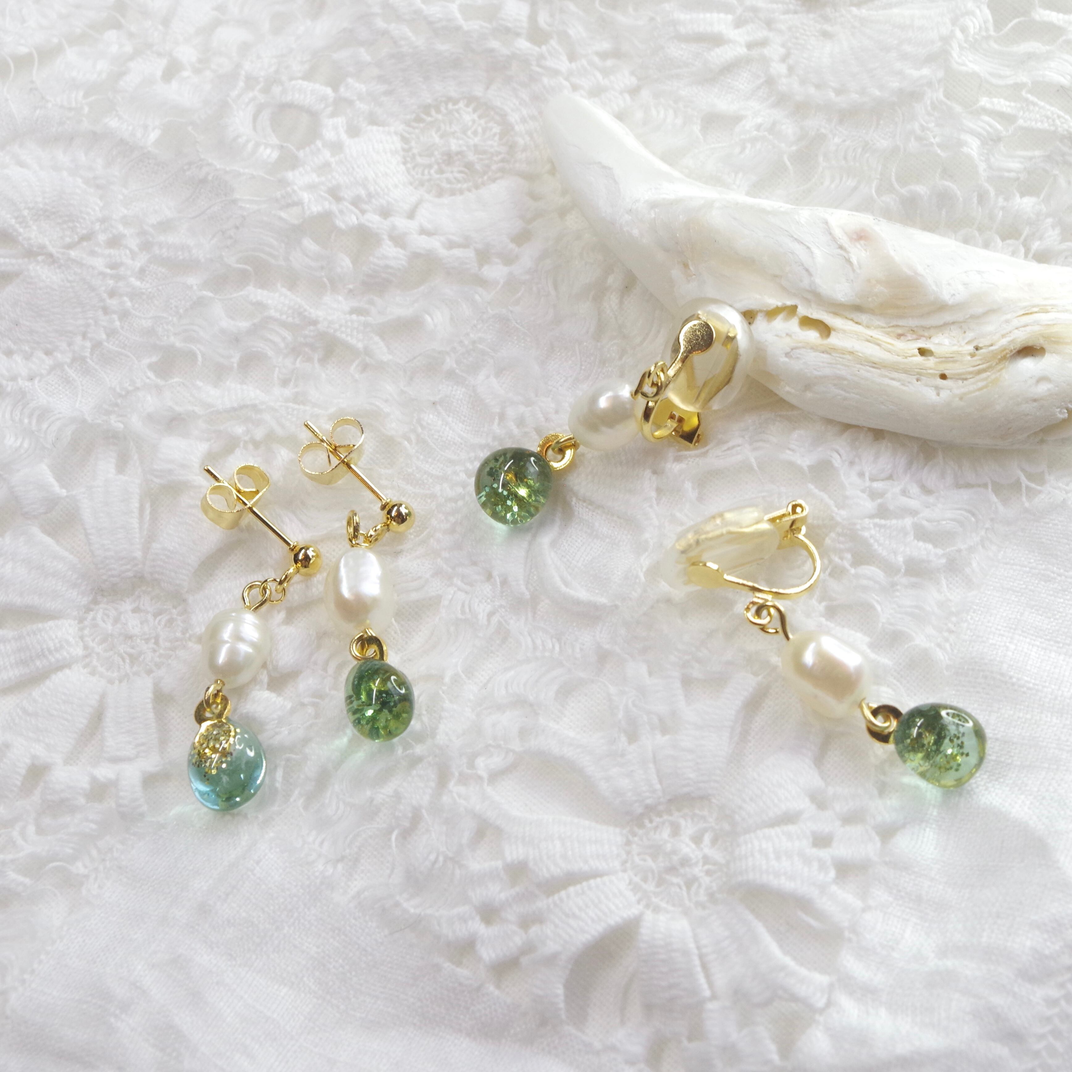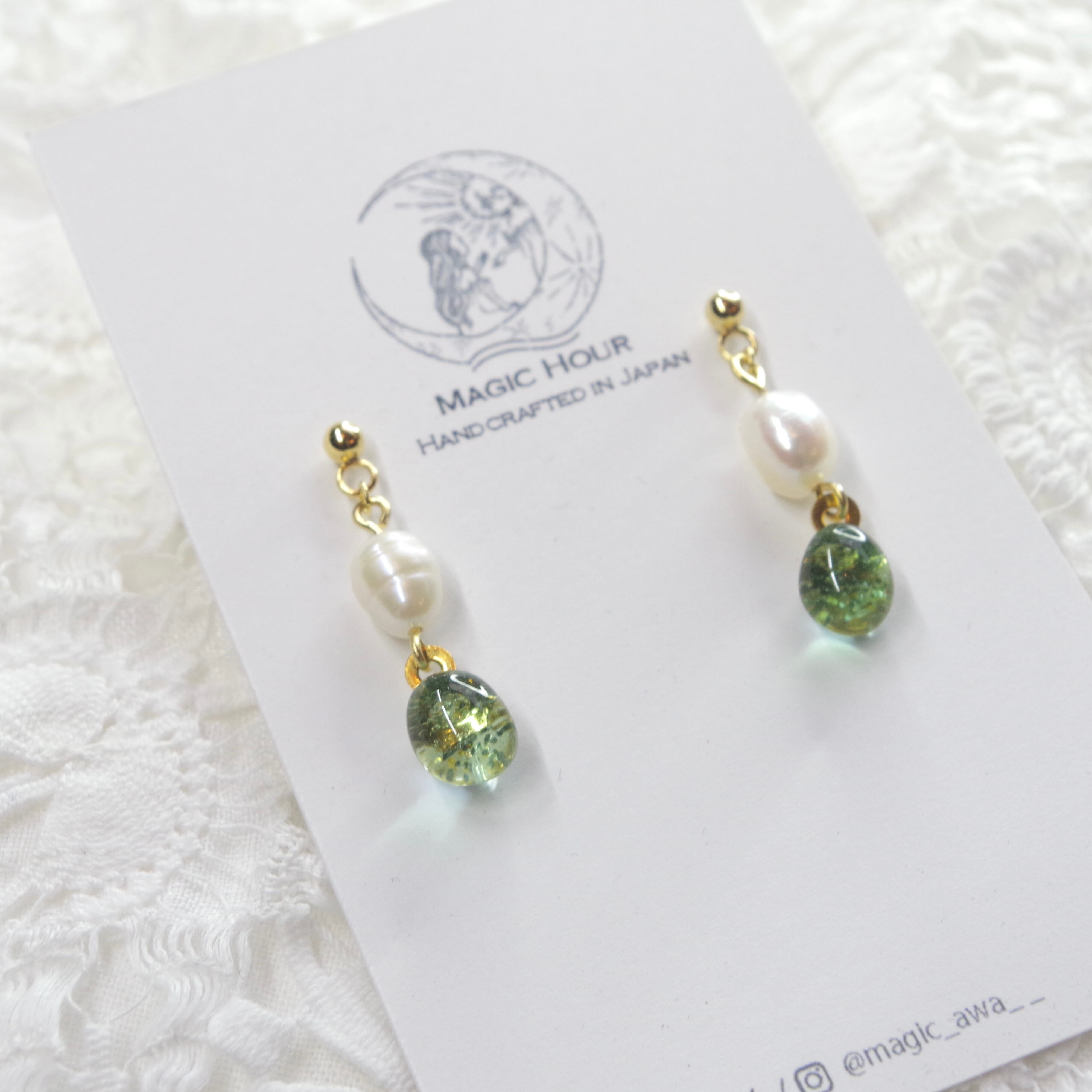 Diana │ 淡水パールとシーグラスのイヤリング/ピアス〈ゴールド〉