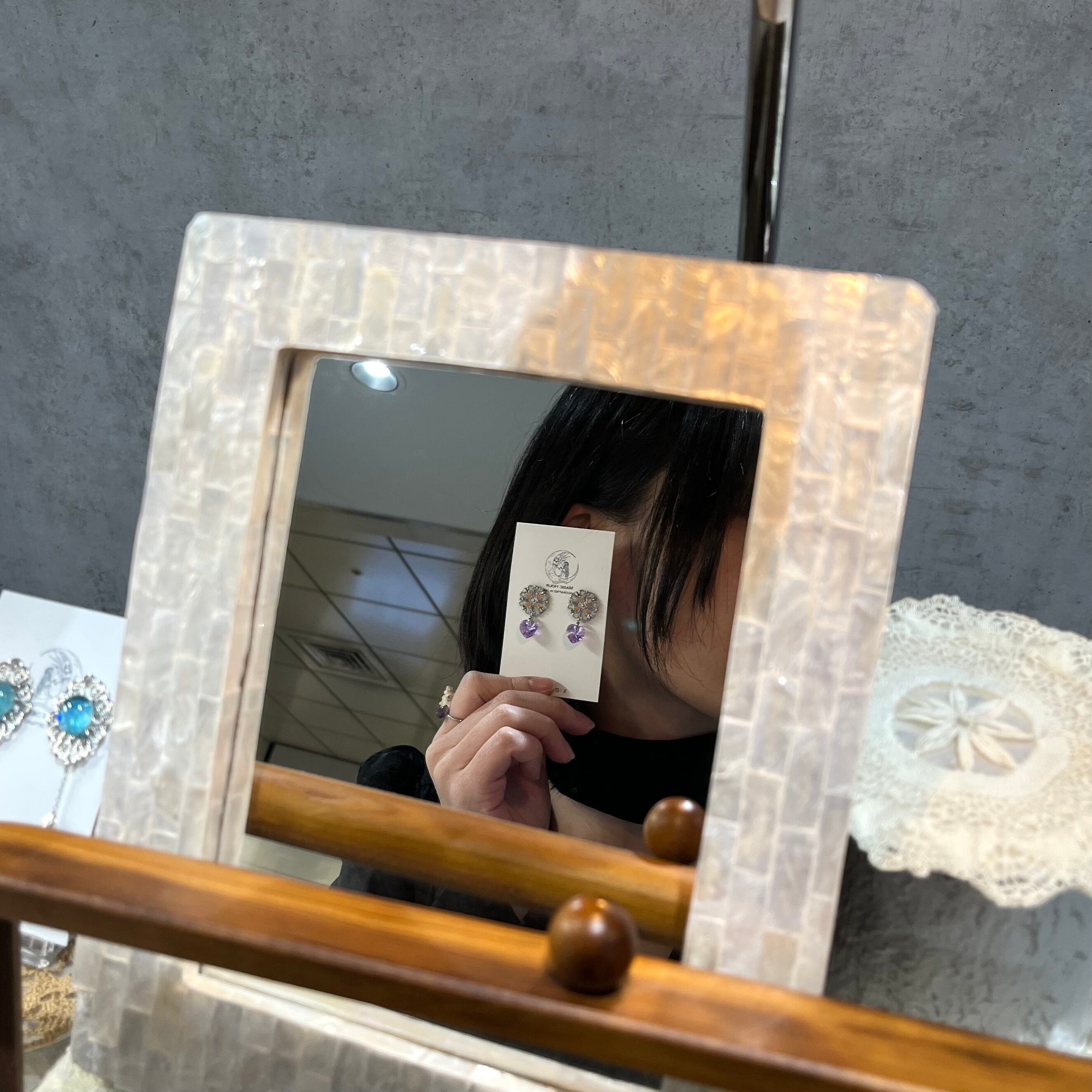 ポストとキャッチは金属アレルギー対応サージカルステンレス(SUS316)です。ただし透かし金属は真鍮メッキです。裏面を樹脂でコーティングしますが、金属アレルギー症状が重い方にはおすすめしておりません。